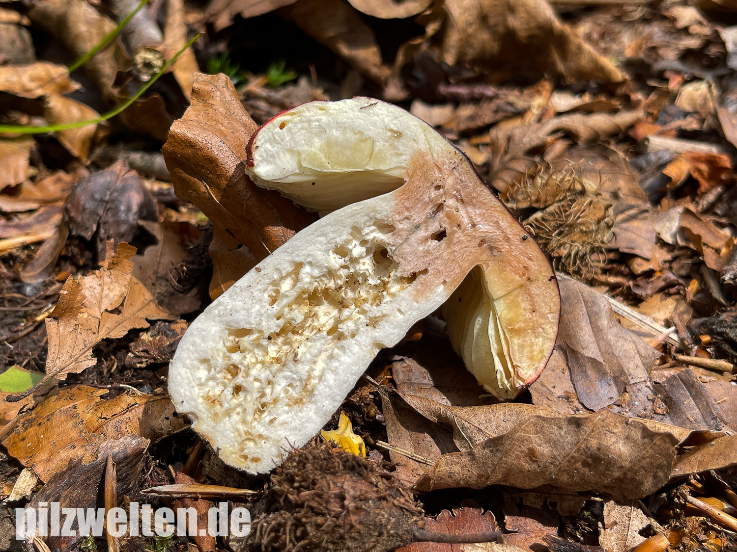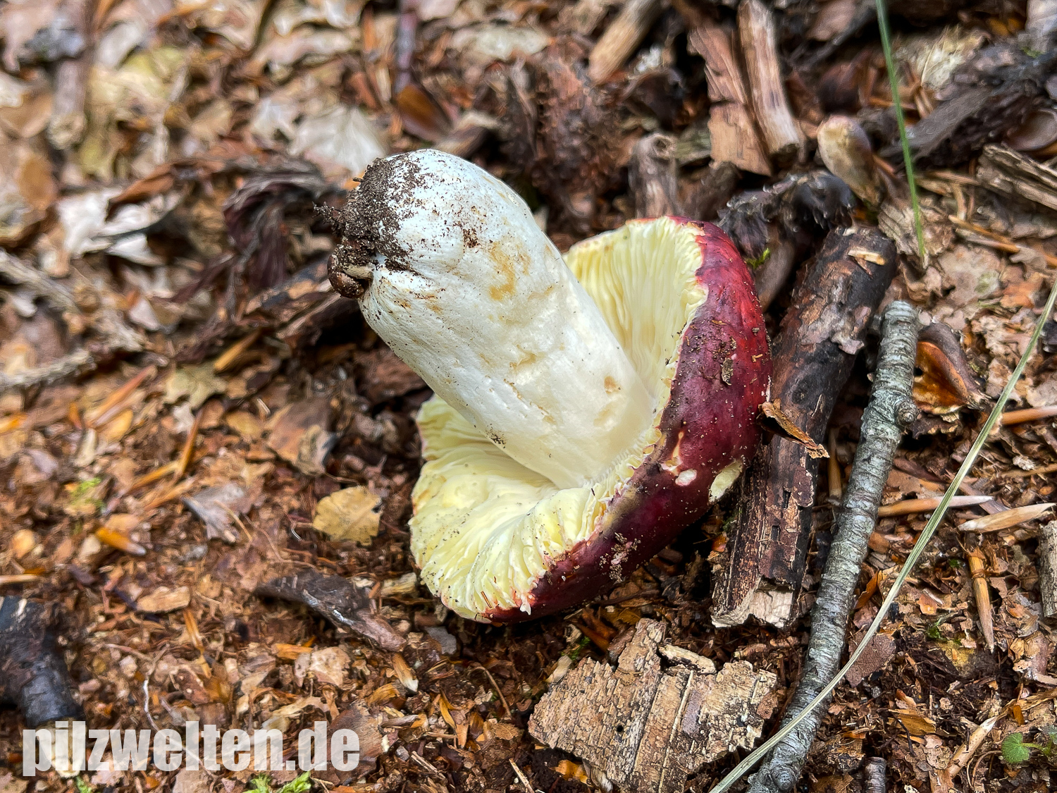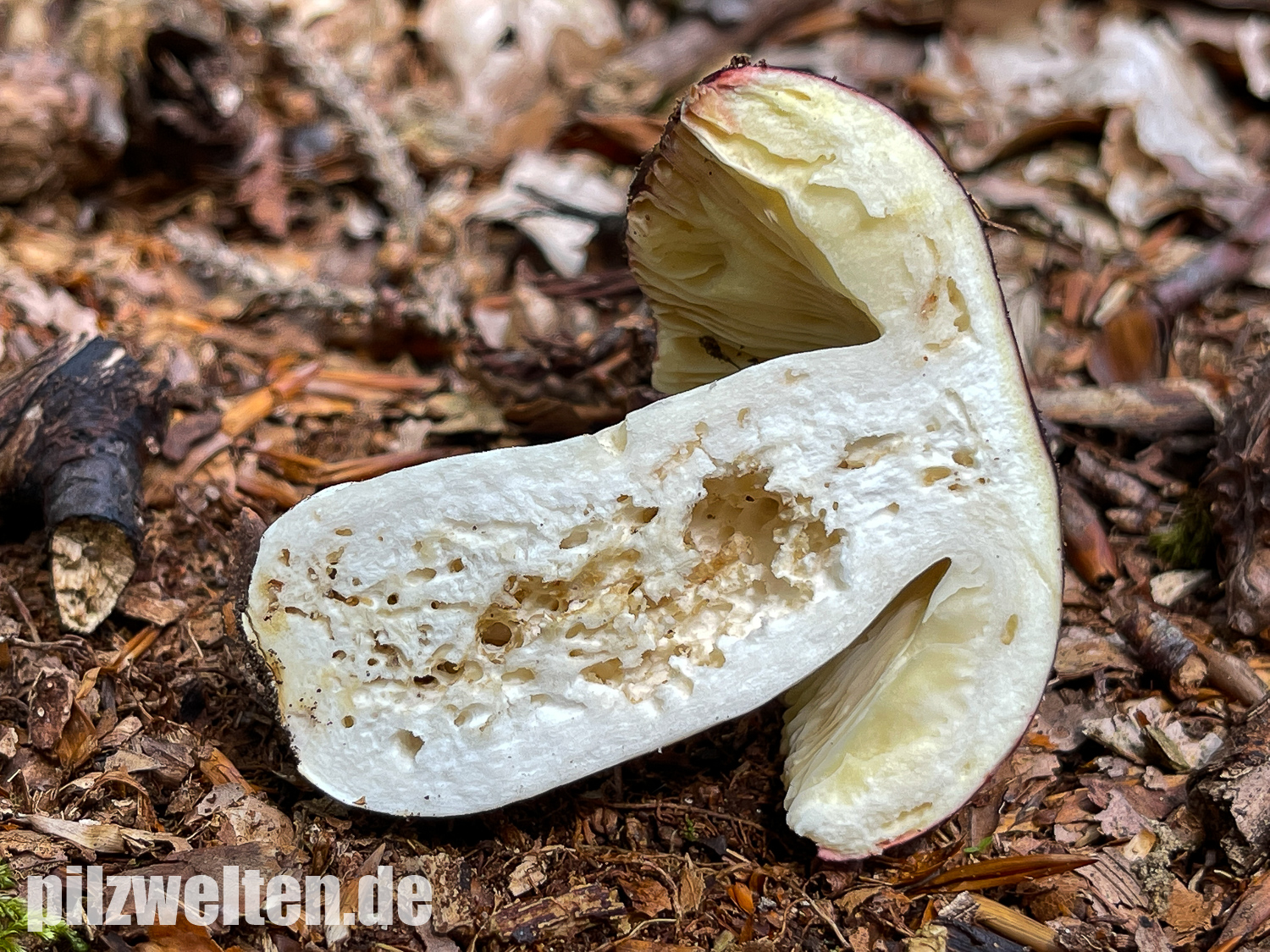 - Besonderheiten: Lamellenschneiden am Hutrand teilweise violett verfärbt. Lamellen auffällig gelblich.