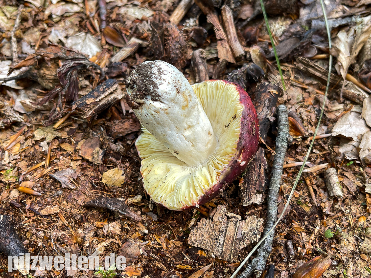 - Besonderheiten: Lamellenschneiden am Hutrand teilweise violett verfärbt. Lamellen auffällig gelblich.