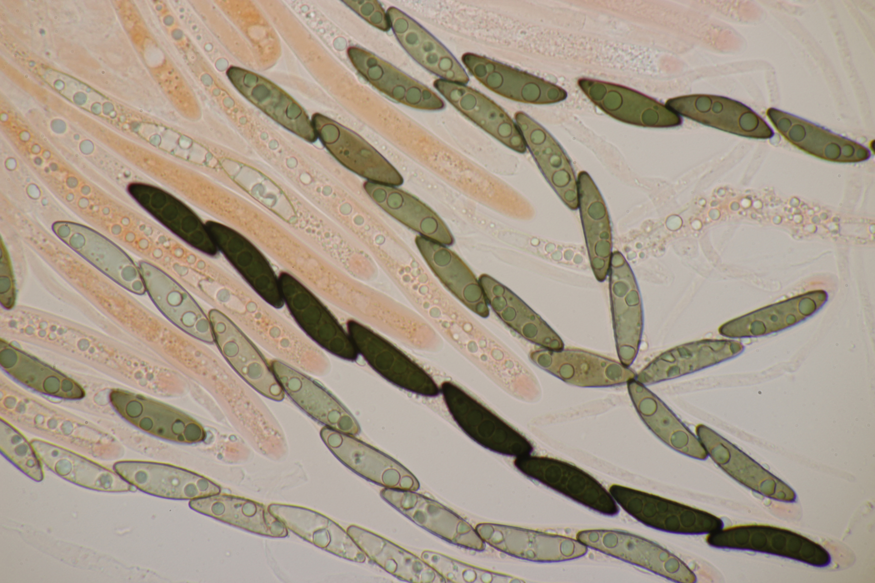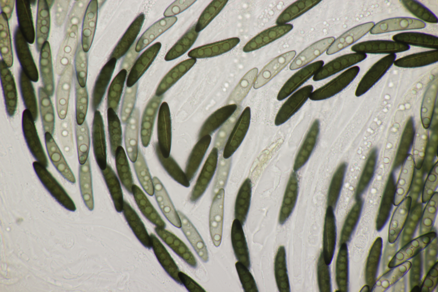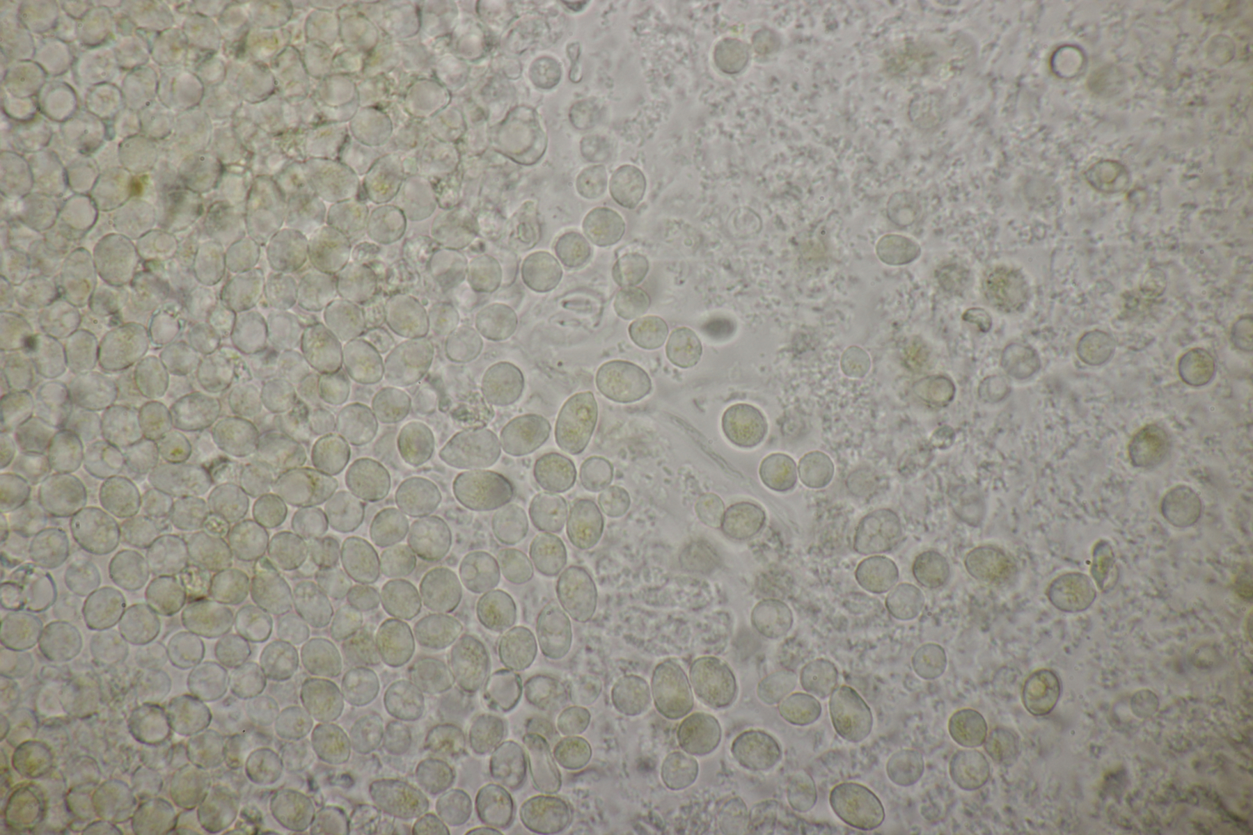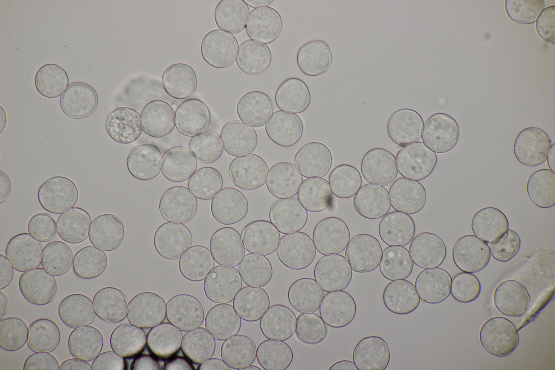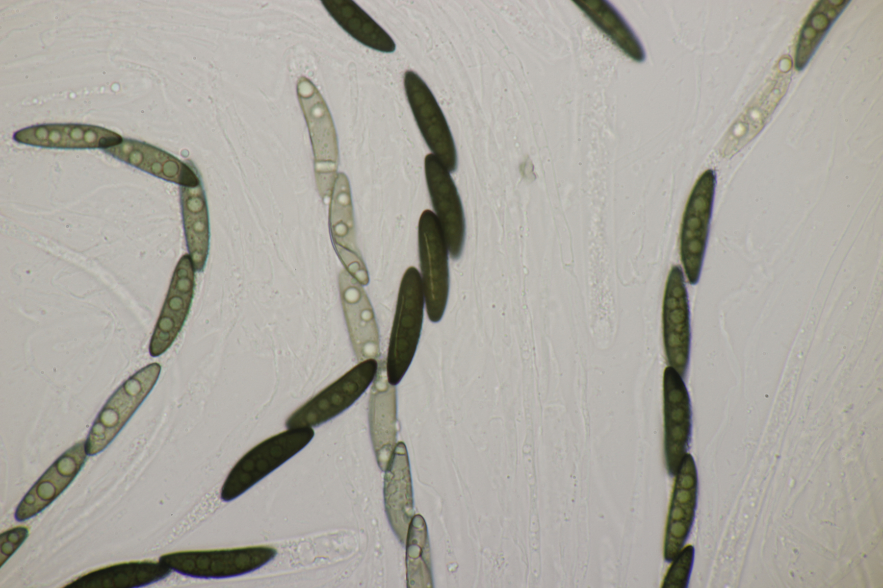 6. Eine Tomentella! Und zwar diesmal sogar etwas gut bestimmbares. Mit den runden Sporen von 7-9 µm und amyloidem Keimporus lande ich bei Tomentella bryophila.