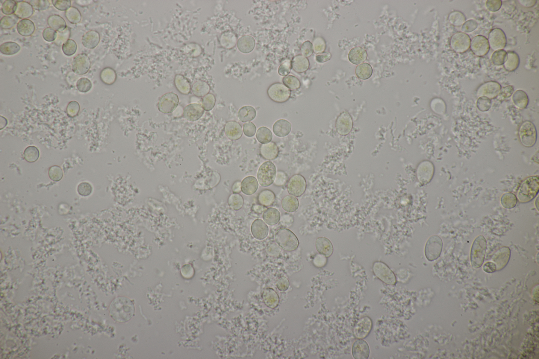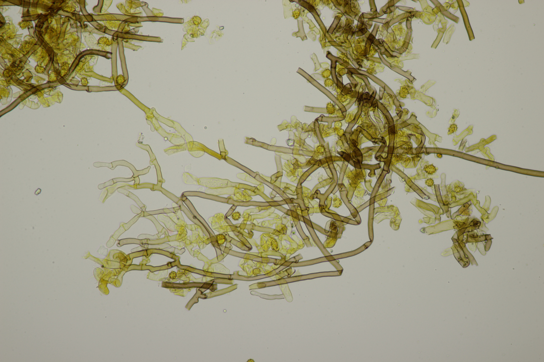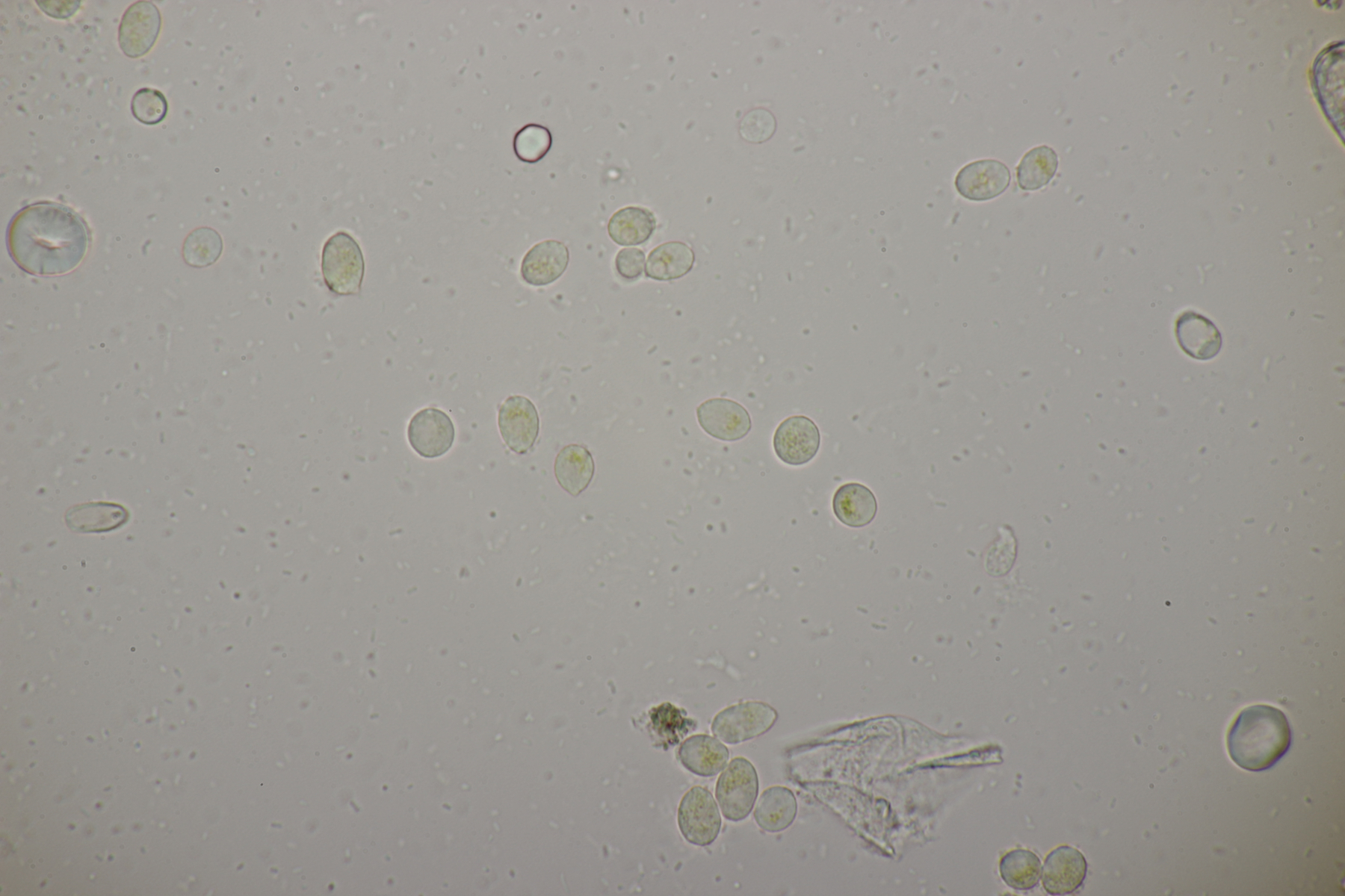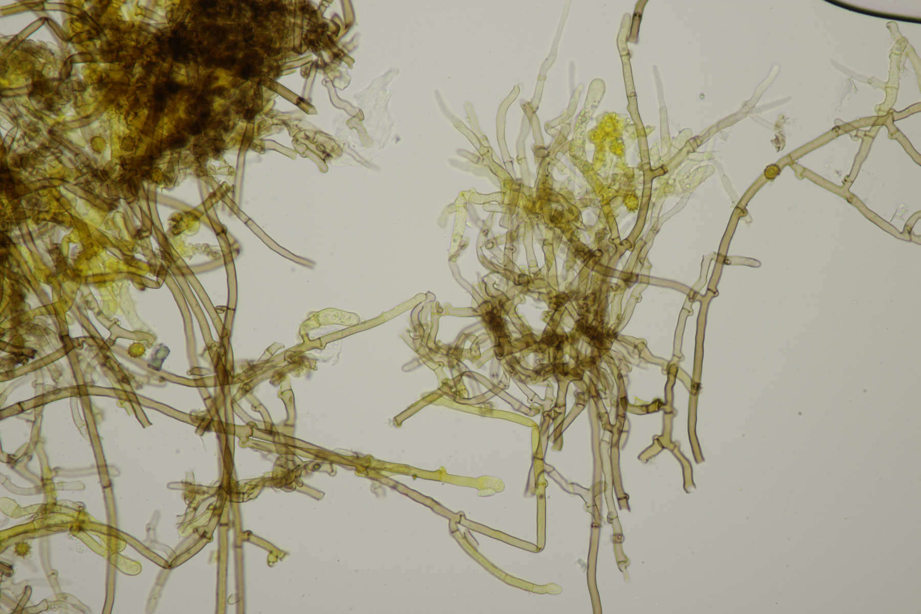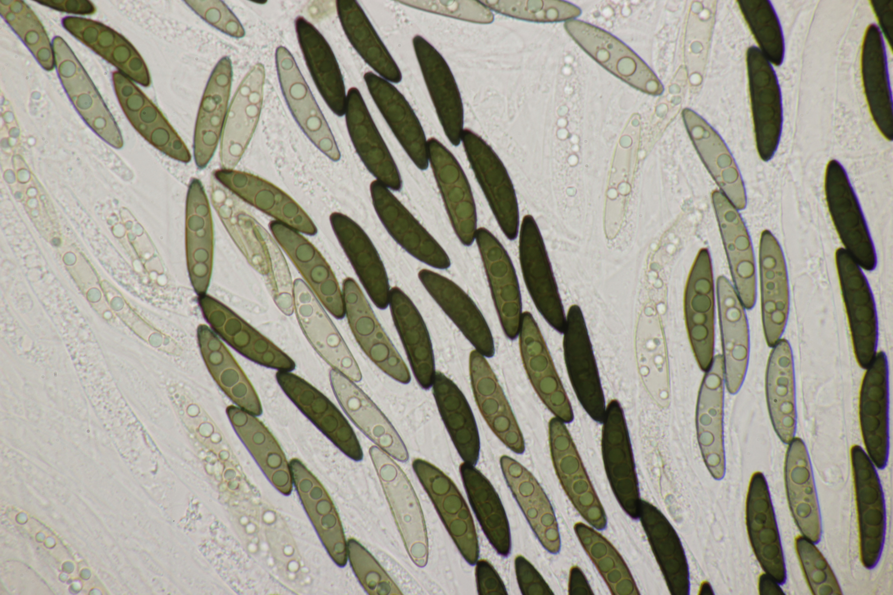 6. Eine Tomentella! Und zwar diesmal sogar etwas gut bestimmbares. Mit den runden Sporen von 7-9 µm und amyloidem Keimporus lande ich bei Tomentella bryophila.