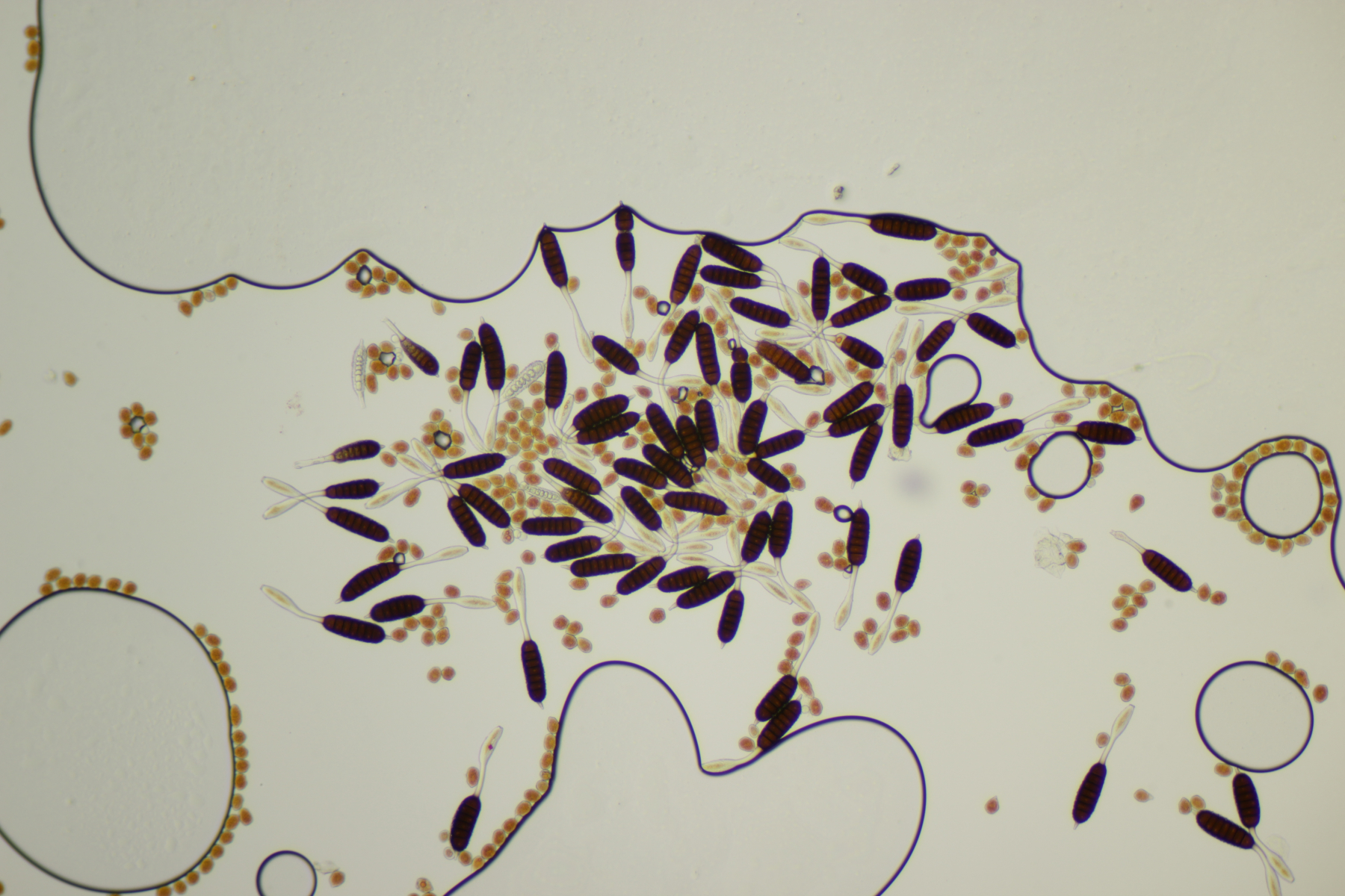 2. Thecaphora oxalidis ex Oxalis stricta. Hier mal die Anamorphe, die auf den Antheren sitzt.