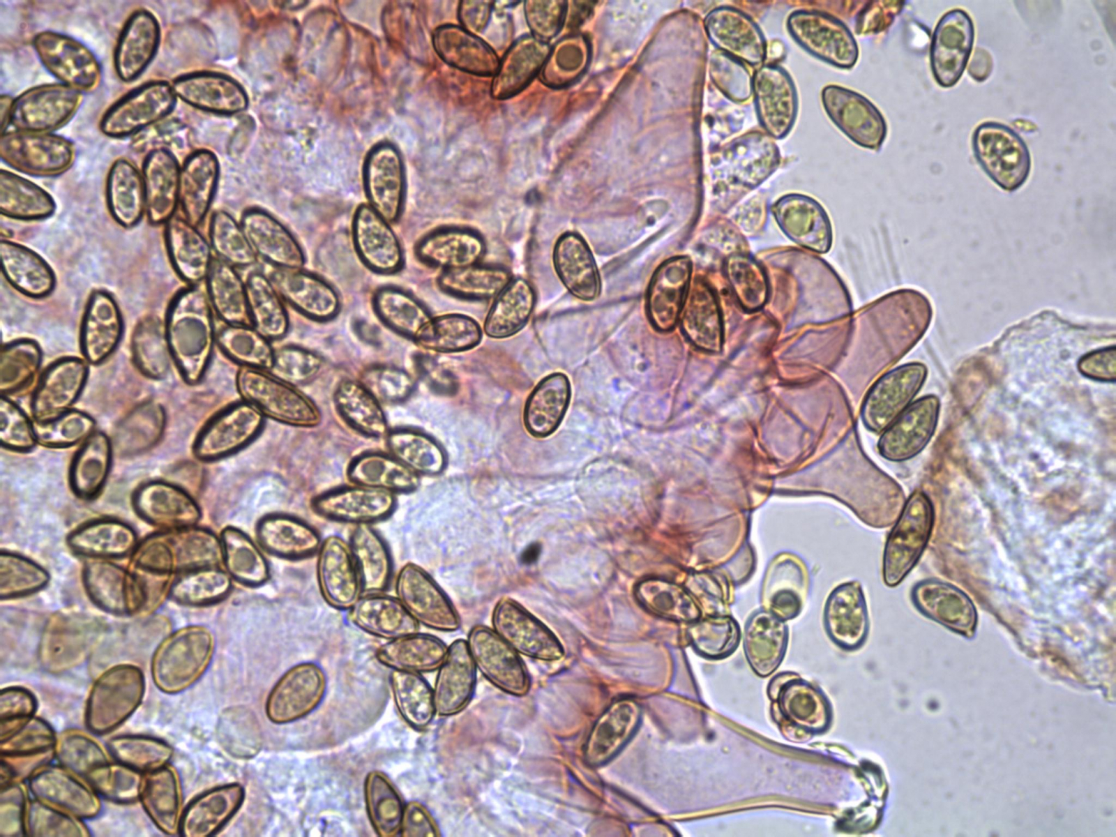Sporen in Wasser: 8.4 × 5.9 µm ; Q = 1.4