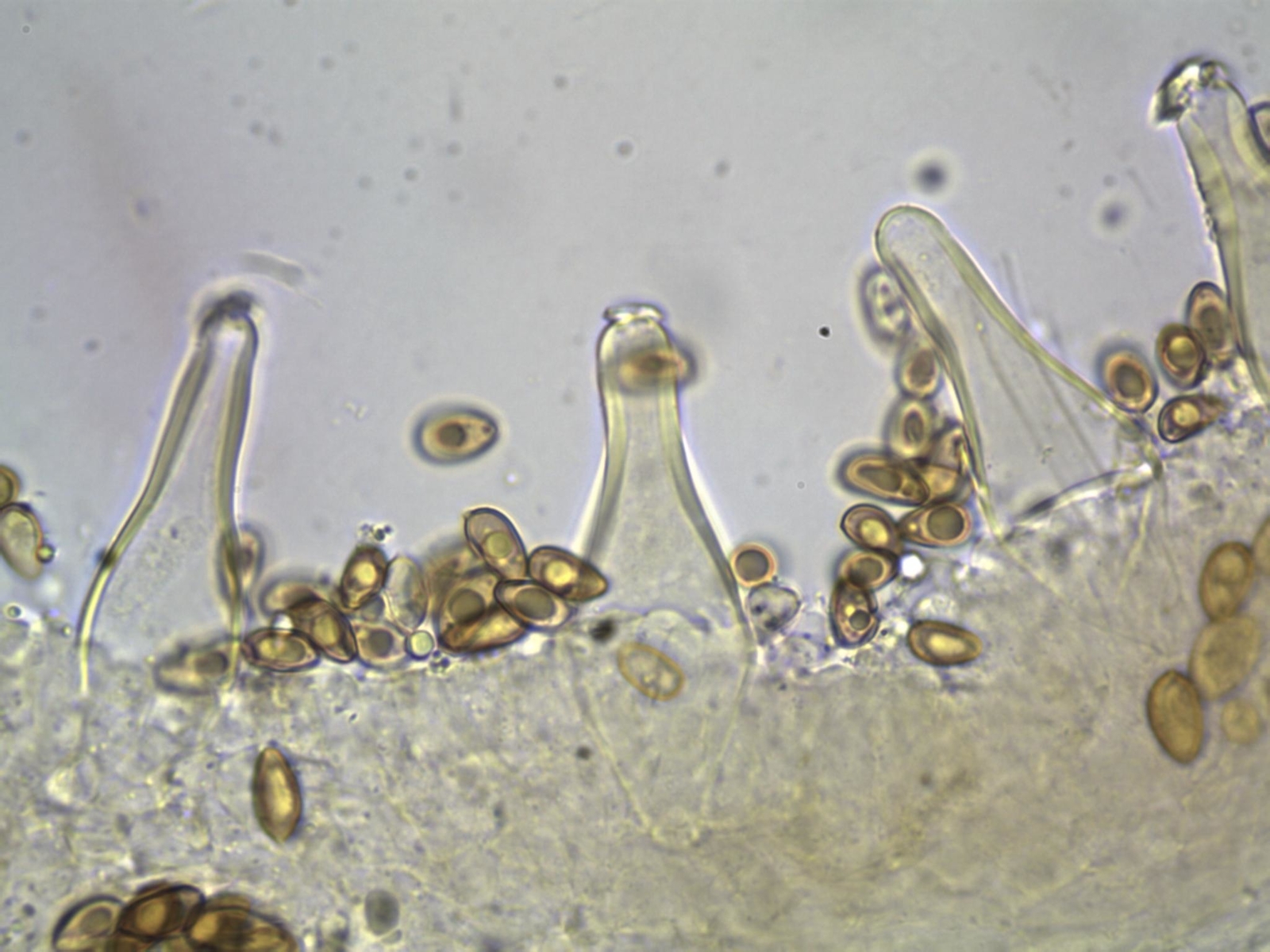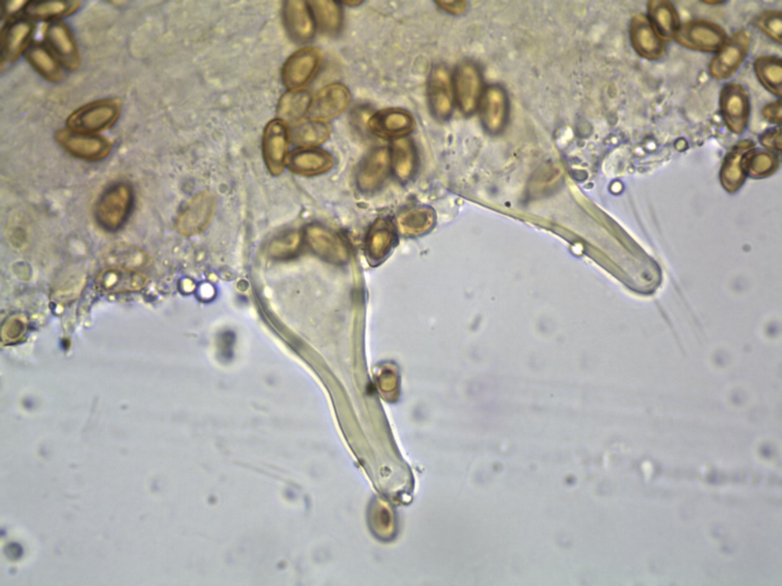 Sporen in Wasser glatt aber schmal: 8.5 × 4.8 µm ; Qe = 1.8; N = 30