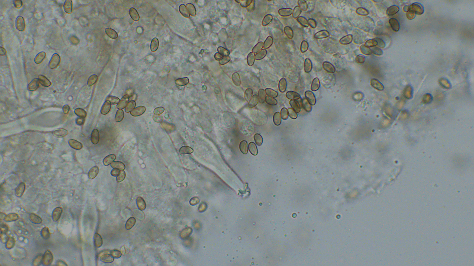 Die Sporen gingen von 6,8-9X3,8-4,2, wobei die 9 tatsächlich eine Ausreißerspore war. Die meisten hatten eine Länge von ca. 7-7,3.