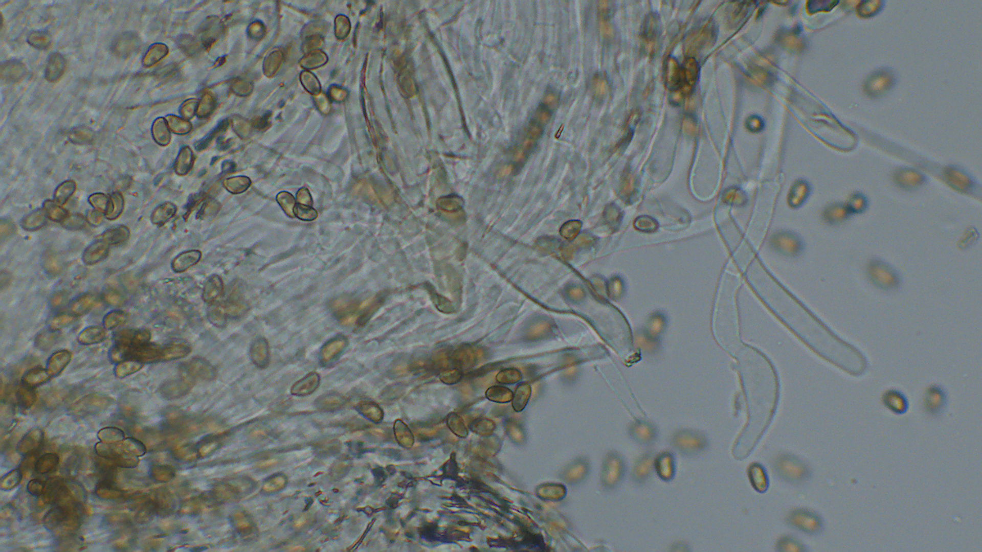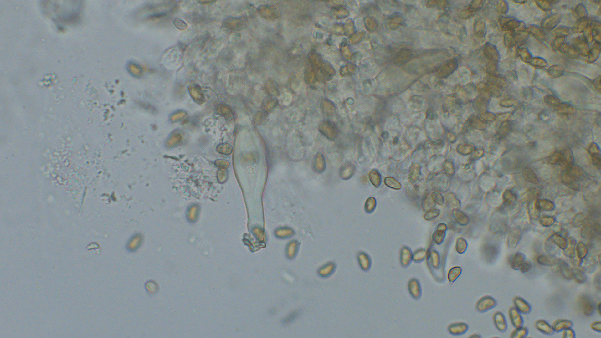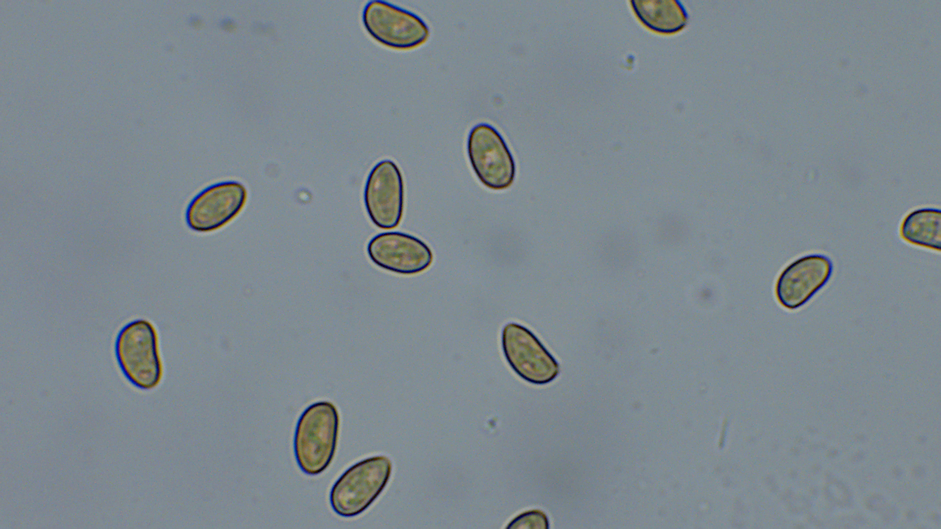 Die Sporen gingen von 6,8-9X3,8-4,2, wobei die 9 tatsächlich eine Ausreißerspore war. Die meisten hatten eine Länge von ca. 7-7,3.