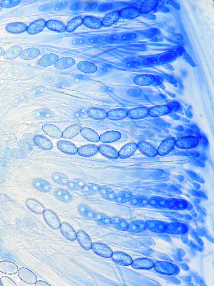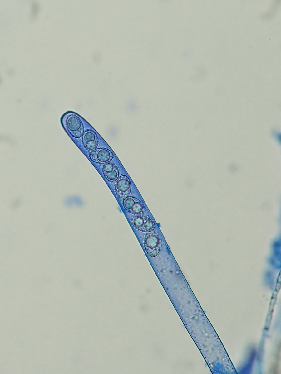 auch nach Haken habe ich gesucht, aber keine gefunden? die Asci scheinen "gerade" verknüpft zu sein (siehe unterer Ascus)?
