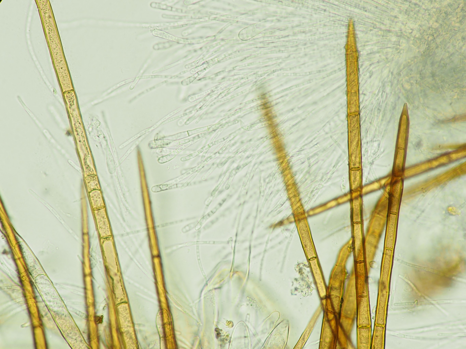 Nachdem es die einzigen waren, tat mich schwer zu beurteilen wie der Reifungszustand so war.. -es waren Babies aber witzigerweise wohl frühreif, denn ich konnte sogar ein paar Asci finden im Gestrüpp. Wahrscheinlich hat sie die Hitze nicht weiterwachsen lassen und die Reifung eingeleitet?