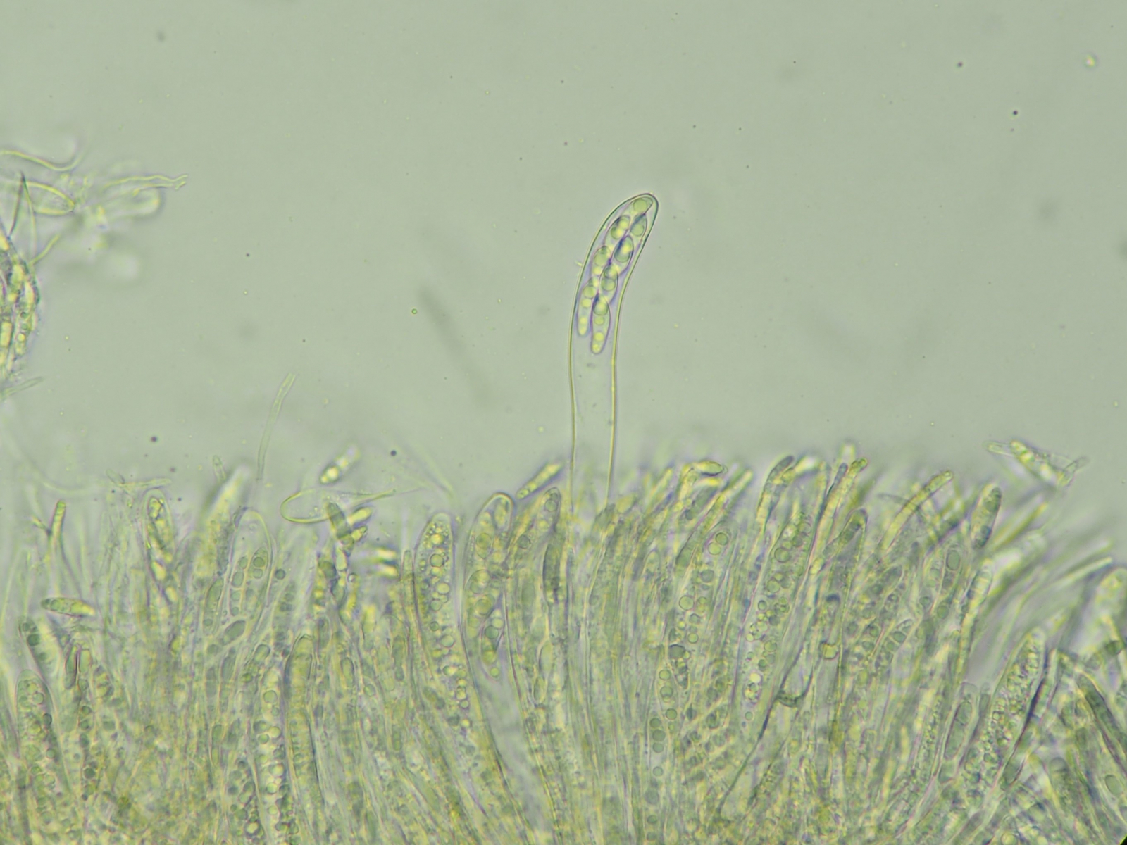 die Paraphysen sind fragmentiert (ob das aber nicht auch ein autolytischer Prozess sein kann) und ohne Auftreibungen an der Spitze