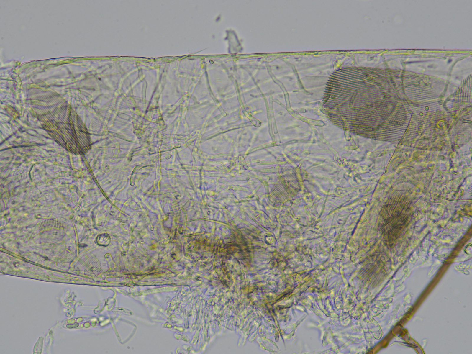 ich fand auch einen Schlauch in dem sich eine ganze Menge davon und einige Pilzhyphen befanden - vielleicht Überreste eines Wurms der sie gefressen hatte? Allerdings fand ich keine Organe des "Wurms".. daher wohl eher doch keiner? vielleicht ein Kotstrang? hach spannde Mikrowelt..:gcool: