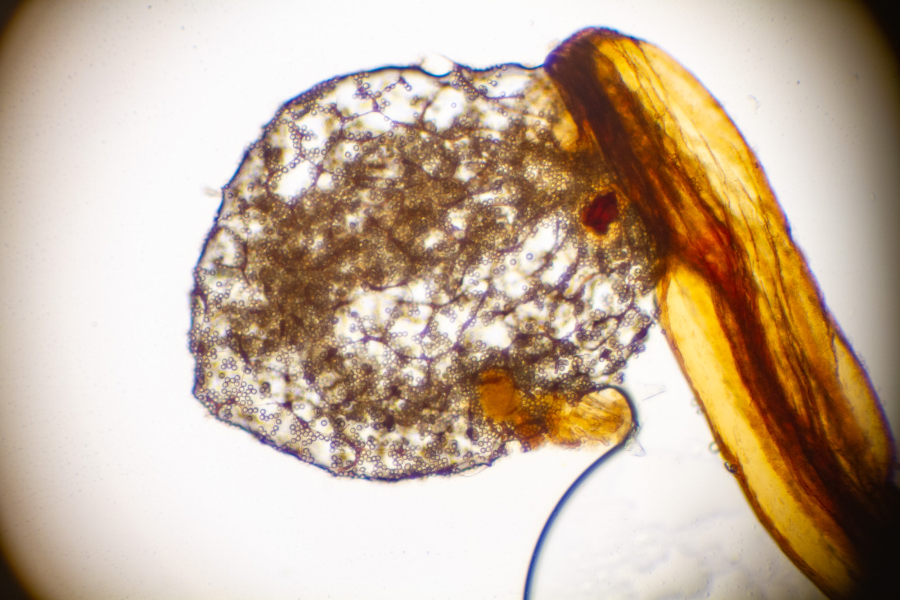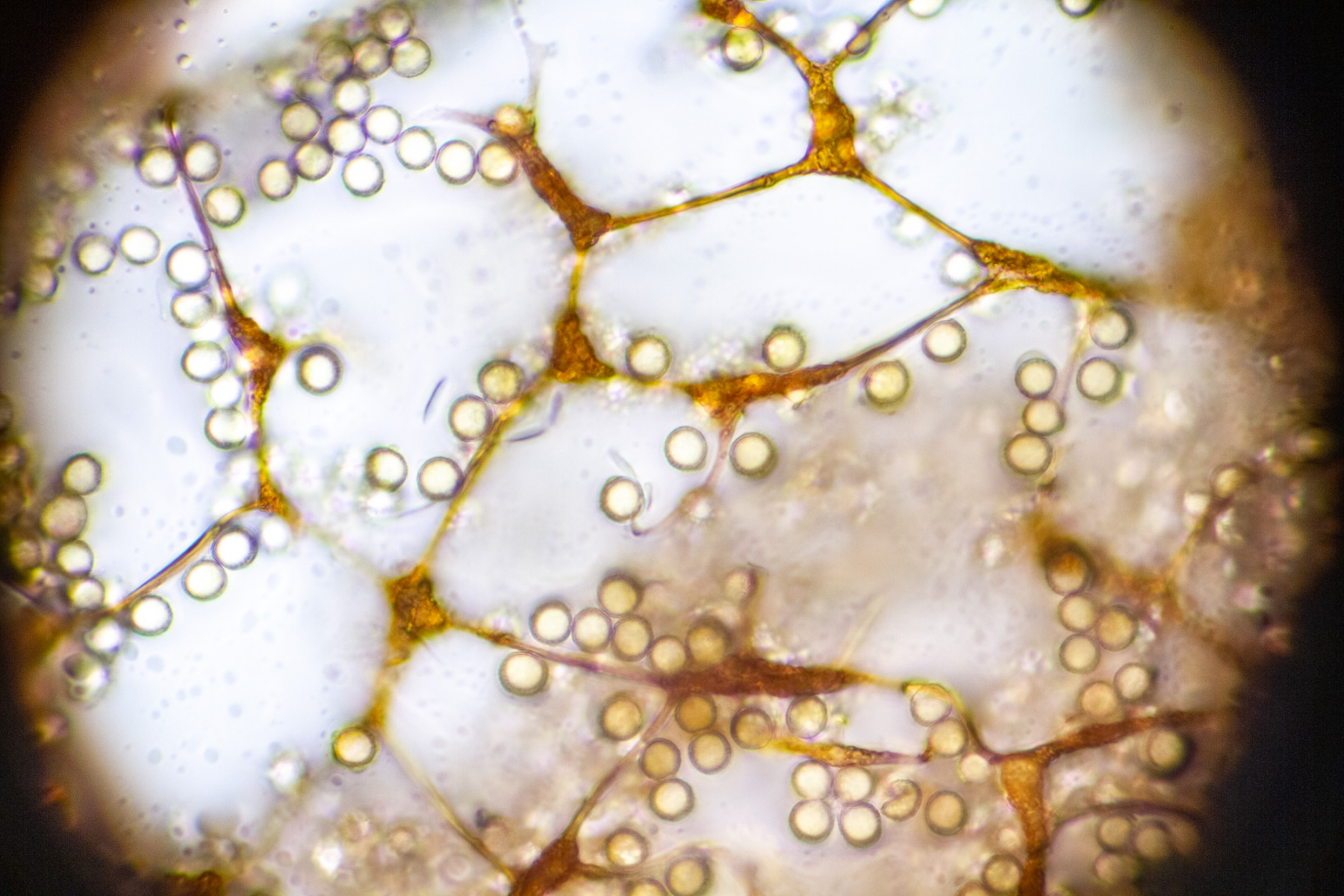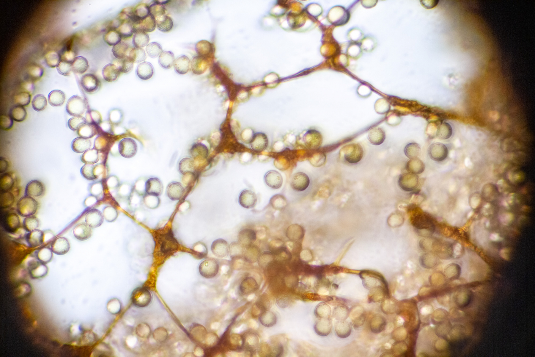 Die Sporen sind etwa 7 µm groß.