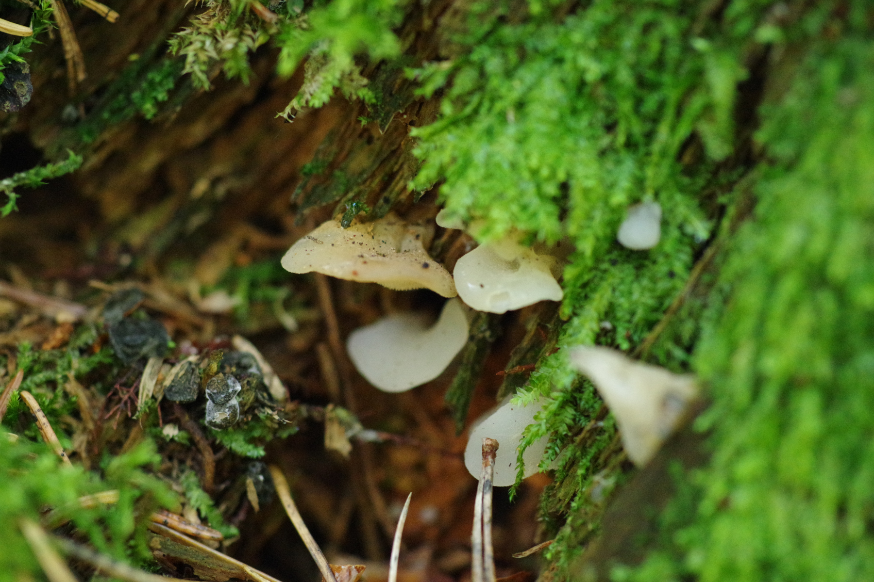 3) damit auch mal was dabei ist, wo ich den Namen kenne, Pseudohydnum gelatinosum in jung, wie üblich an dickeren Fichtenstubben - nicht häufig, aber immer mal wieder anzutreffen.