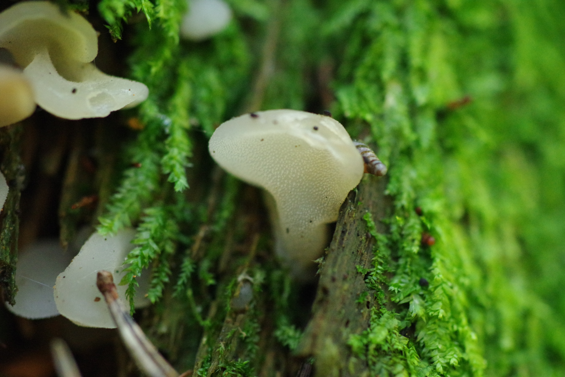 3) damit auch mal was dabei ist, wo ich den Namen kenne, Pseudohydnum gelatinosum in jung, wie üblich an dickeren Fichtenstubben - nicht häufig, aber immer mal wieder anzutreffen.