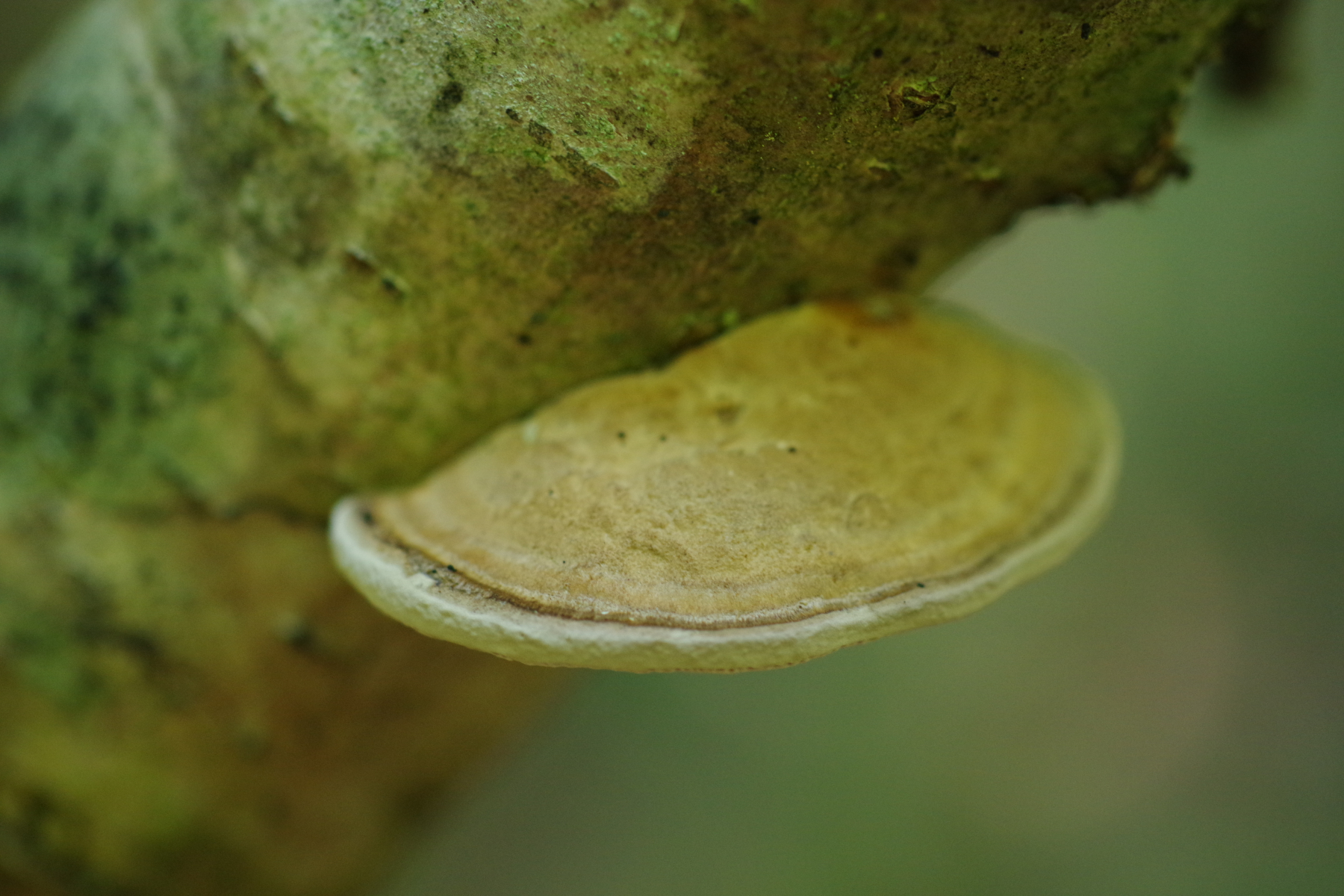 4) ein Porling an Hasel, den ich am ehesten als Hapalopilus nidulans bezeichnen würde, aber darf der so eine deutlich abgesetzte Zuwachskante haben? Zudem wächst der nicht an den beiden Stellen, wo ich den im Winter gefunden hatte - Ortstreue vorausgesetzt. Beim Schneiden weich, aber zäh.
