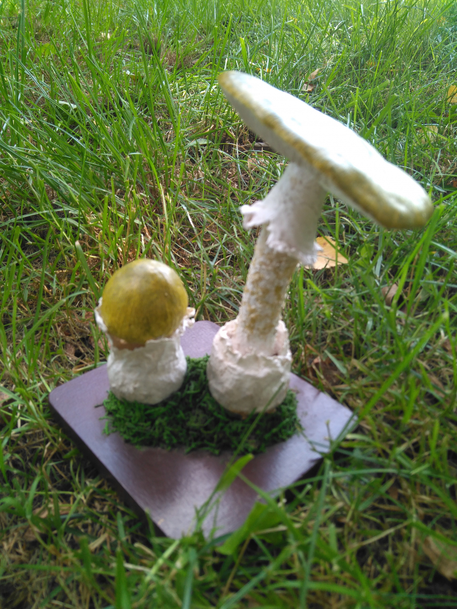 Um die Merkmale ganz genau anzuschauen verwende ich Pilzmodelle vom Pilzkundekabinett Reinhardtsgrimma, zum Beispiel der Grüne Knollenblätterpilz und der Steinpilz: