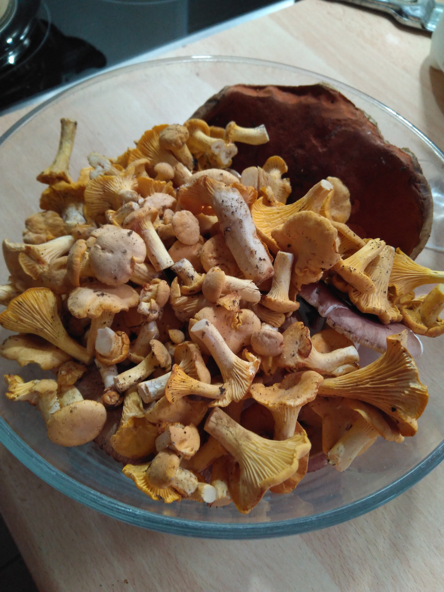 Dennoch hat der Wald heute wieder gezeigt, dass ich ihn auf den richtigen Namen getauft habe: Pfifferlinge, Cantherellus cibarius, ohne Ende. Auf allen Vieren bin ich durchs Gestrüpp gekrochen....