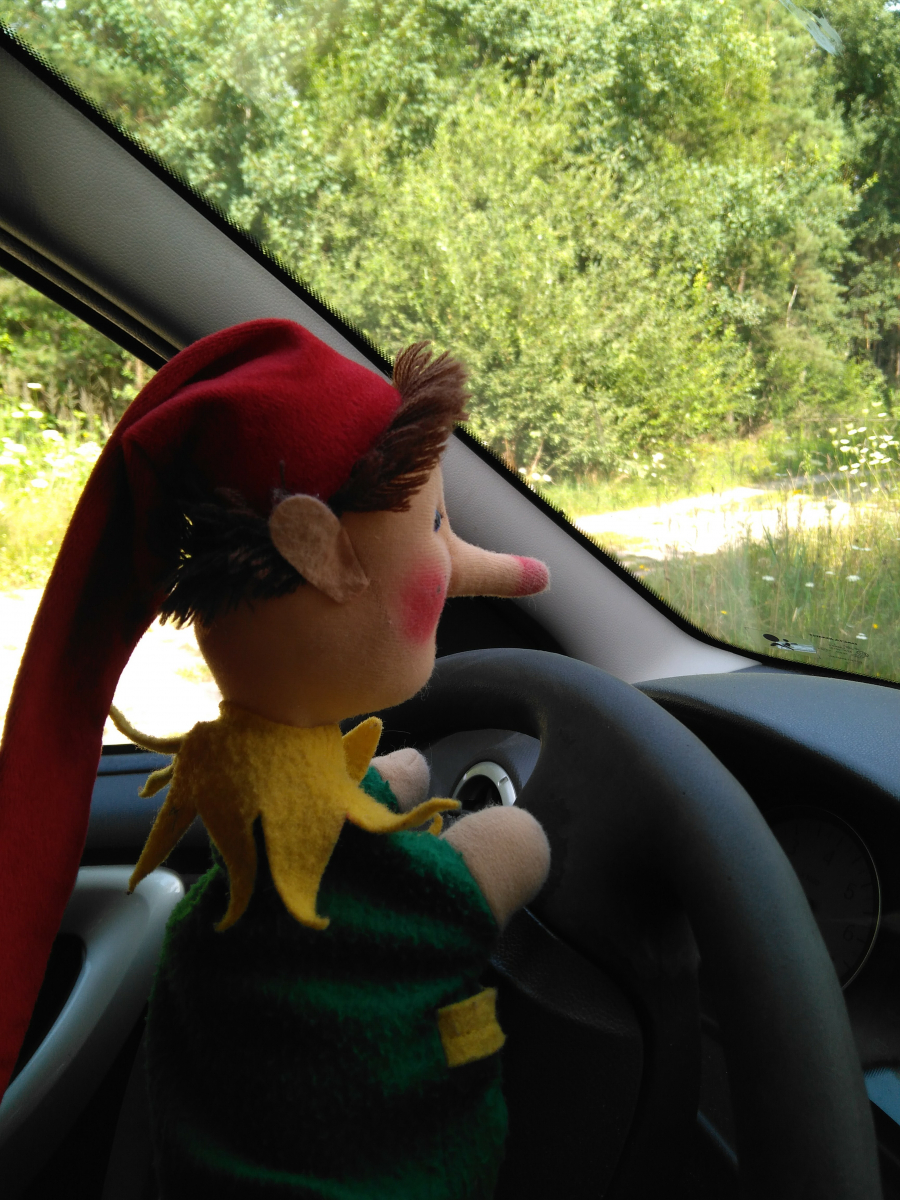 Mich begleitet auf jeden Fall immer das Kasperle, er ist da ganz eifrig und wenn es heißt, es geht los, sitzt er ganz schnell im Auto und will losfahren: