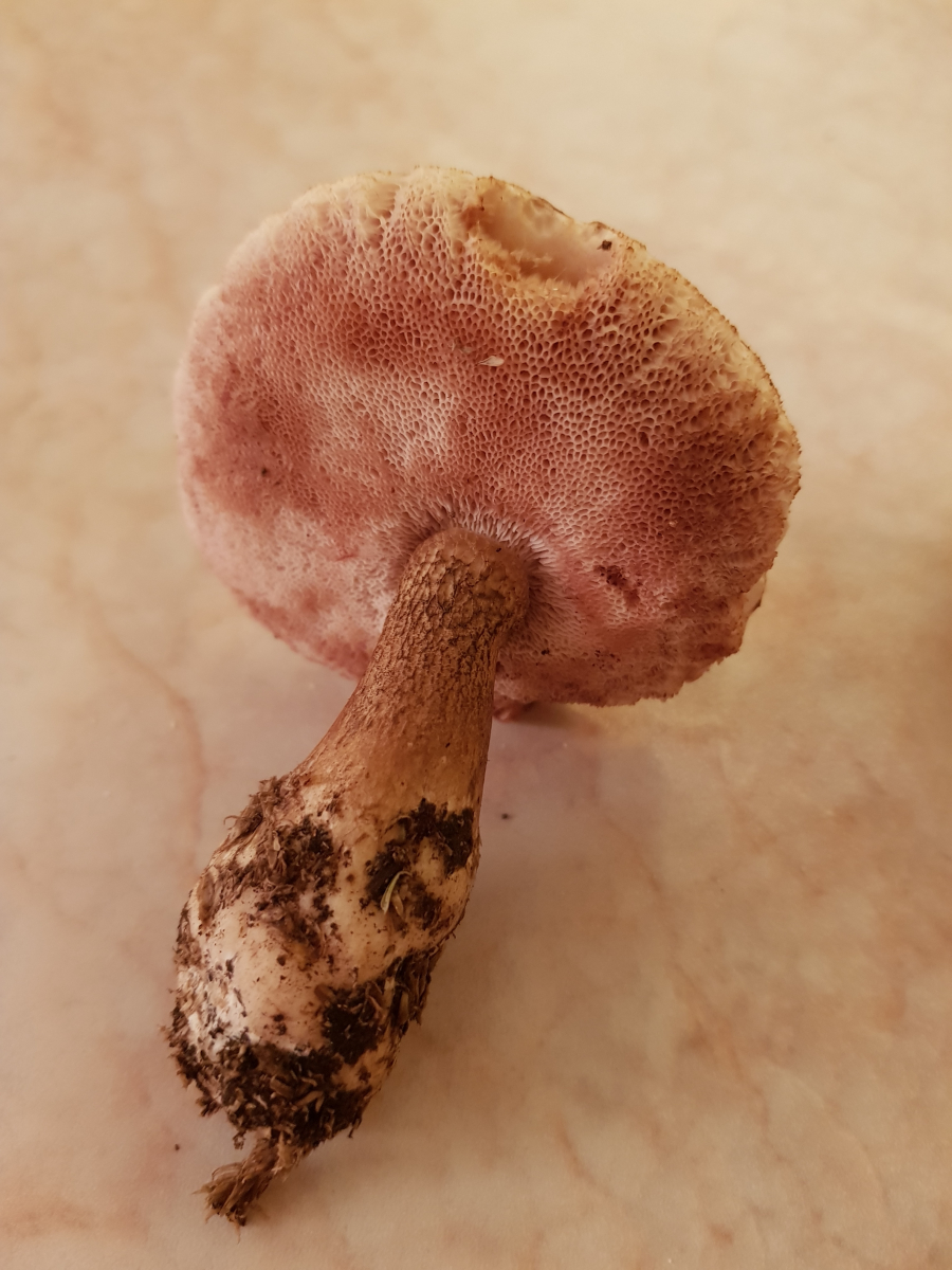 - Fruchtschicht: weiß bzw leicht rosa, bräunlich nach dem Transport, sehr feine runde Poren, bisschen eingesunken um den Stiel rum