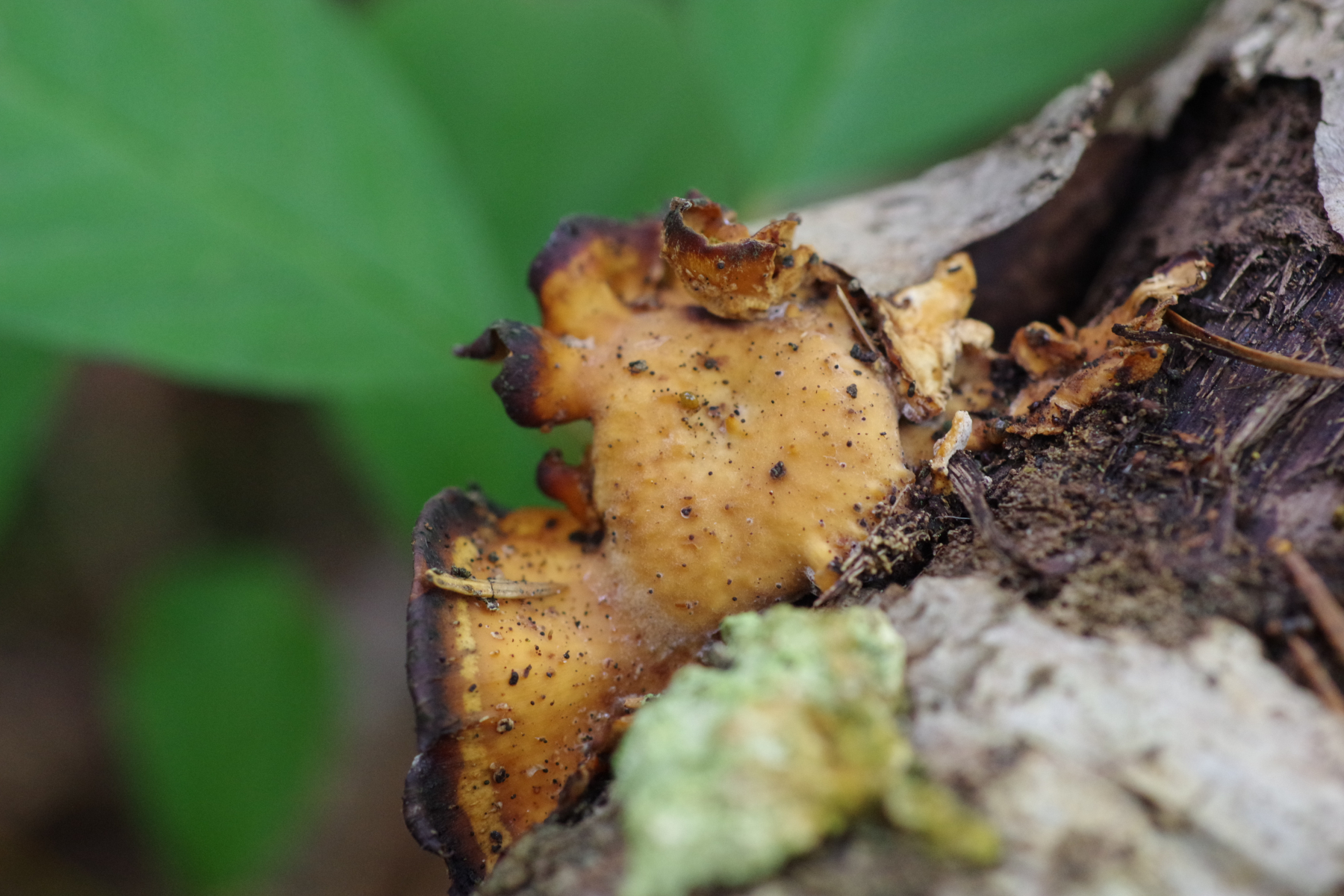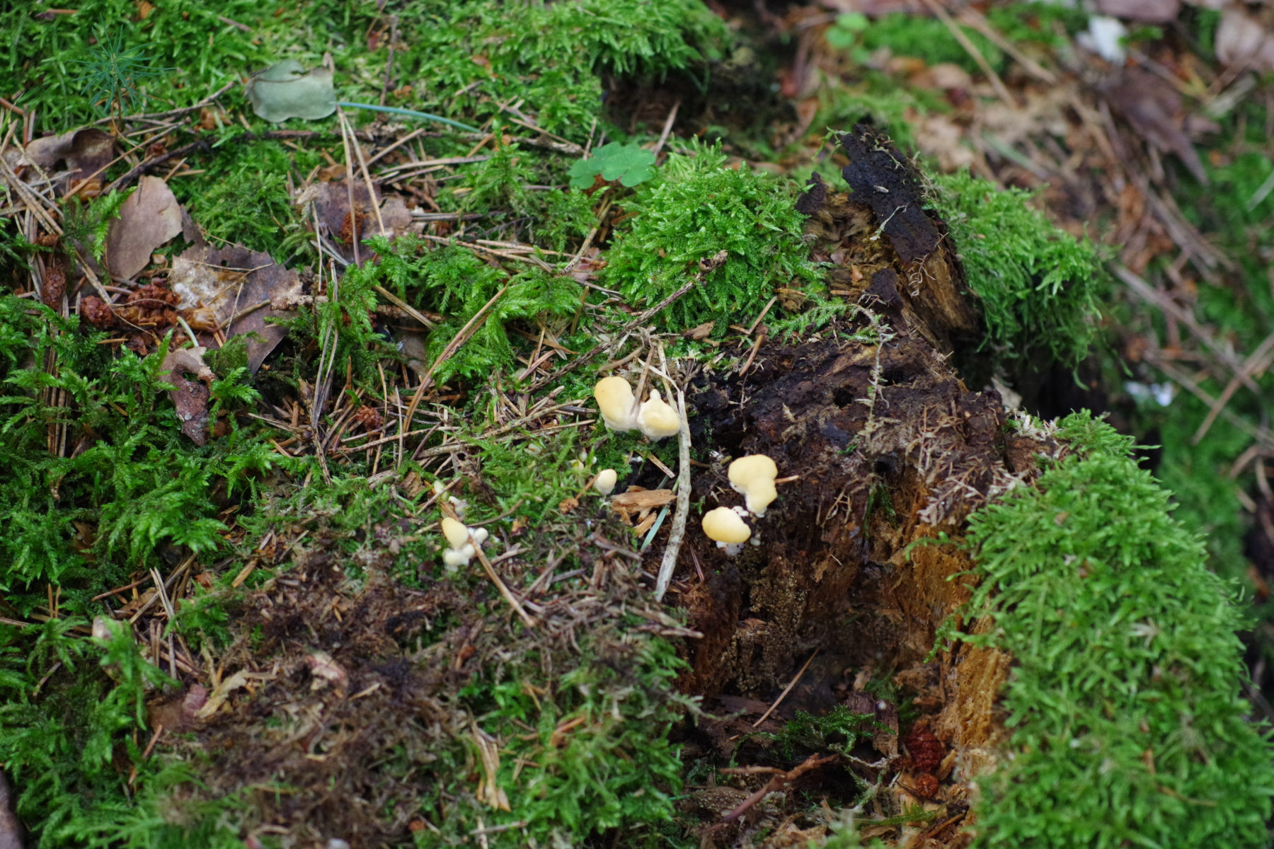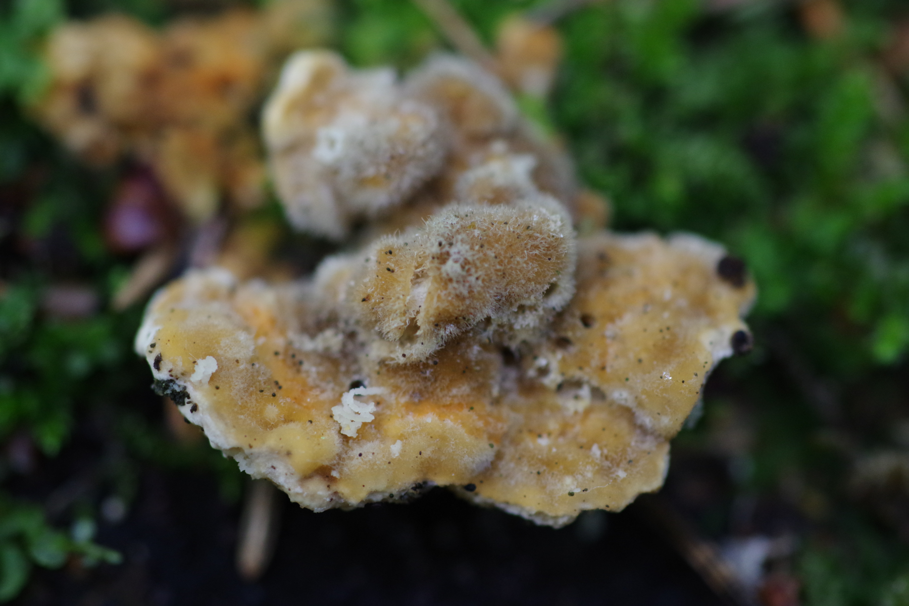 1) Fichtenstubben, vor ca 15 Jahren gefällt, andere Pilze sind nicht erkennbar und ich kann mich nicht erinnern, ob ich an dem im vorigen Jahr was gesehen habe. Also was grellfarbiges jedenfalls nicht. Nicht ganz ausschließen würde ich, dass es Richtung C. fulgens geht; aber der Pilz, den ich im anderen Thread mit diesem Verdacht verfolge, ist schon deutlich oranger