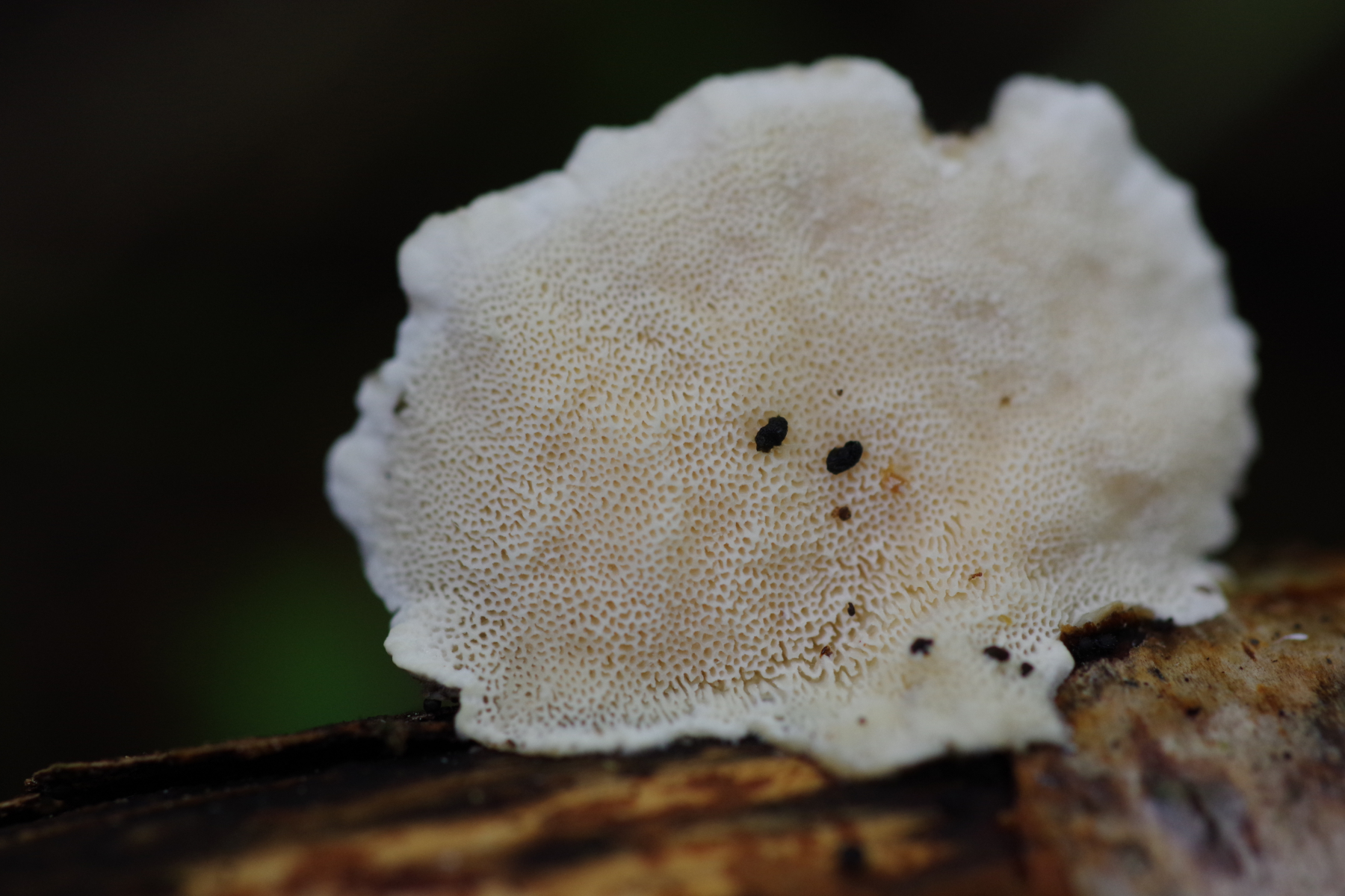 4) das dürfte Bjerkandera fumosa sein, wenn auch eigentlich deutlich zu klein. Die schwarze "Brandkante" dürfte namensgebend gewesen sein. Oder kommt da noch was anderes in Frage?