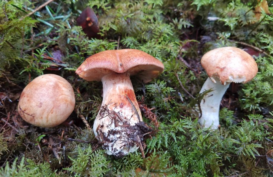 gestern hab ich ein Schleierlingstrio entdeckt, für das ich keinen Namen habe. Aber da es sich um recht ansehnliche Exemplare mit einem Hutdurchmesser von 6 - 9 cm handelt, könnte vielleicht jemand von euch eine Idee haben, denke ich - Cortinarius oder mollisia zum Beispiel.