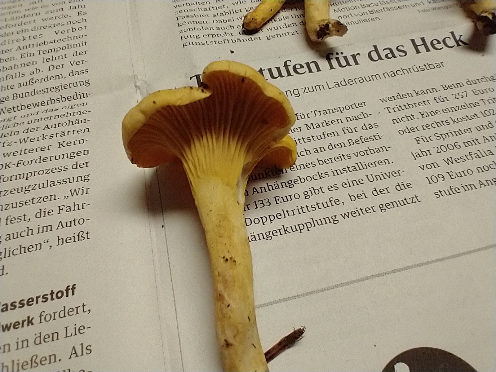 Pilz 5: Das halte ich für einen Pfifferling. Bei Pfifferlingen möchte ich gerne allmählich anfangen, zum Verzehr zu sammeln.