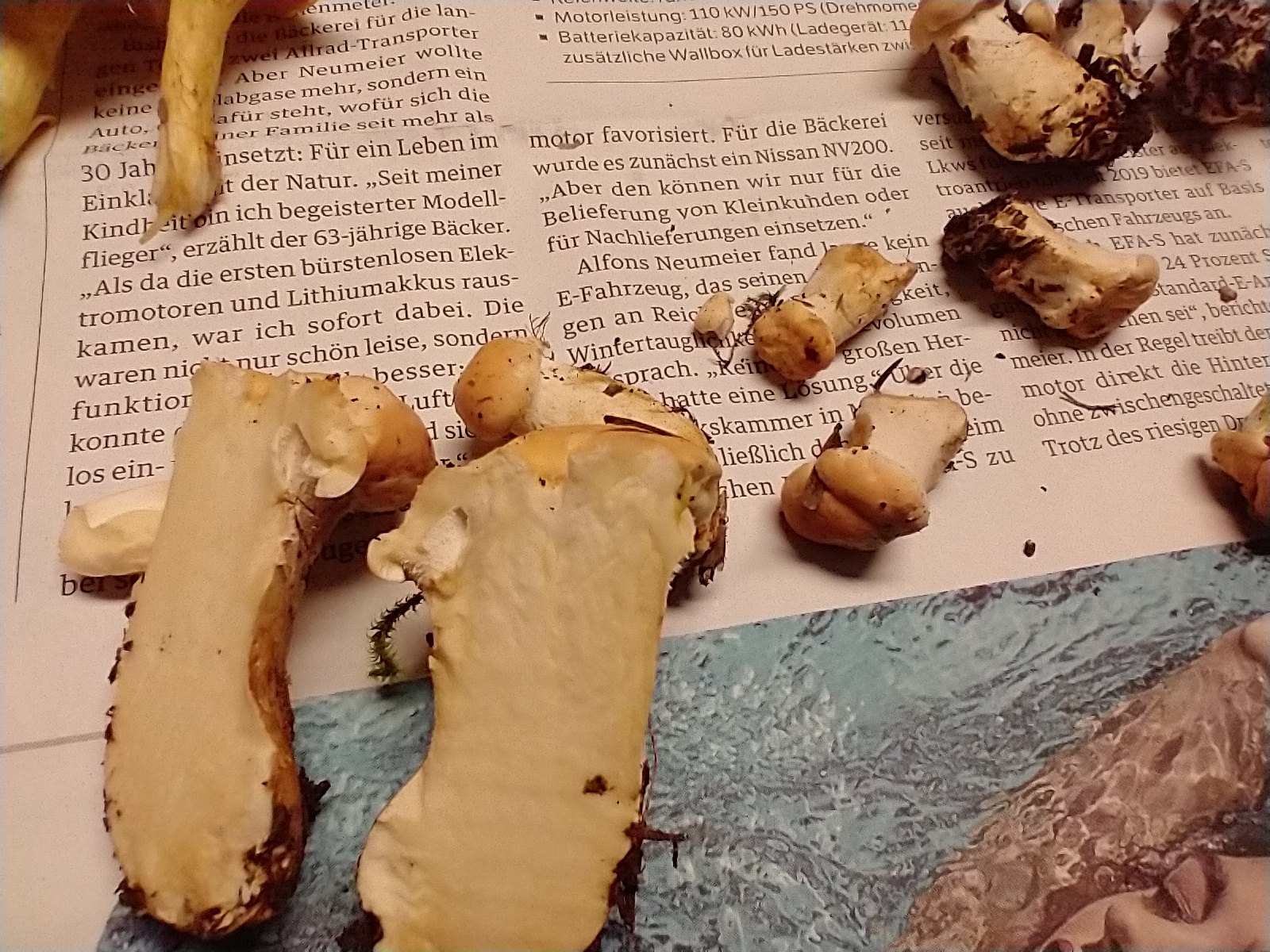 leider gab es die Tage, keine Pilze die ich sicher erkennen und zum Verzehr sammeln würde. Allerdings gab es wieder mehr Pilze. Ein paar davon habe ich auch schon öfter stehen lassen. Normalerweise nehme ich nur gelegentlich einen einzelnen Pilz zum kennenlernen mit, diesesmal hat mich aber die Sammelwut überrant. Ich würde mich freuen, wenn jemand seine Einschätzung zu meinen Bestimmungen beisteuert. Ich zeige nur die Pilze, bei denen ich mir nicht sicher bin.