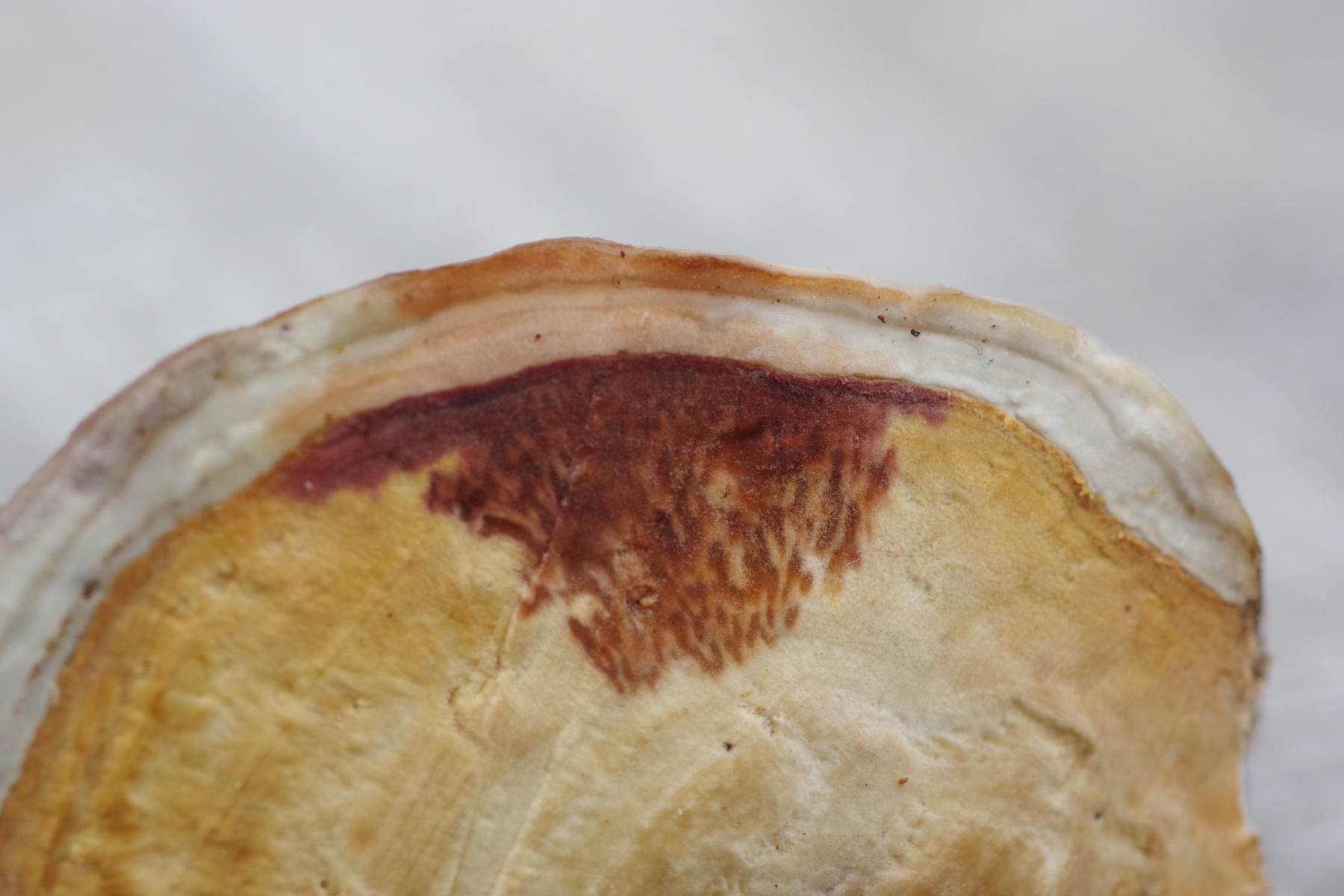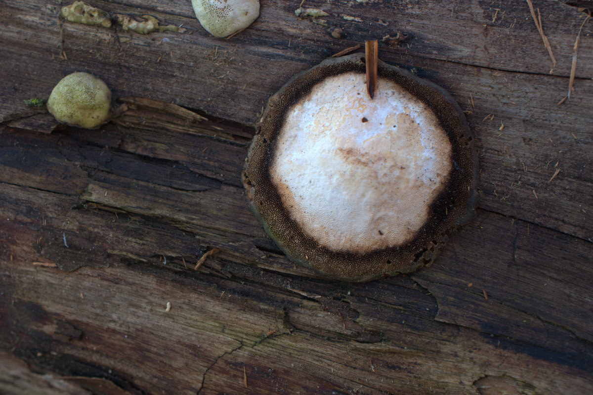 • Hallo beli, den Gedanken an F. pinicola hatte ich auch. Besonders von der Form, und natürlich auch vom Substrat her, würde das gut passen. Aber so konsequent in weiß? Bild 1 und 2 sind die gleichen Frk., nur etwas versetzt. Die Bilder 6, 8, 9 zeigen den Frk. von Bild 1. Detailliertere Bilder von oben habe ich nicht, kann ich aber von dem Belegschnipsel noch machen. Weiß, käsig, nichts besonderes
