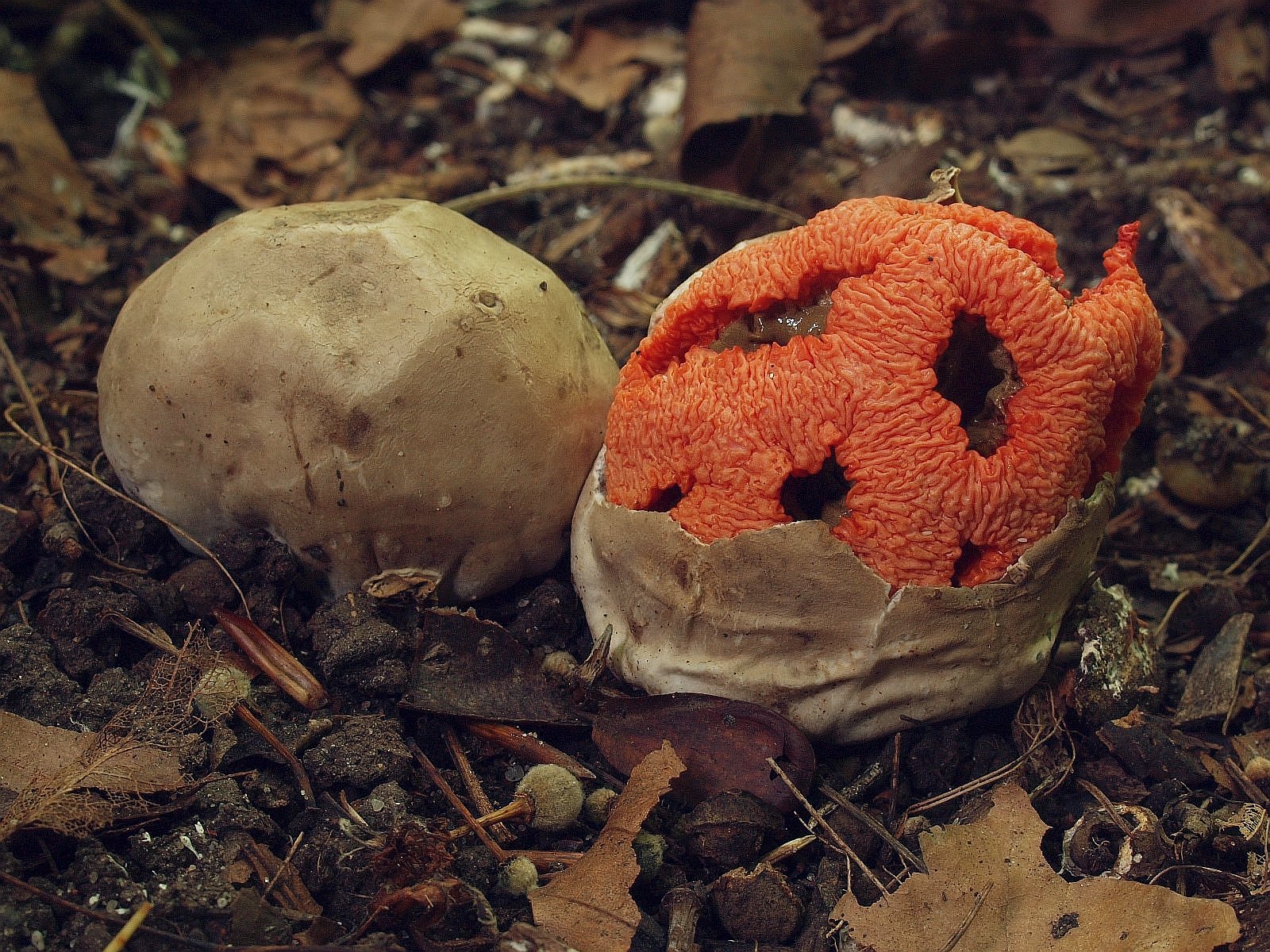 bereits vor drei Wochen waren an einer im letzten Jahr von einem Pilzfreund entdeckten Stelle mehr als zehn Hexeneier zu sehen. Zwischenzeitlich bekam ich regelmäßig Meldungen über den Zustand aber entweder waren keine Fruchtkörper bereit zum "Schüpfen" oder schon wieder zusammengeklappt.