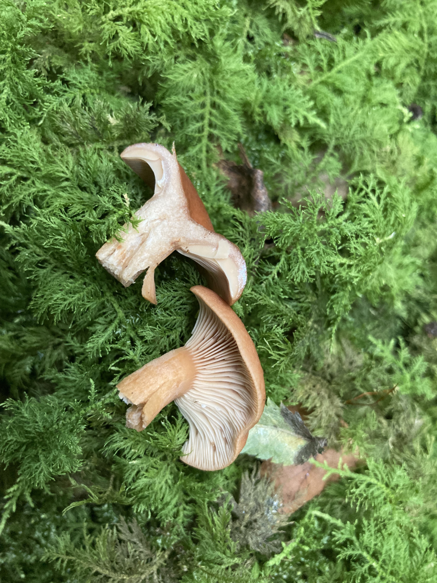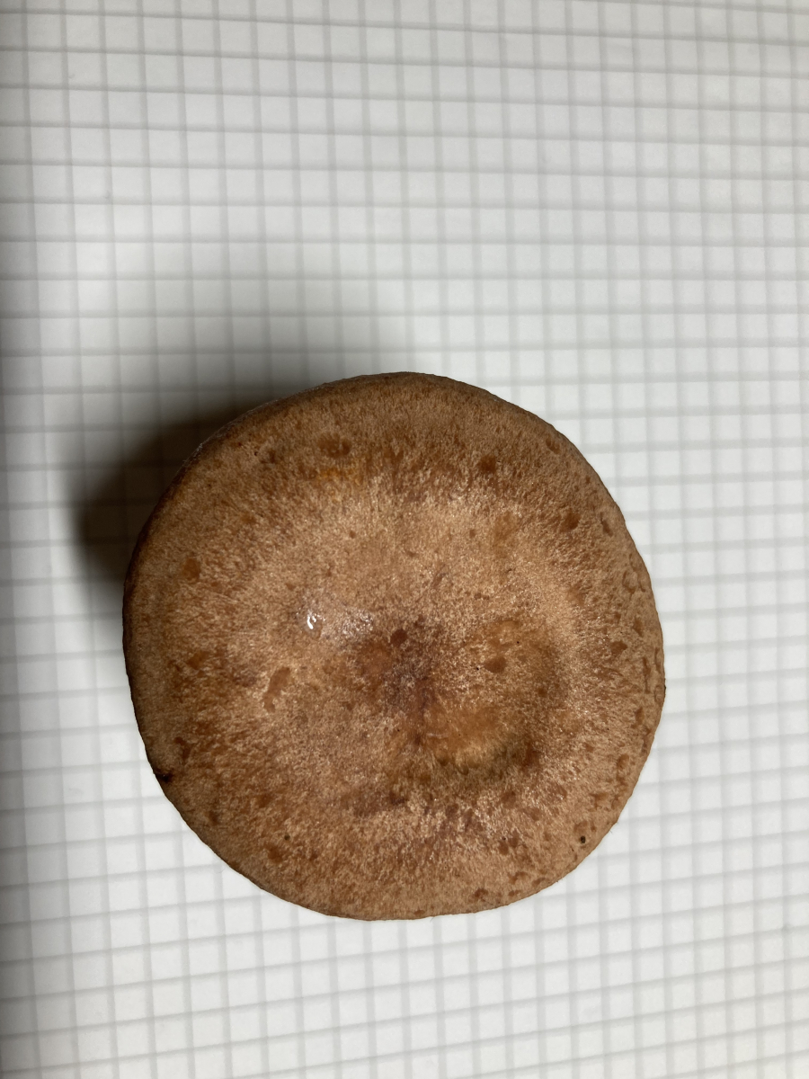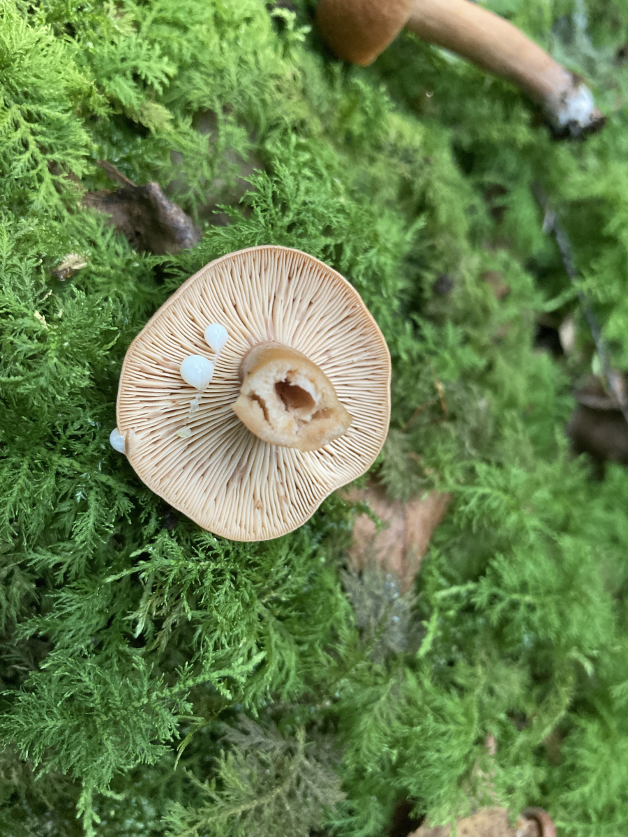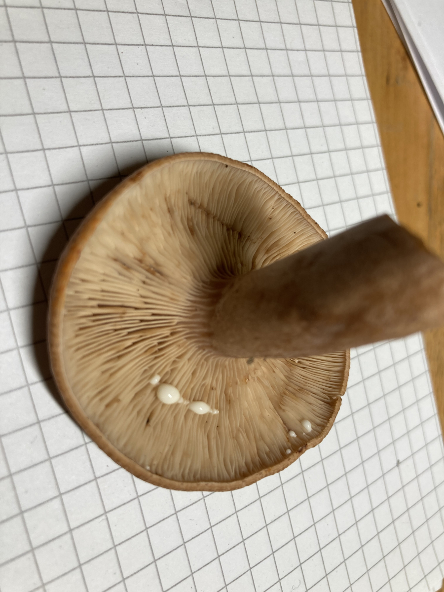 Lamellen: hellbraun/cremefarben, kurz am Stirl herablaufend angewachsen, mit Zwischenlamellen.