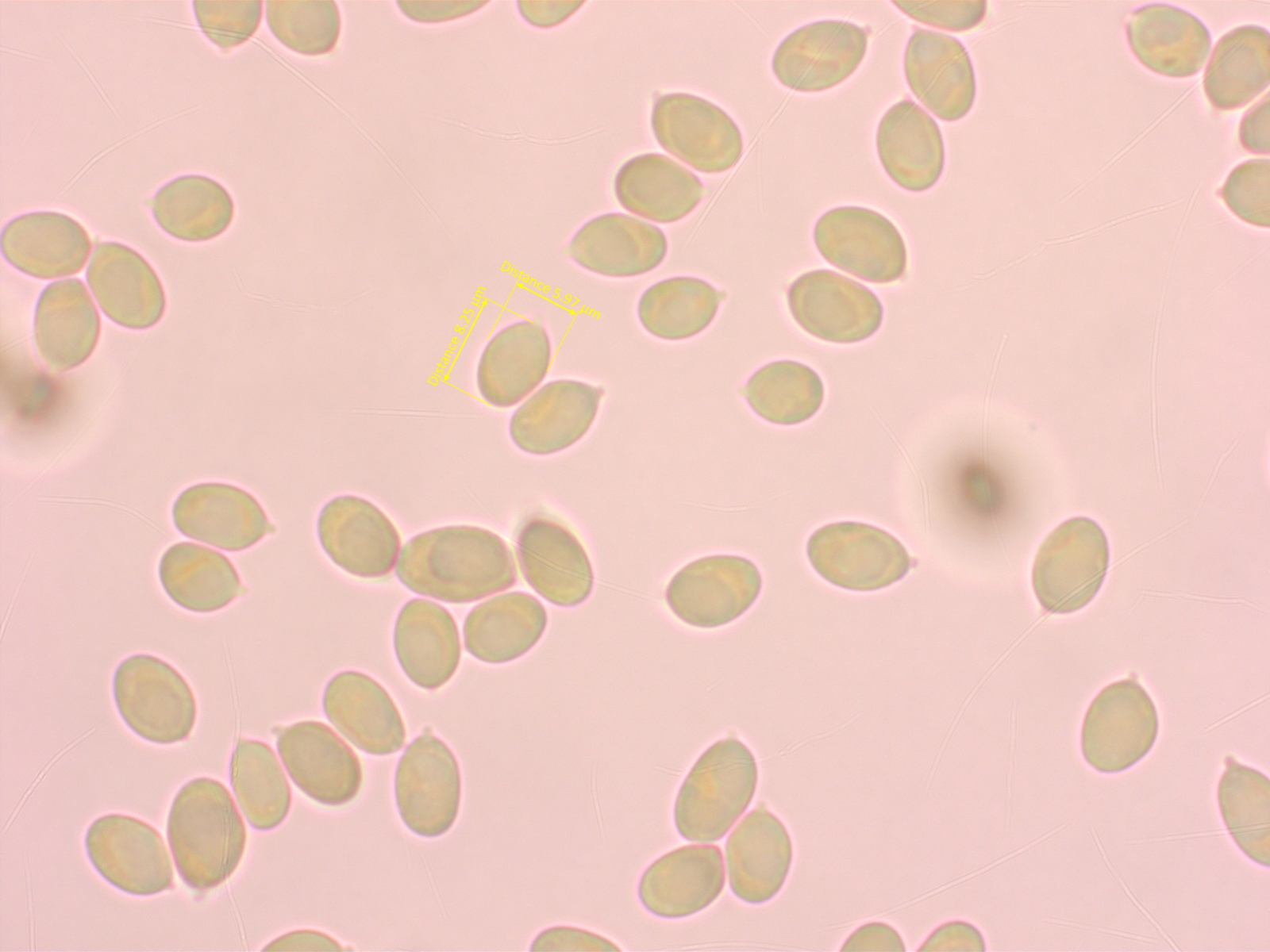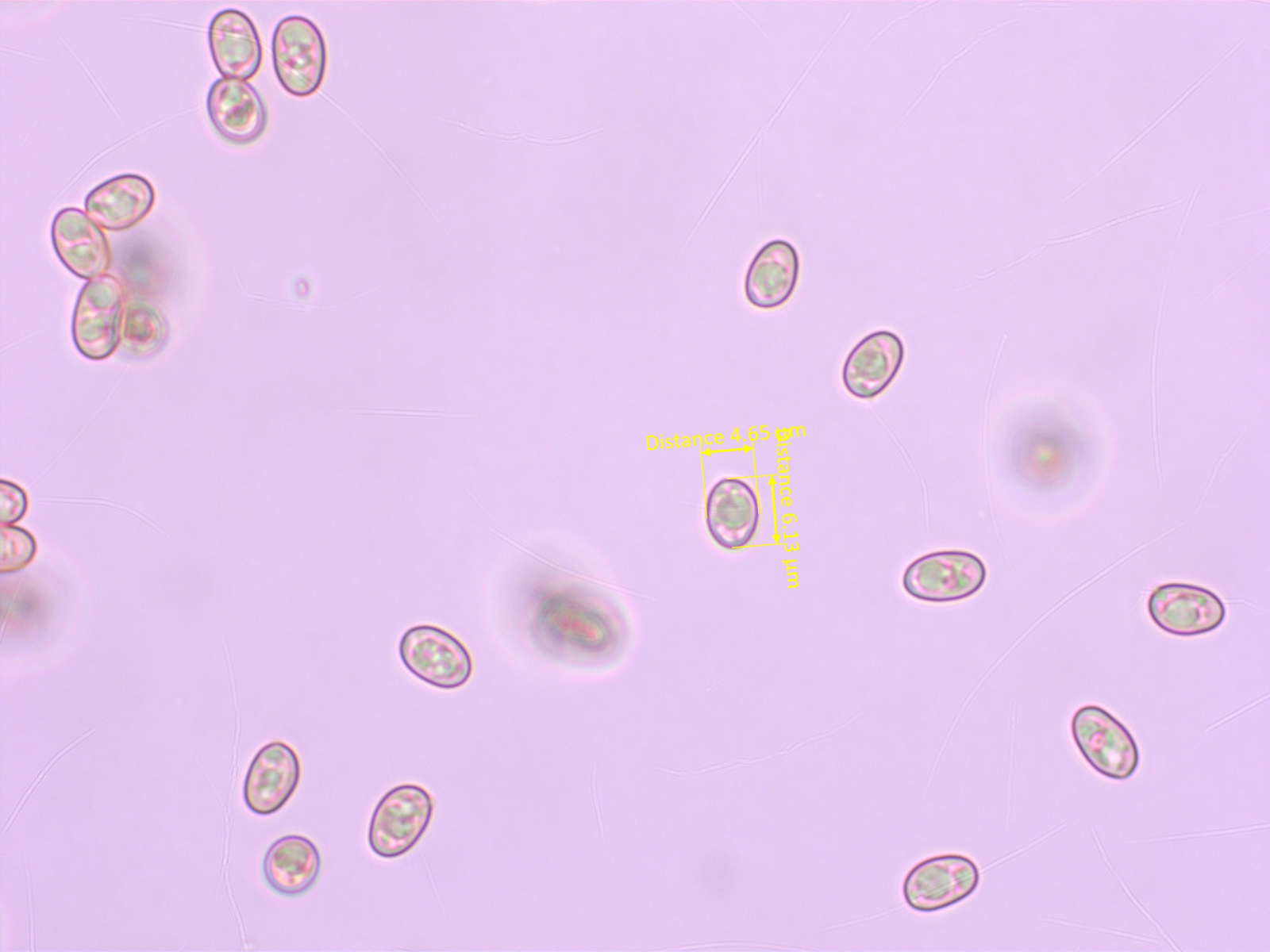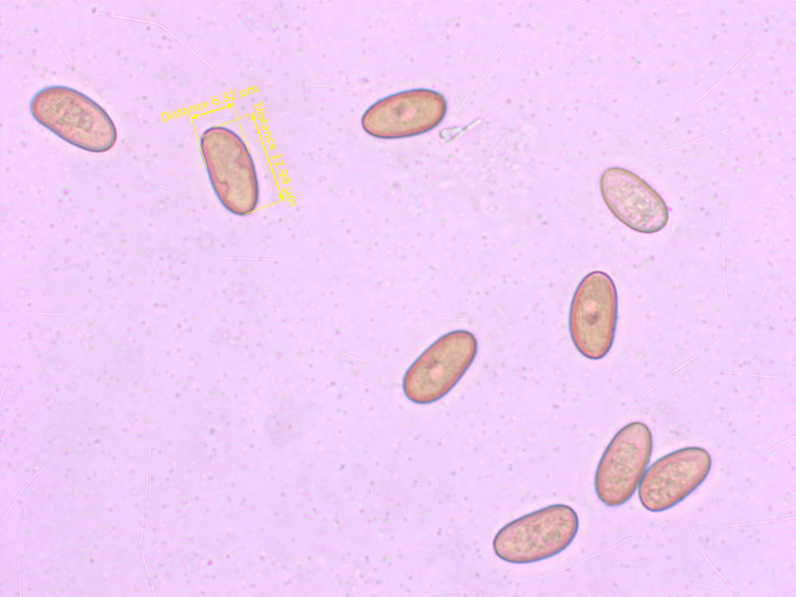 Sporenabdruck ist mir nicht geglückt, im Lamellenpräparat konnte ich aber einige Sporen finden.