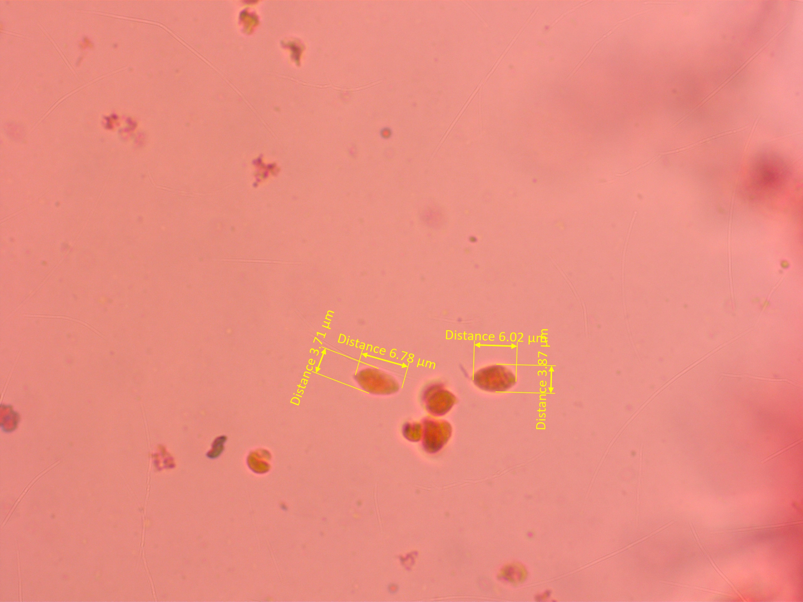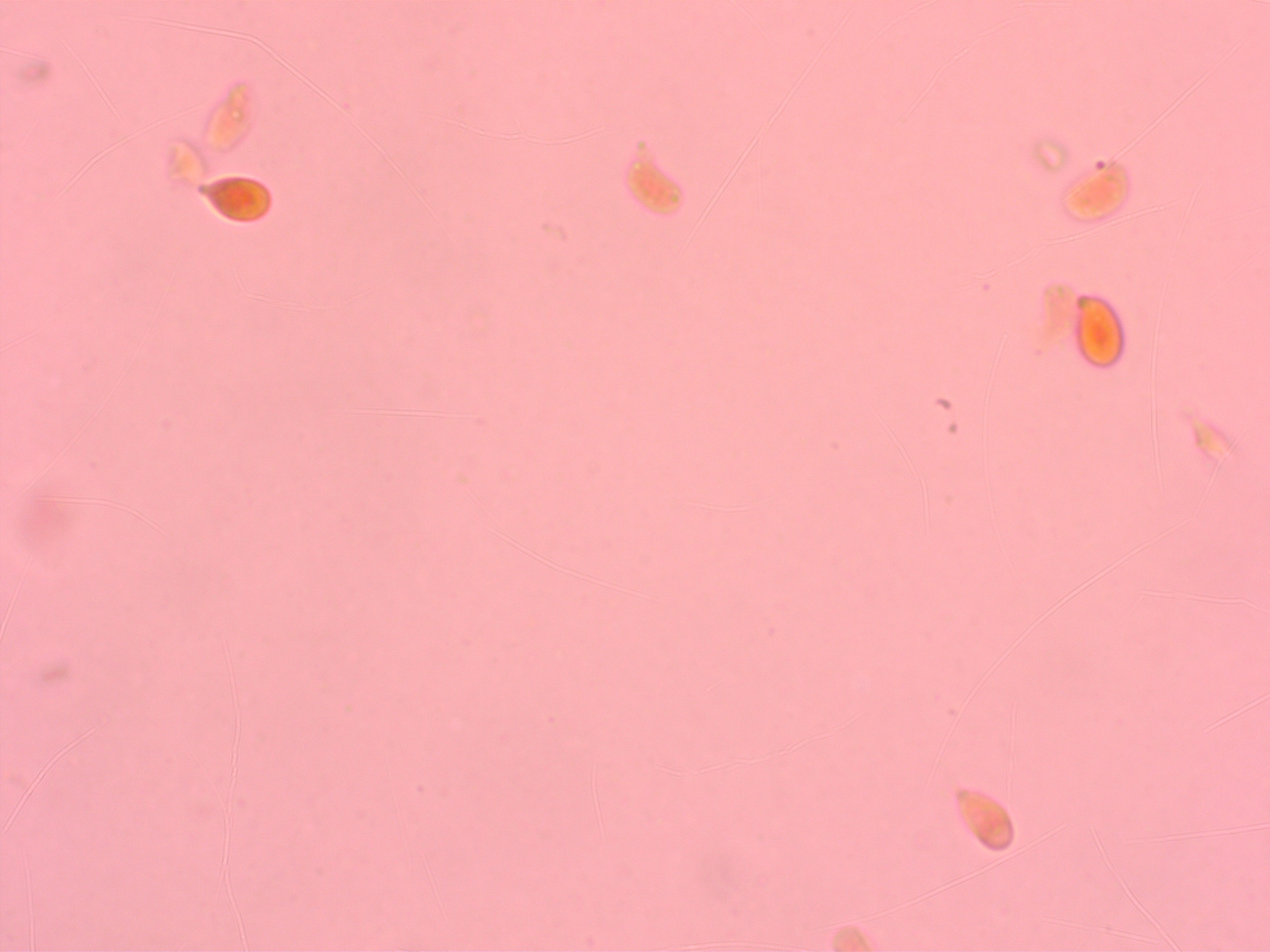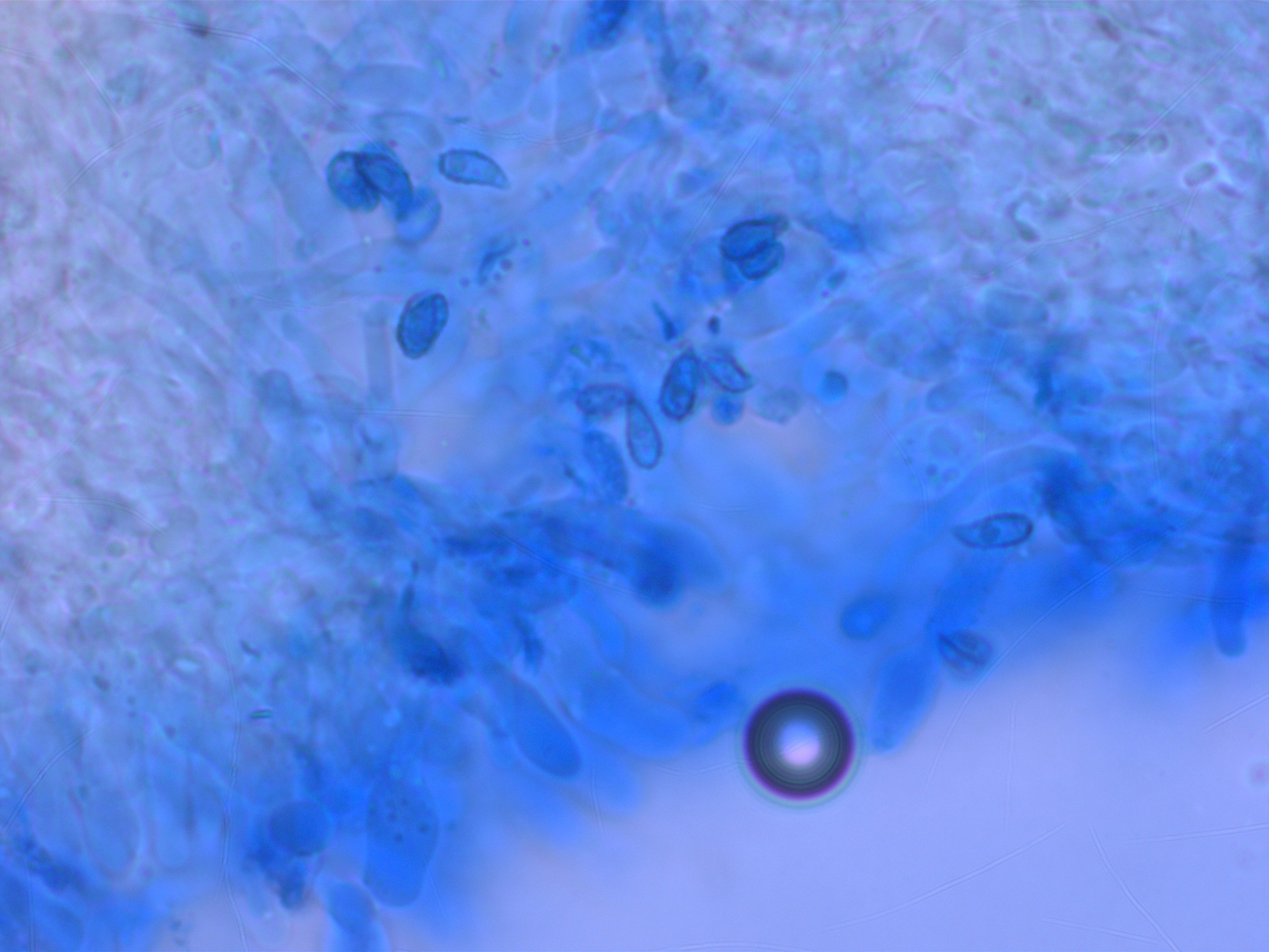 Sporenabdruck ist mir nicht geglückt, im Lamellenpräparat konnte ich aber einige Sporen finden.