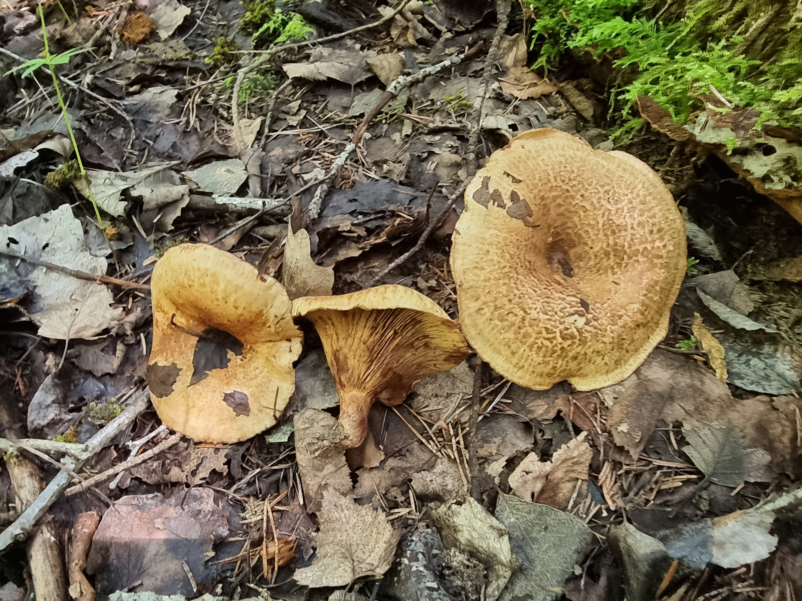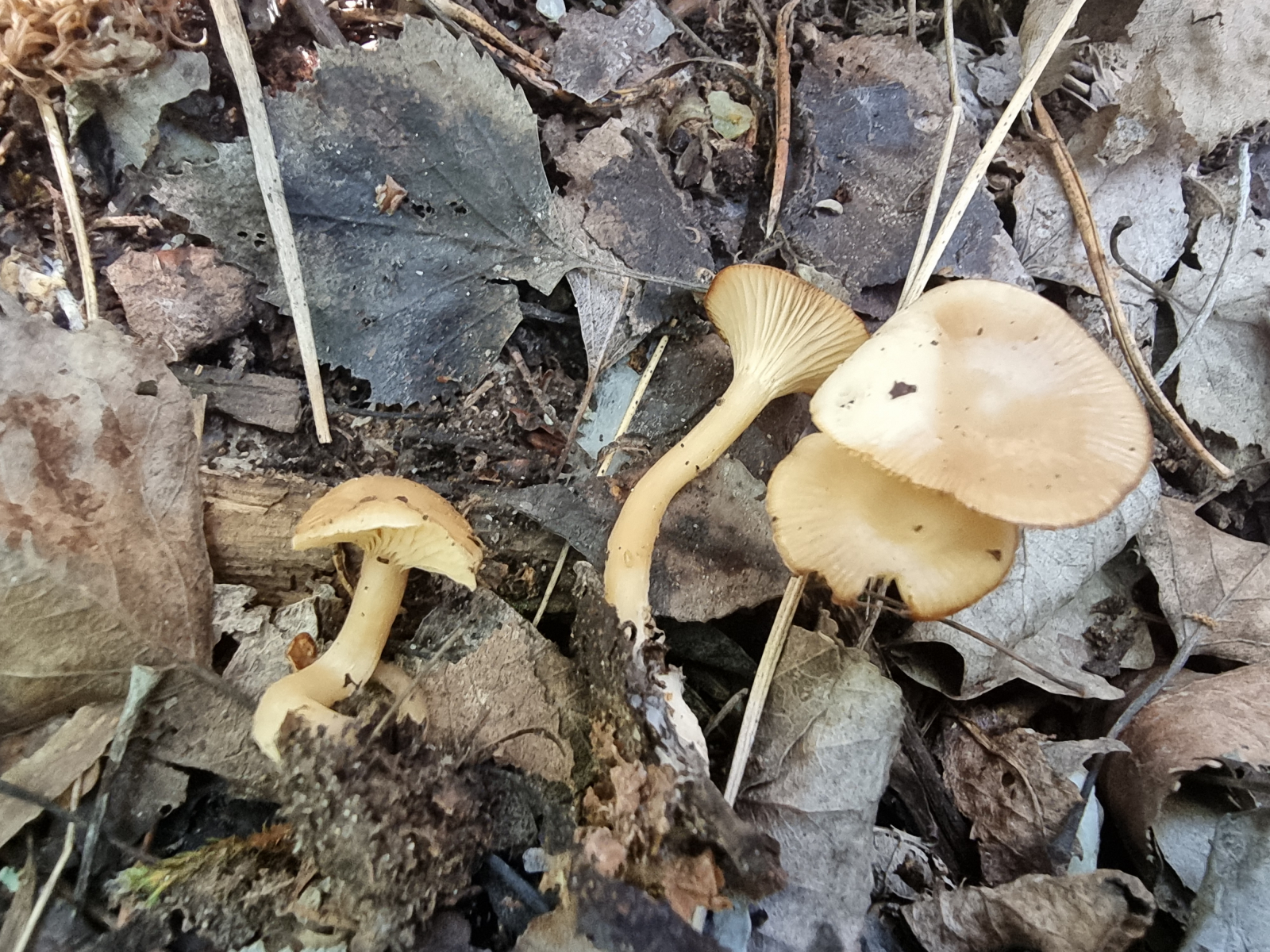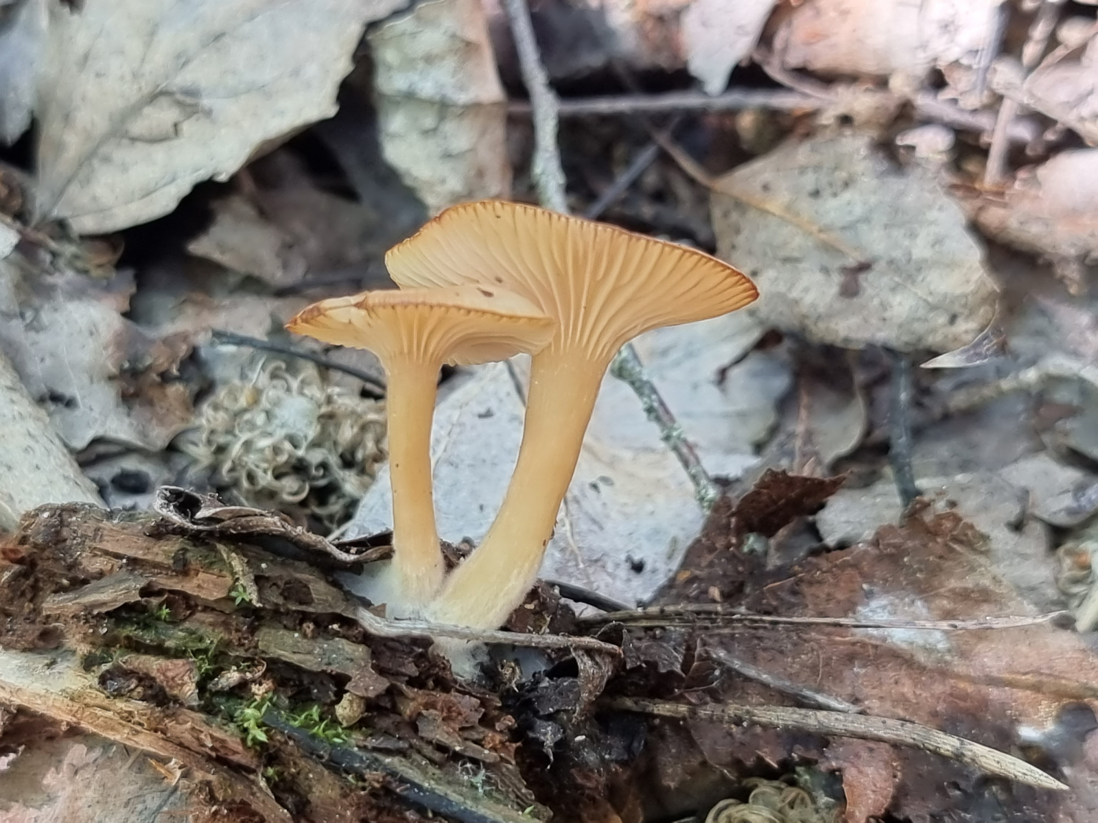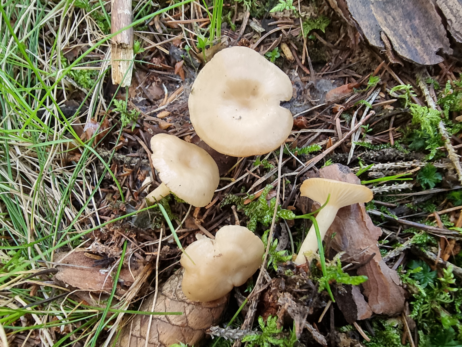 Diese kleinen, rüblingsartigen Pilzchen wüchsen terrestrisch bei Fichten. Kiefern waren auch in der Nähe.