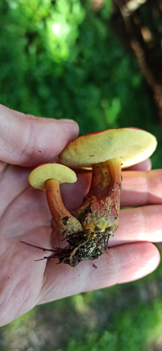 Rotstieliger Rübling? Wirkt aber größer und Lamellen passen farblich nicht... Der Buckel passt auch nicht. Eiche und Buche standen da rum. LG Wastl