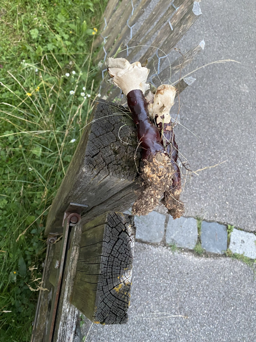 wir haben einen seltsamen Pilz(?) in unserem Garten gefunden (siehe Bilder).