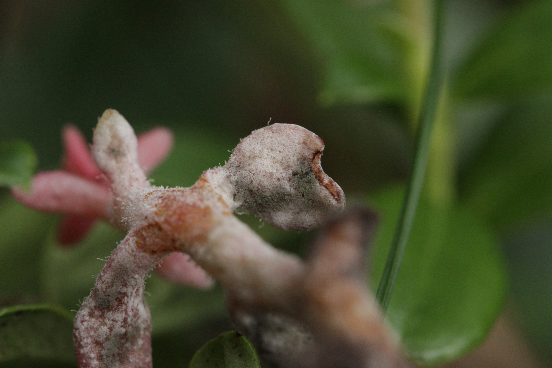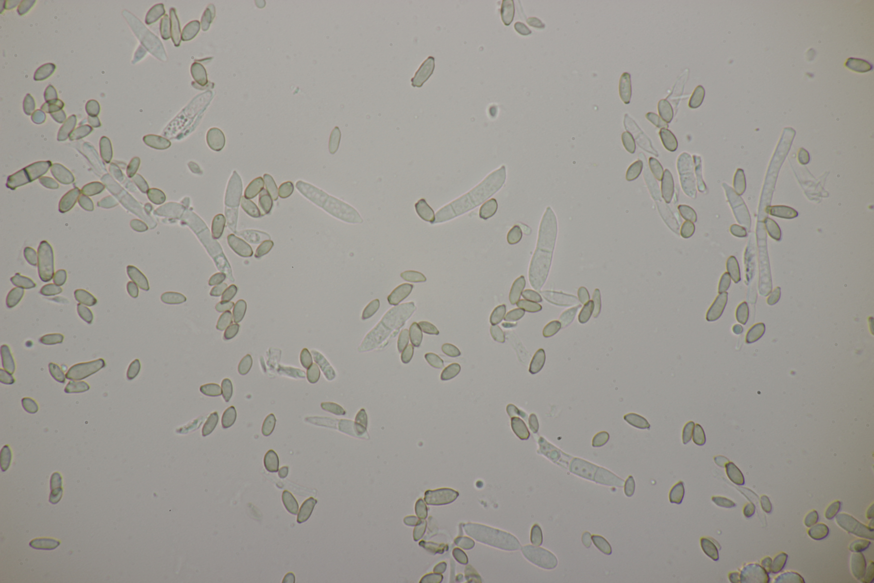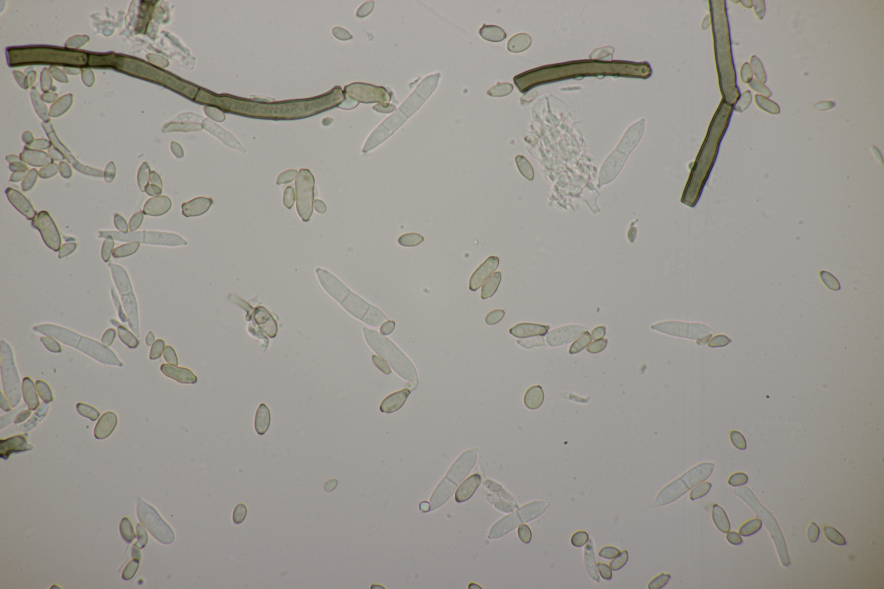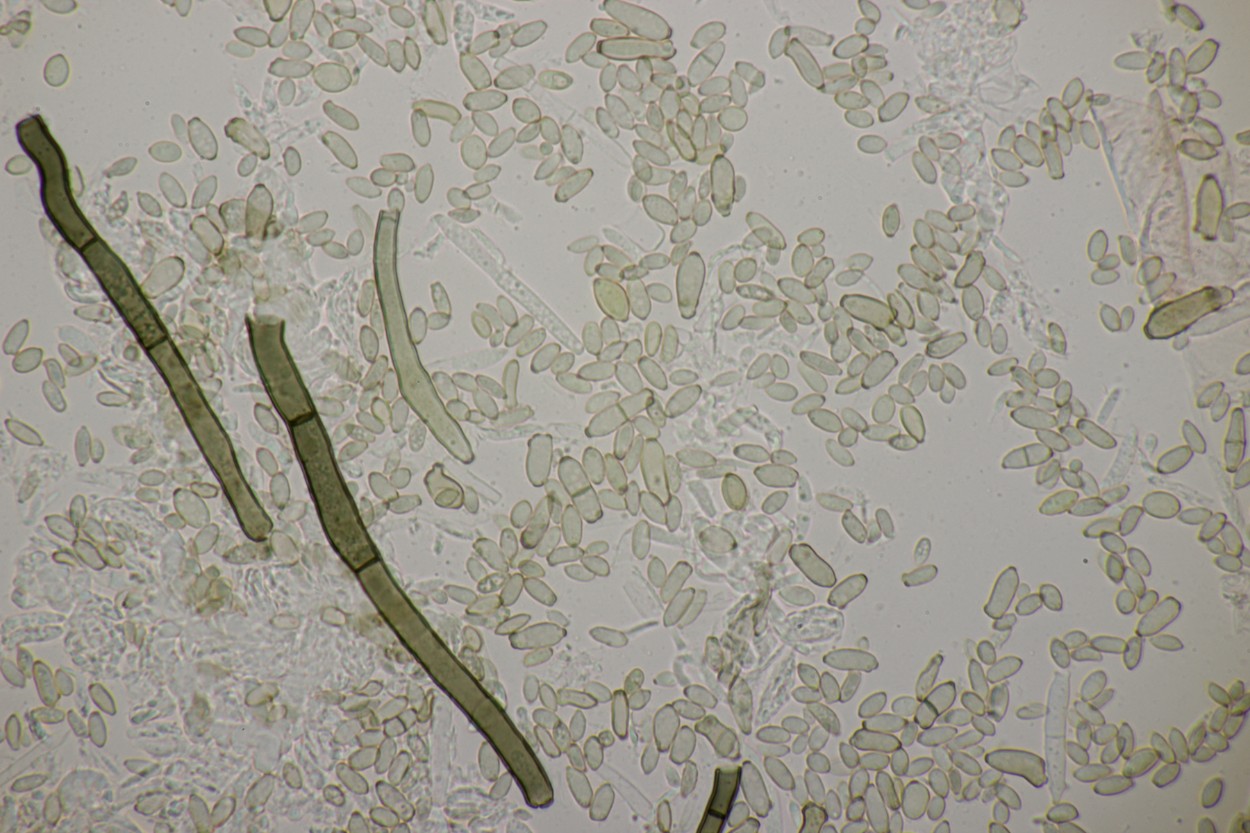 Hier mit Nr. 2: Cladosporium exobasidii var. exobasidii als Hyperparasiten