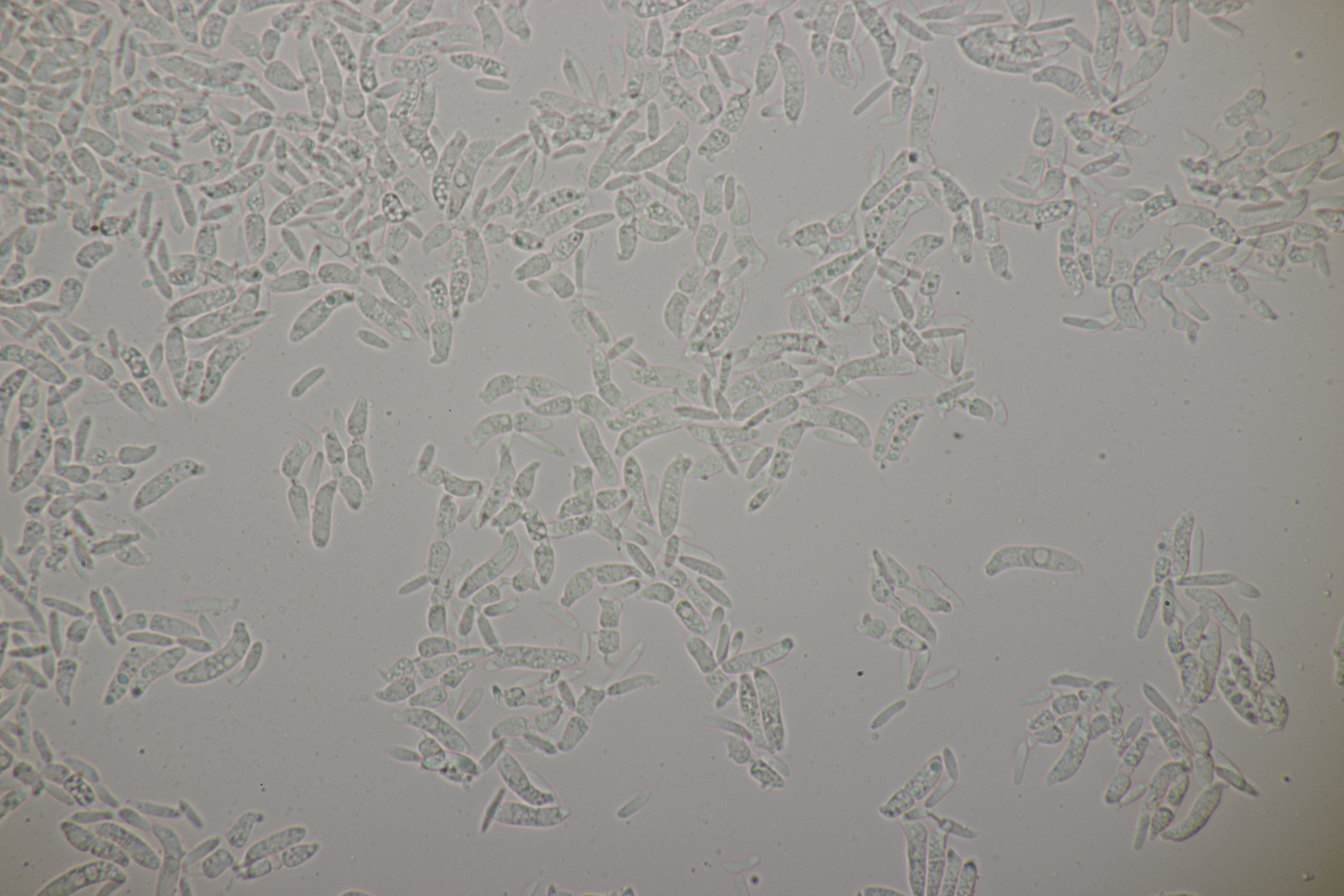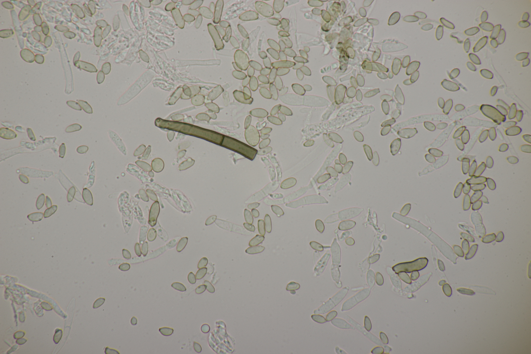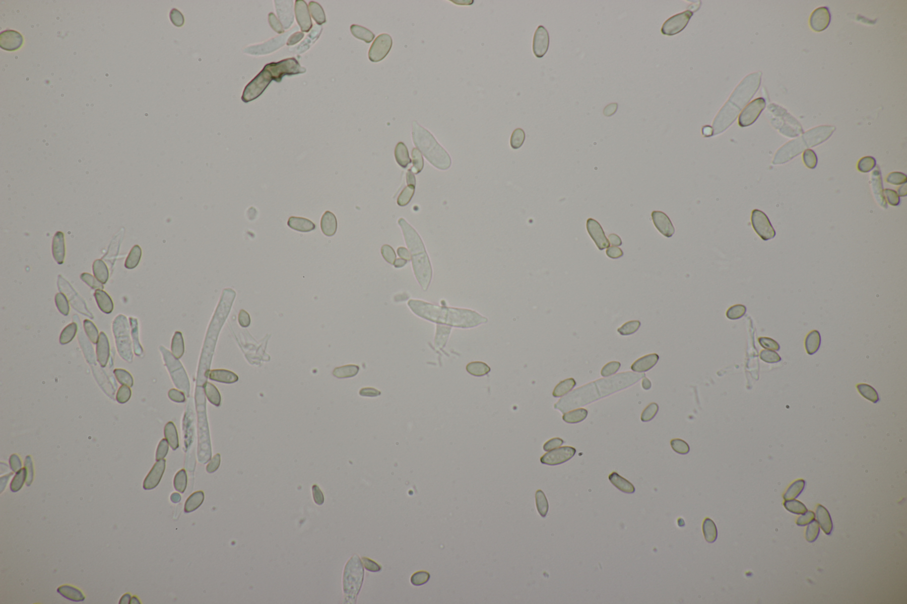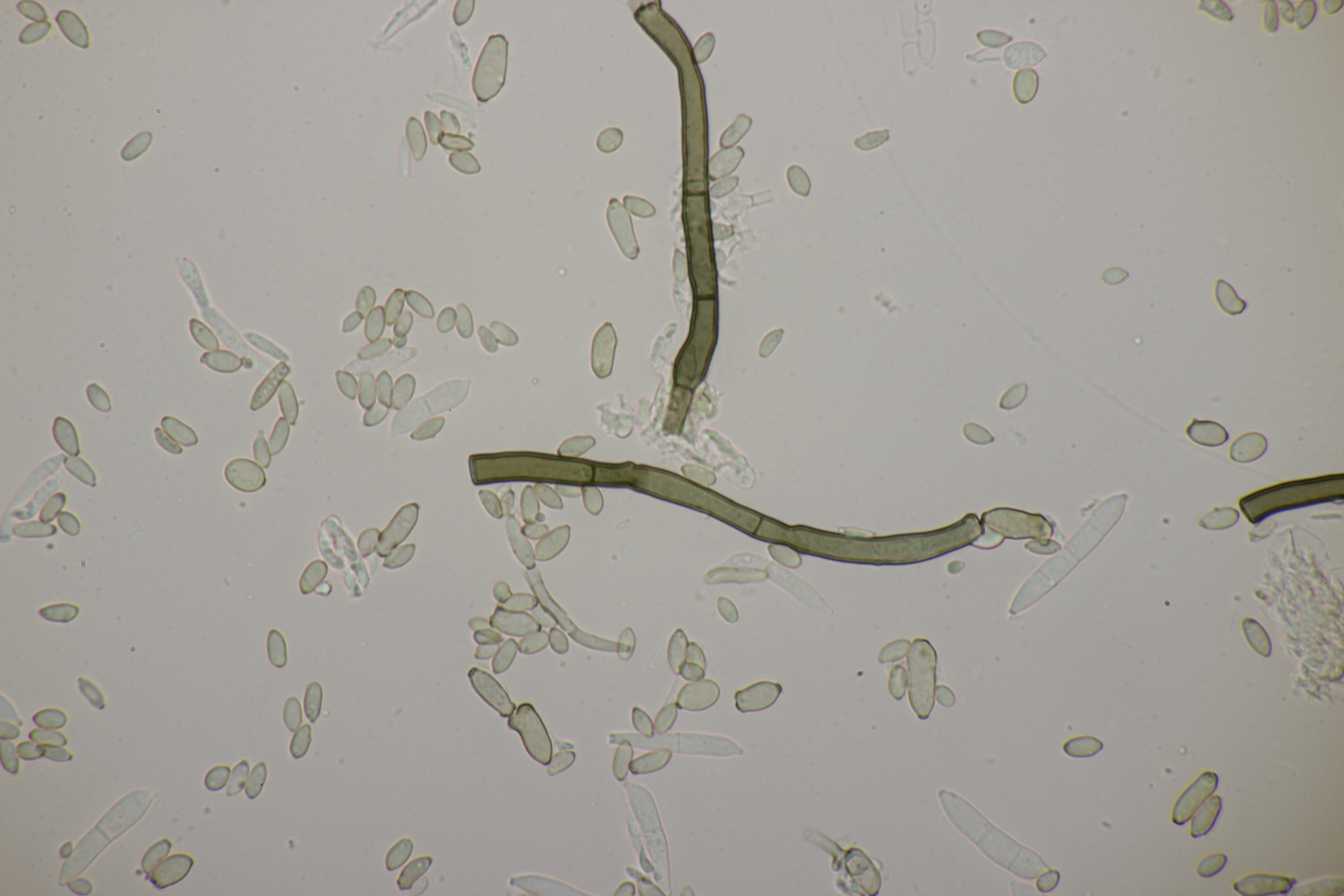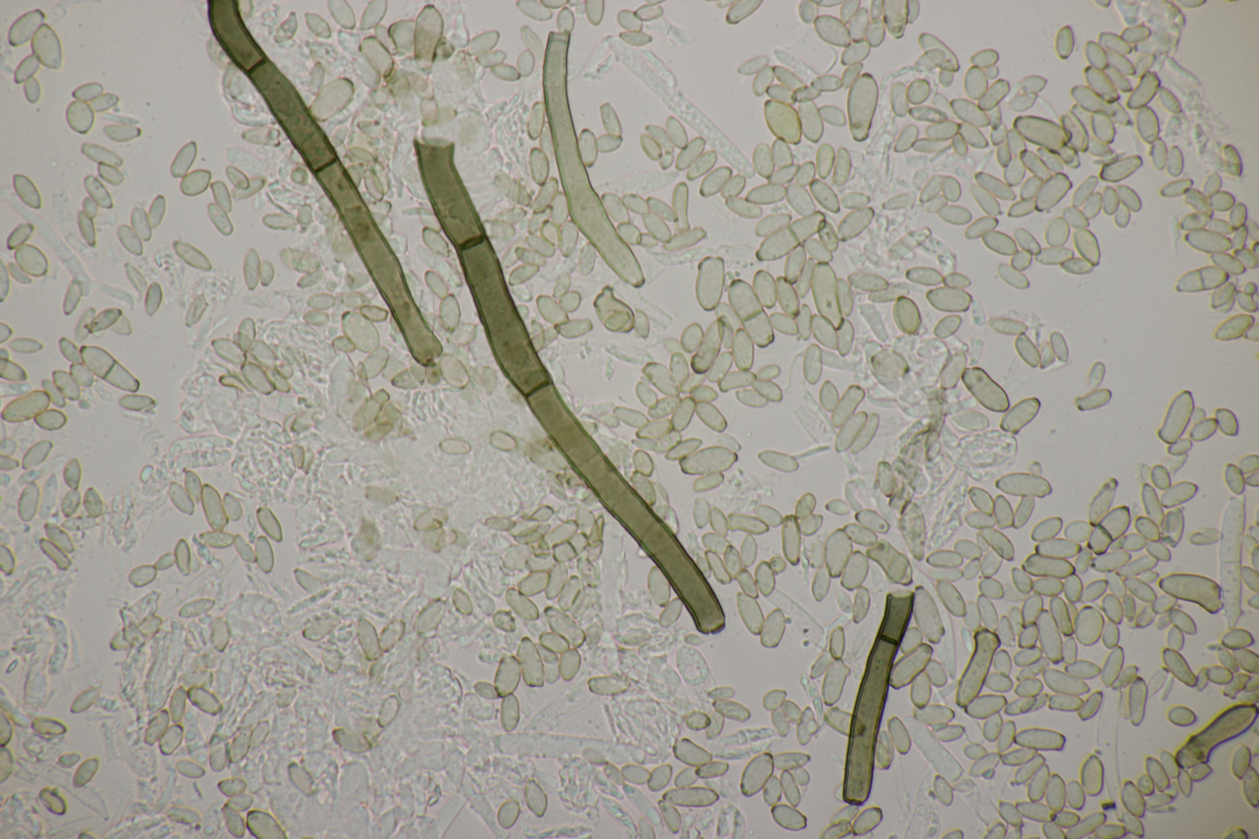 Hier mit Nr. 2: Cladosporium exobasidii var. exobasidii als Hyperparasiten