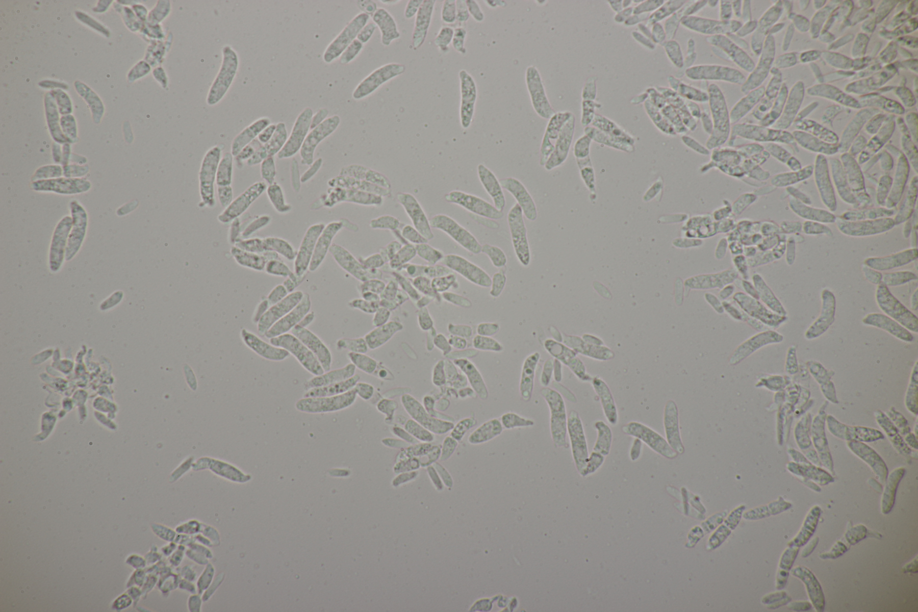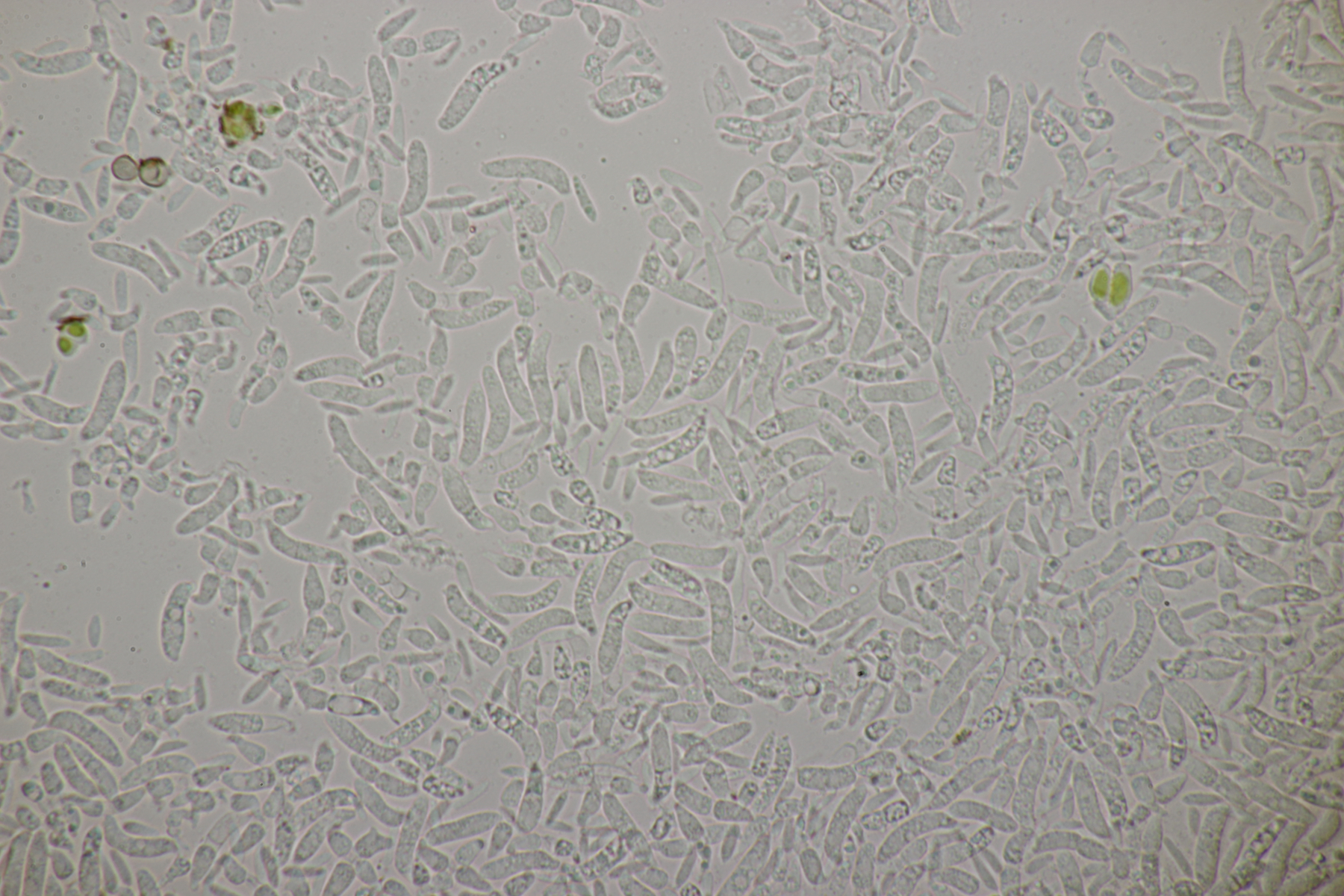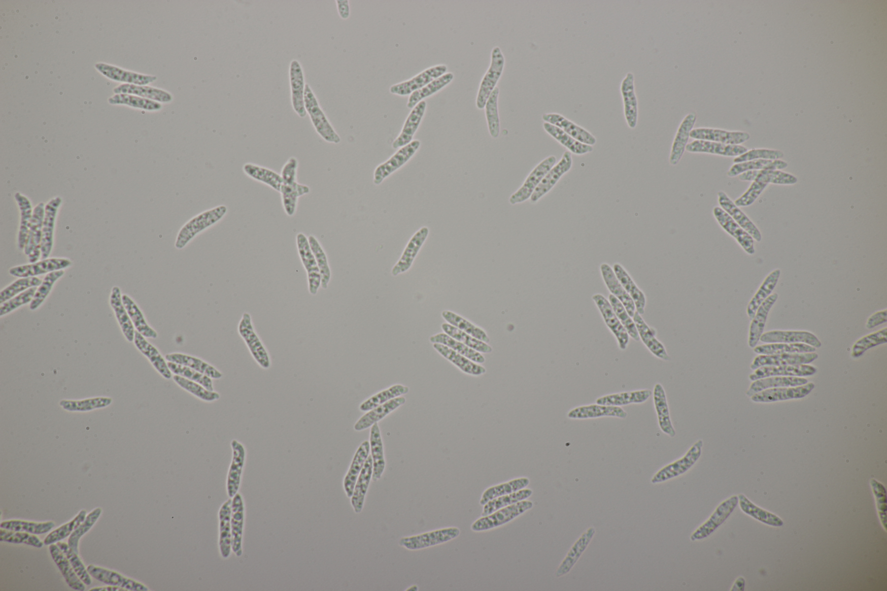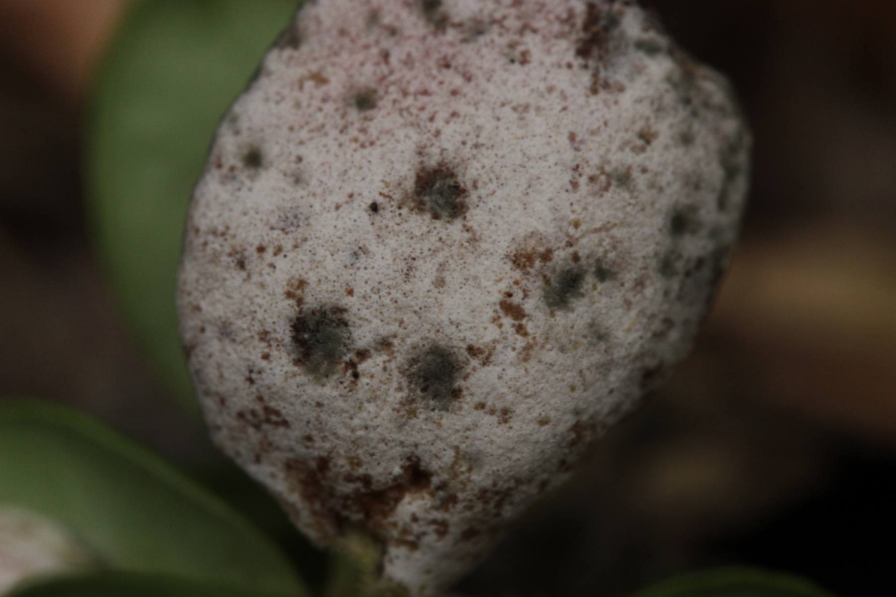 Hier mit Nr. 2: Cladosporium exobasidii var. exobasidii als Hyperparasiten