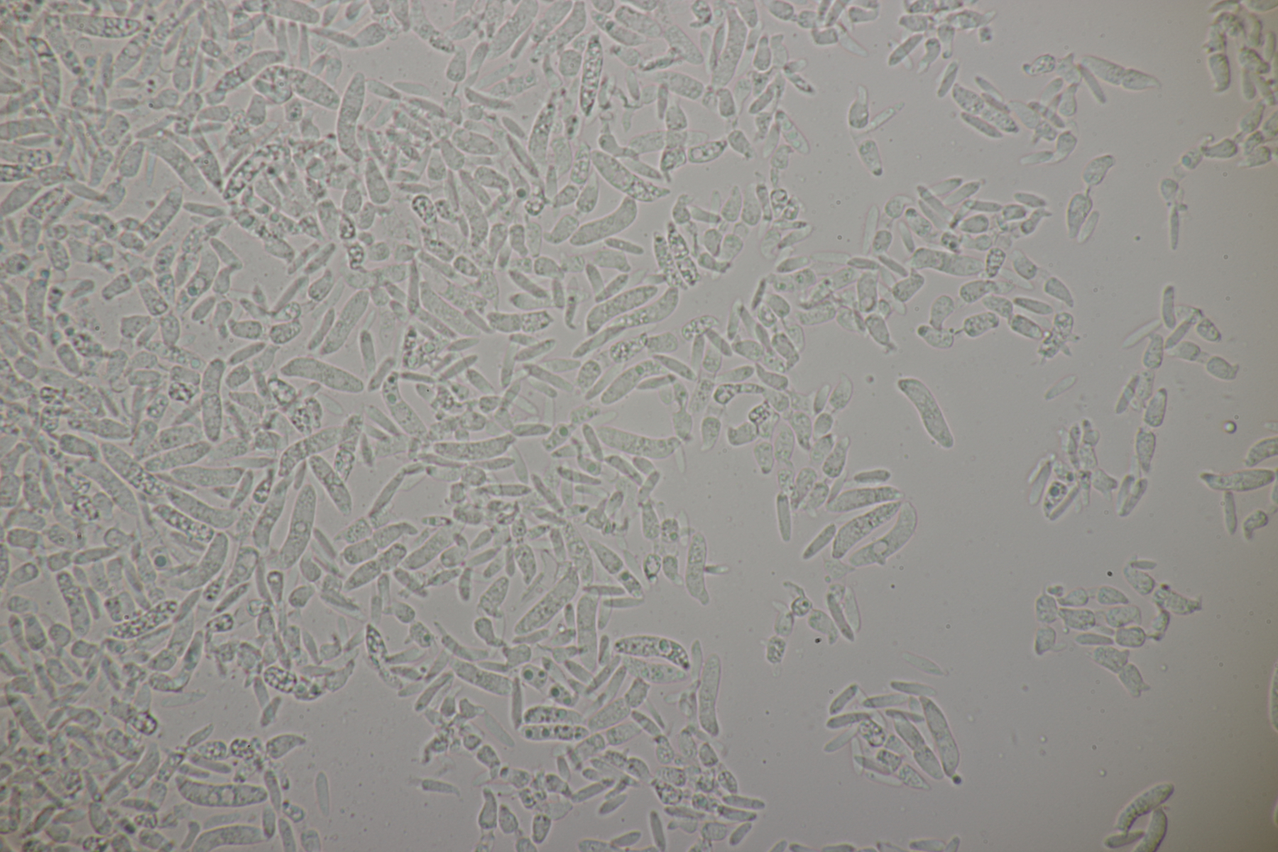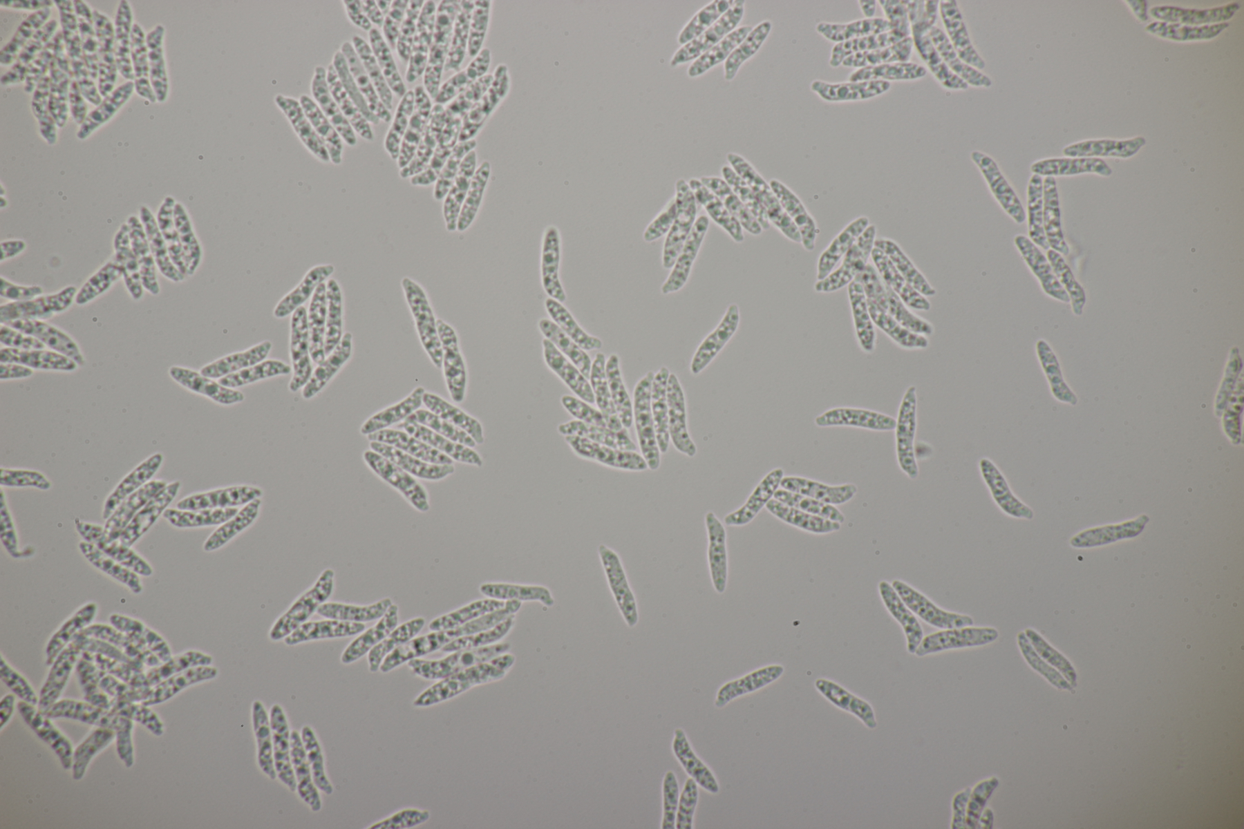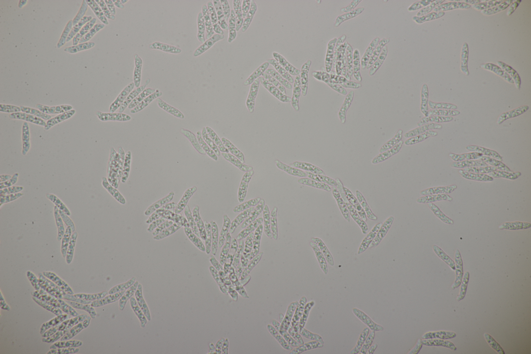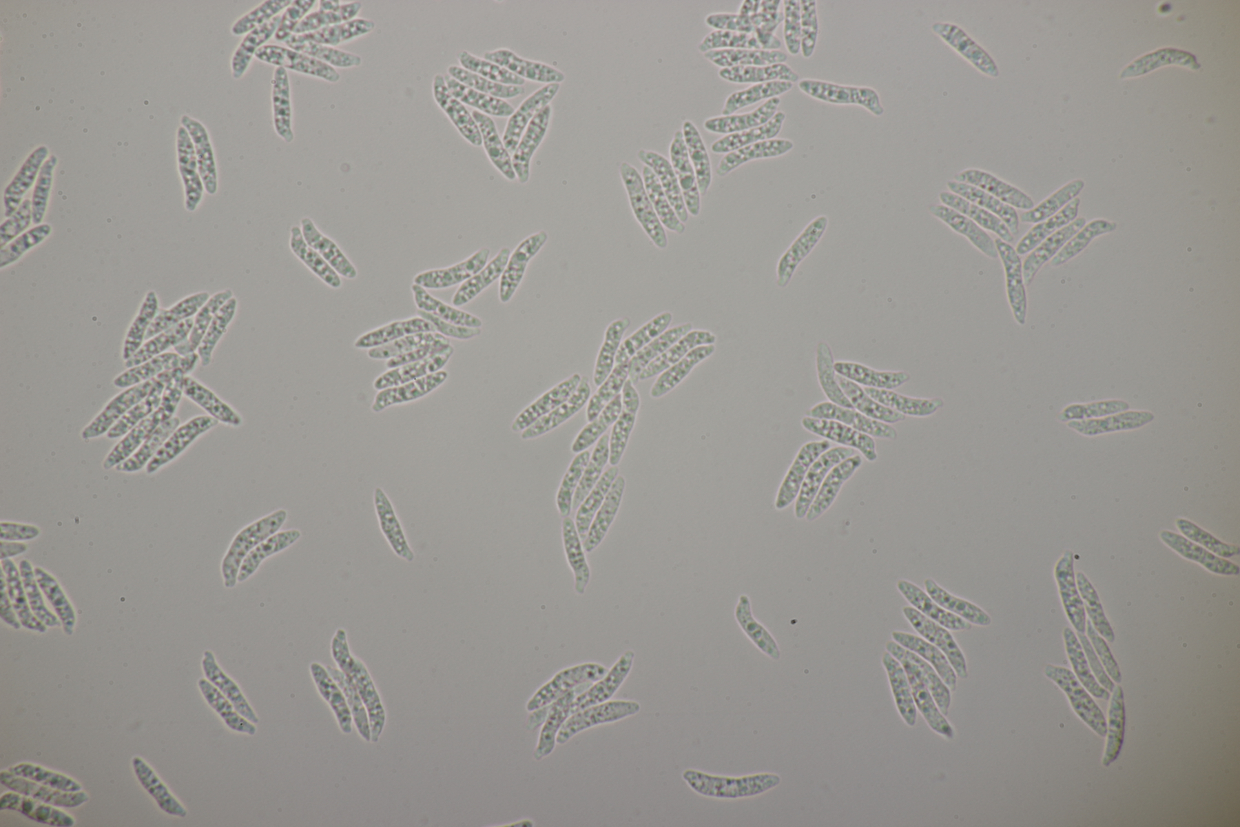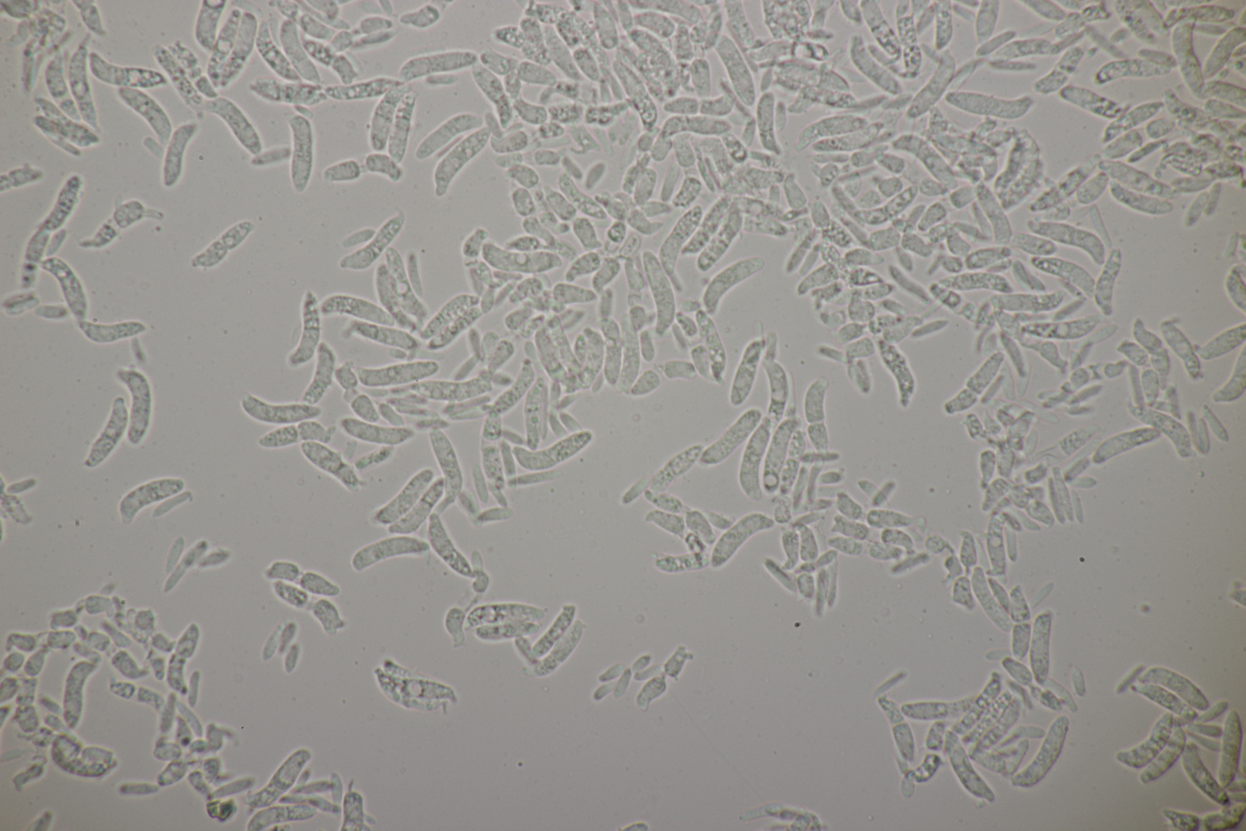 Hier mit Nr. 2: Cladosporium exobasidii var. exobasidii als Hyperparasiten
