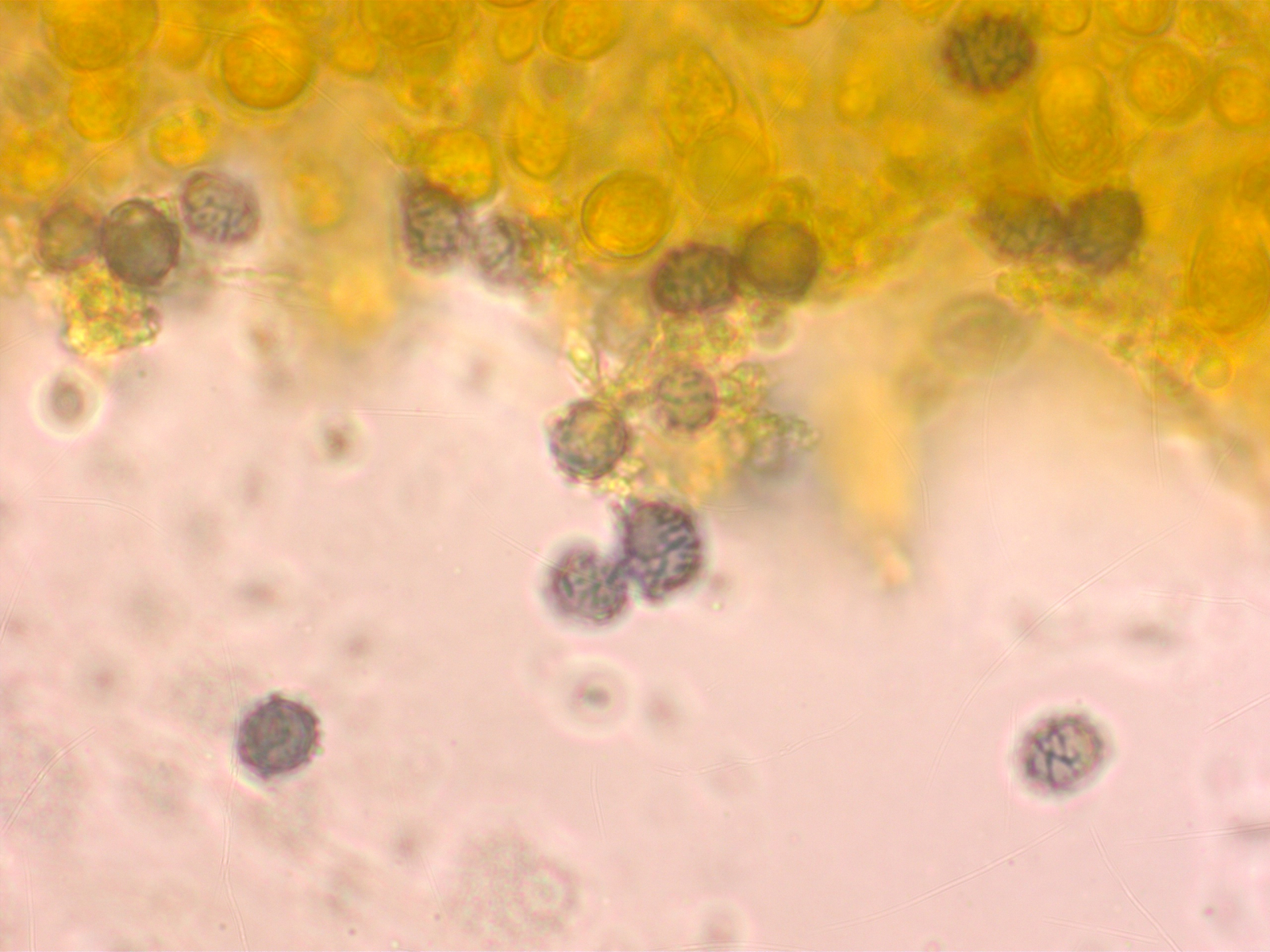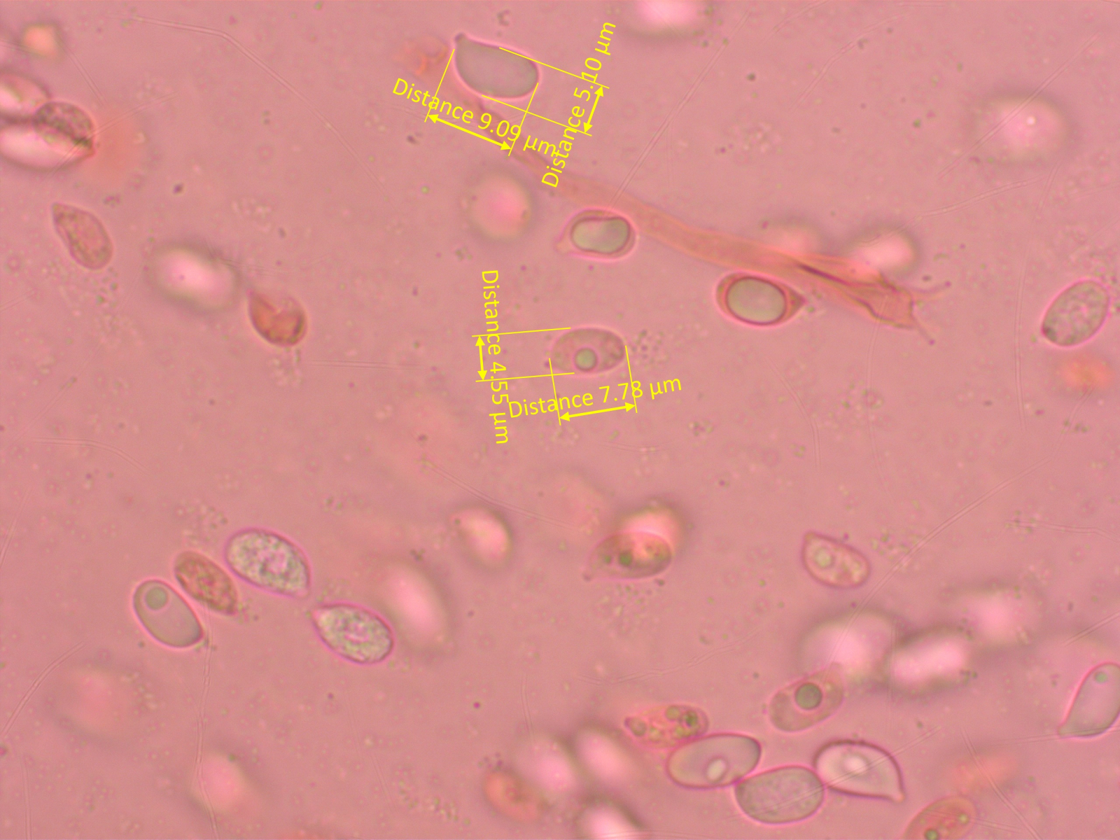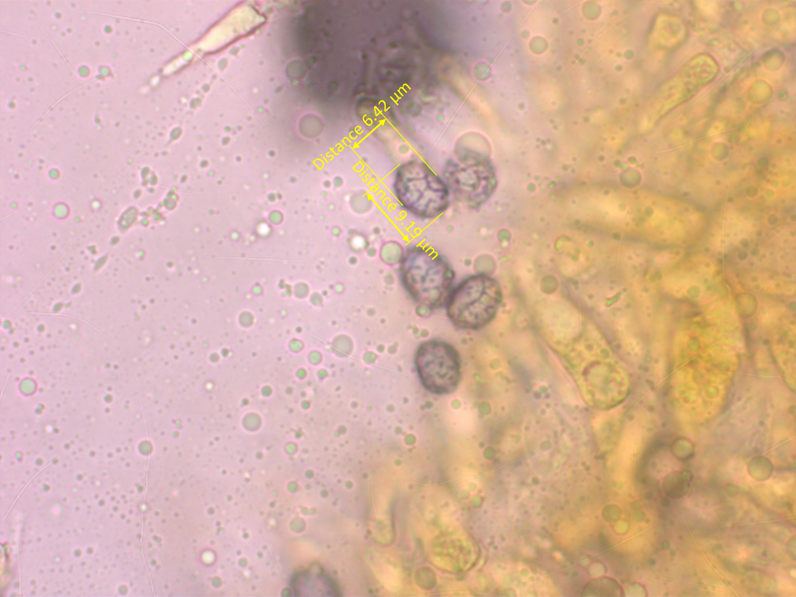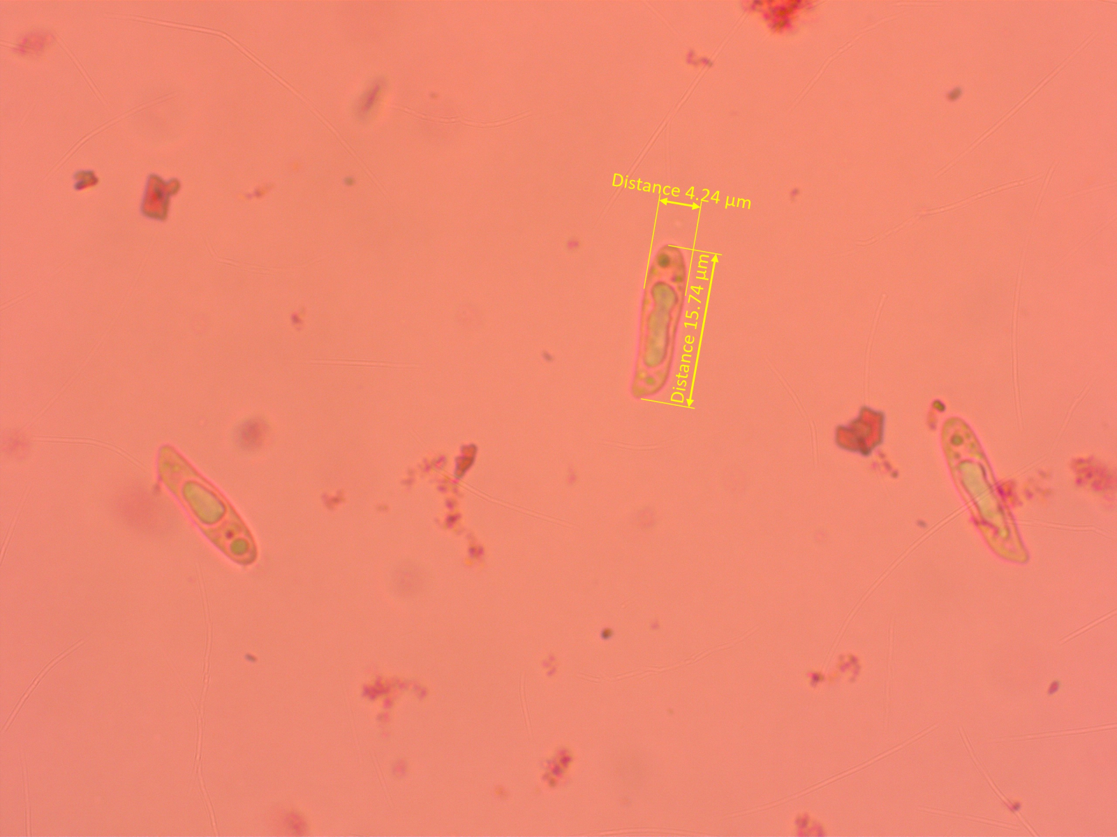 Winzige Sporen, unter 4 µm lang.