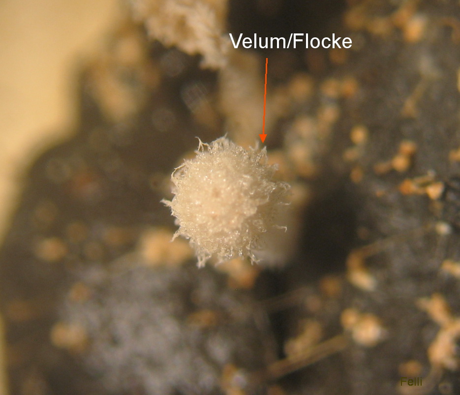 Die Sporen waren hyalin, mit Keimporus und Sterigmenrest oder evtl. schon auskeimend