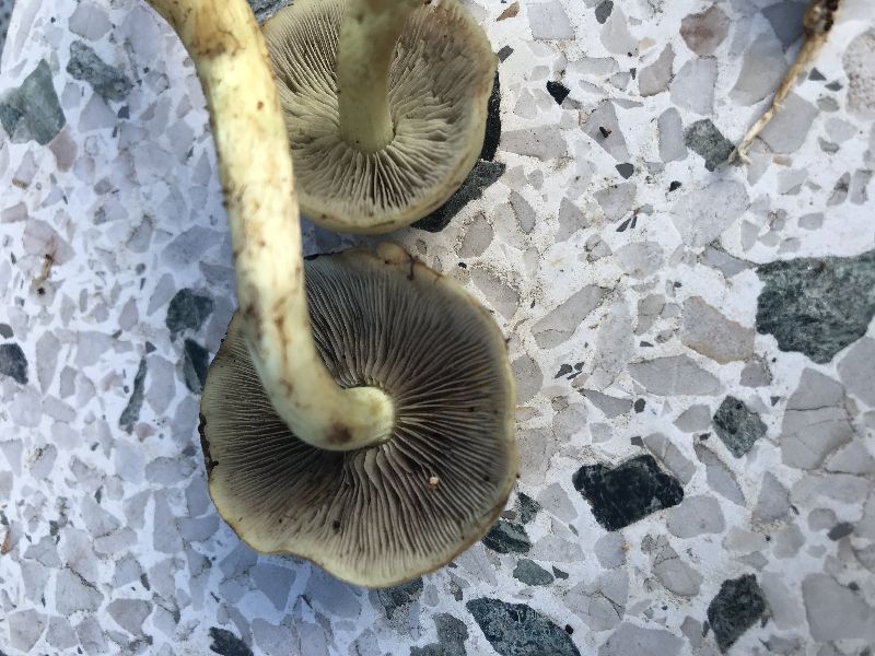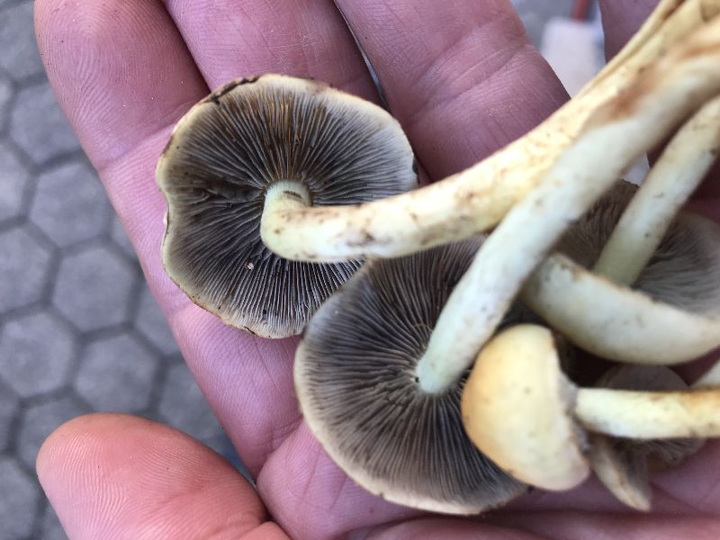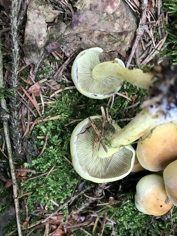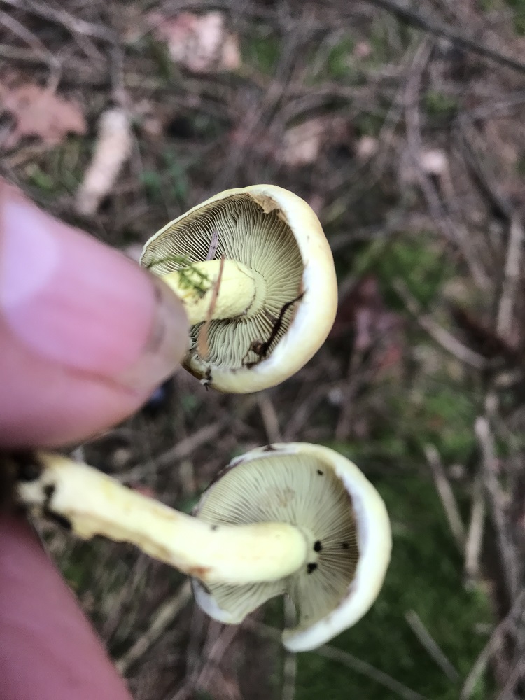 Bei Sporenreife überlagert das violett-schwarze Sporenpulver die grüngelbe Lamellenfarbe