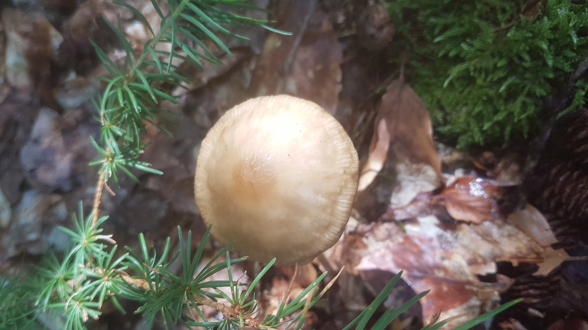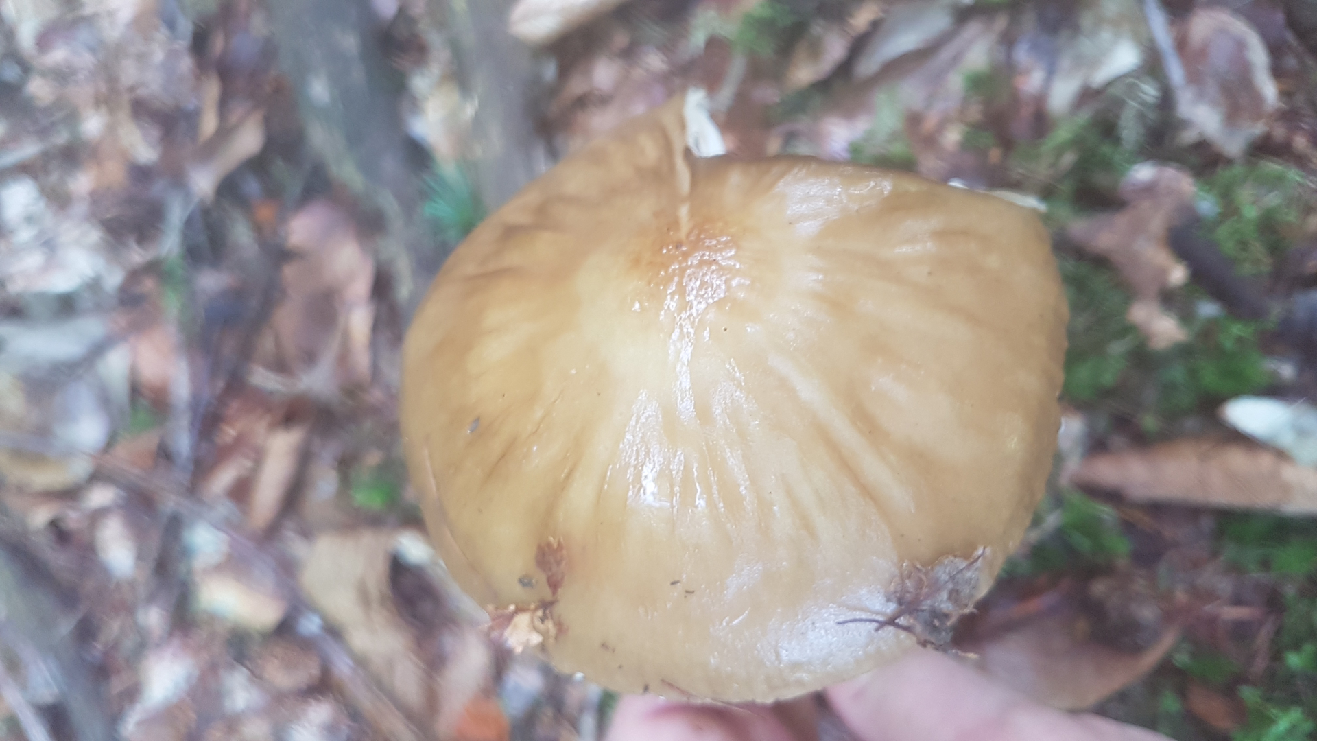 Recht schleimige Huthaut, Hutrand wirkt gerieft, Hut in der Mitte mit kleinem Buckel