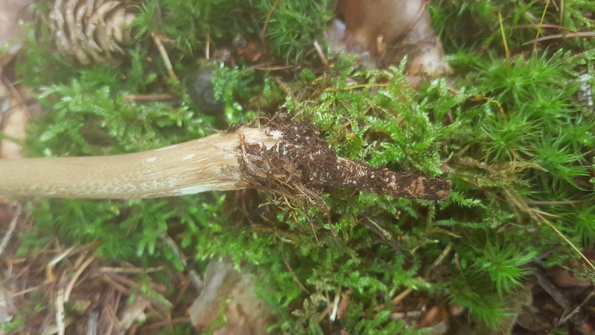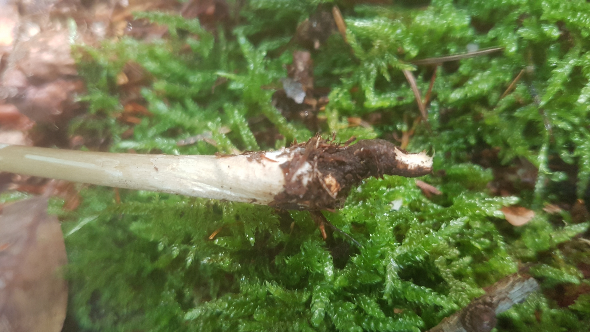 Auffällig der wurzelähnliche, unterirdische Fortsatz des Stiels
