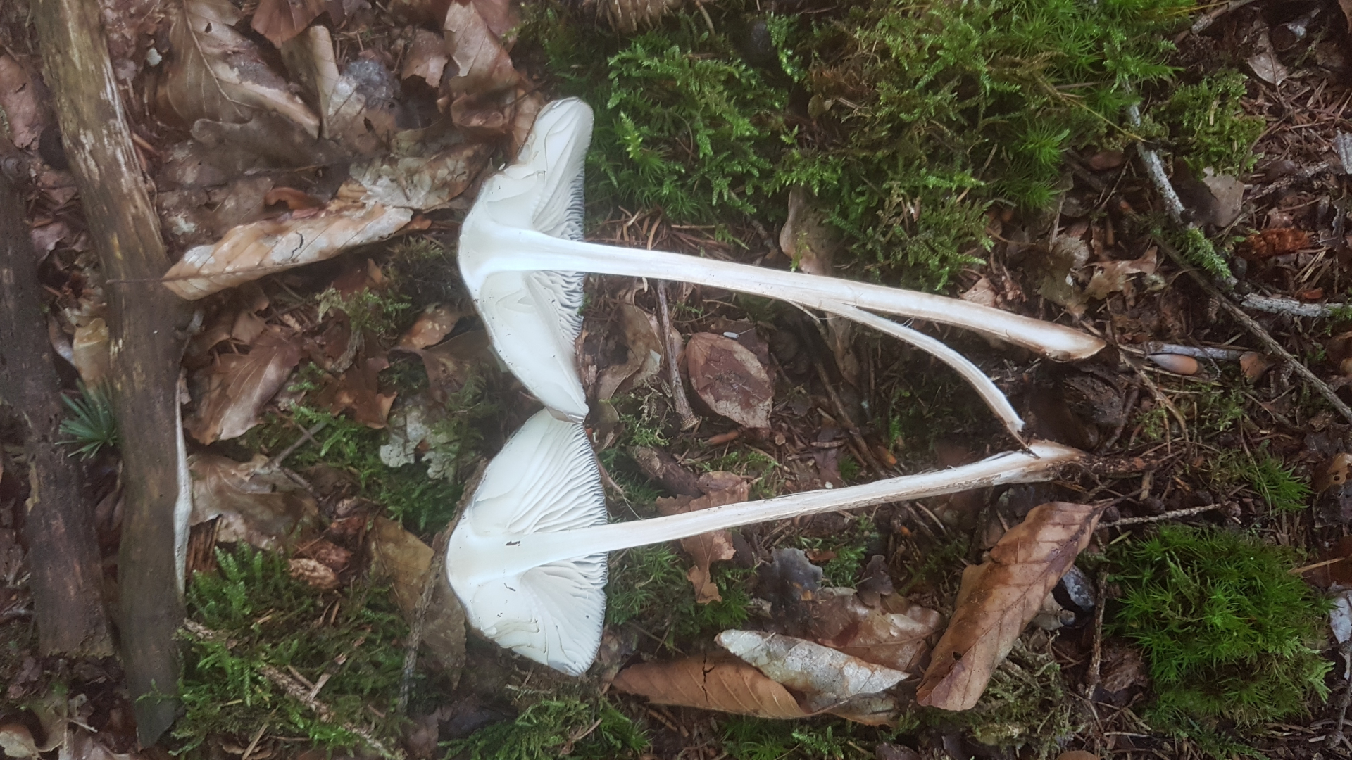 Auffällig der wurzelähnliche, unterirdische Fortsatz des Stiels