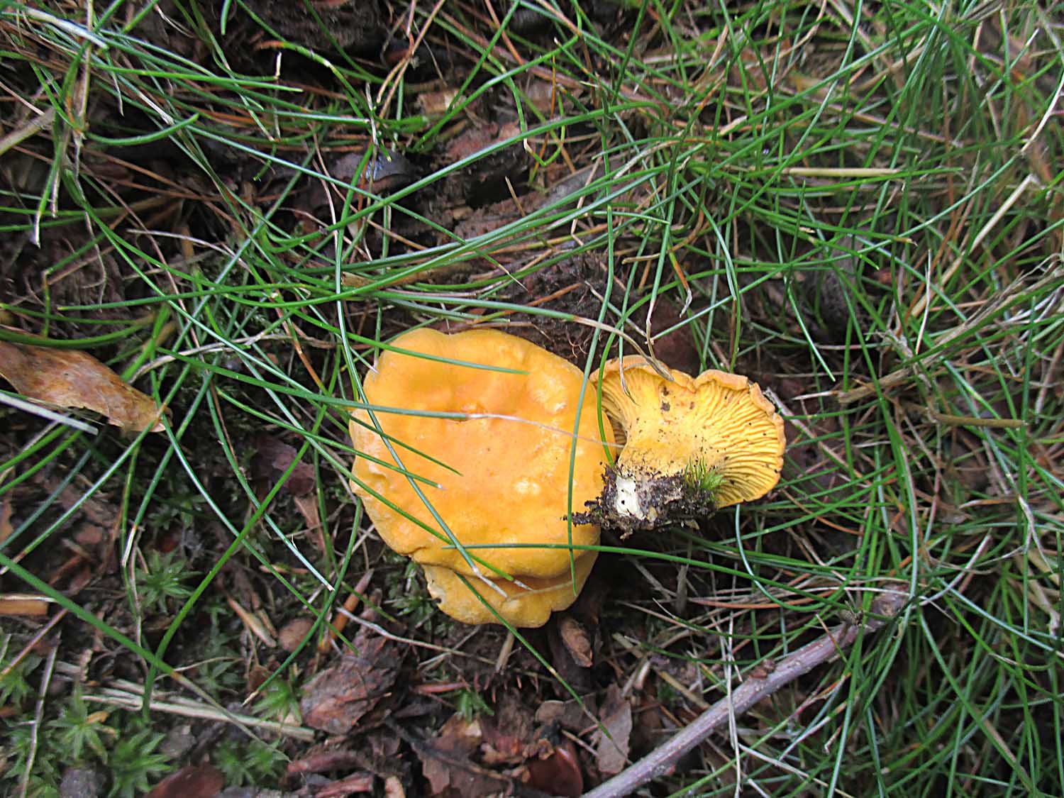 Im Moos und im Gras haben sich wieder einige Grüppchen Pfifferlinge hervorgetraut.