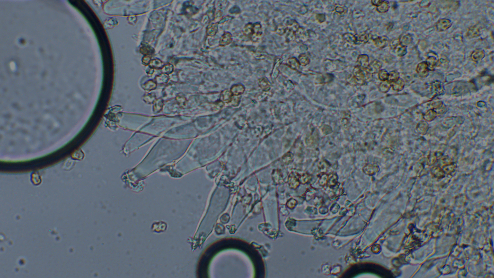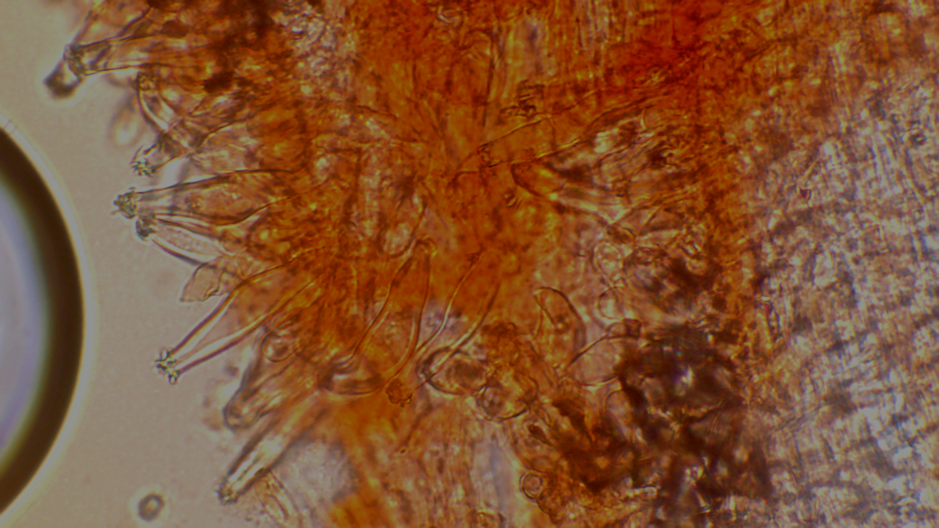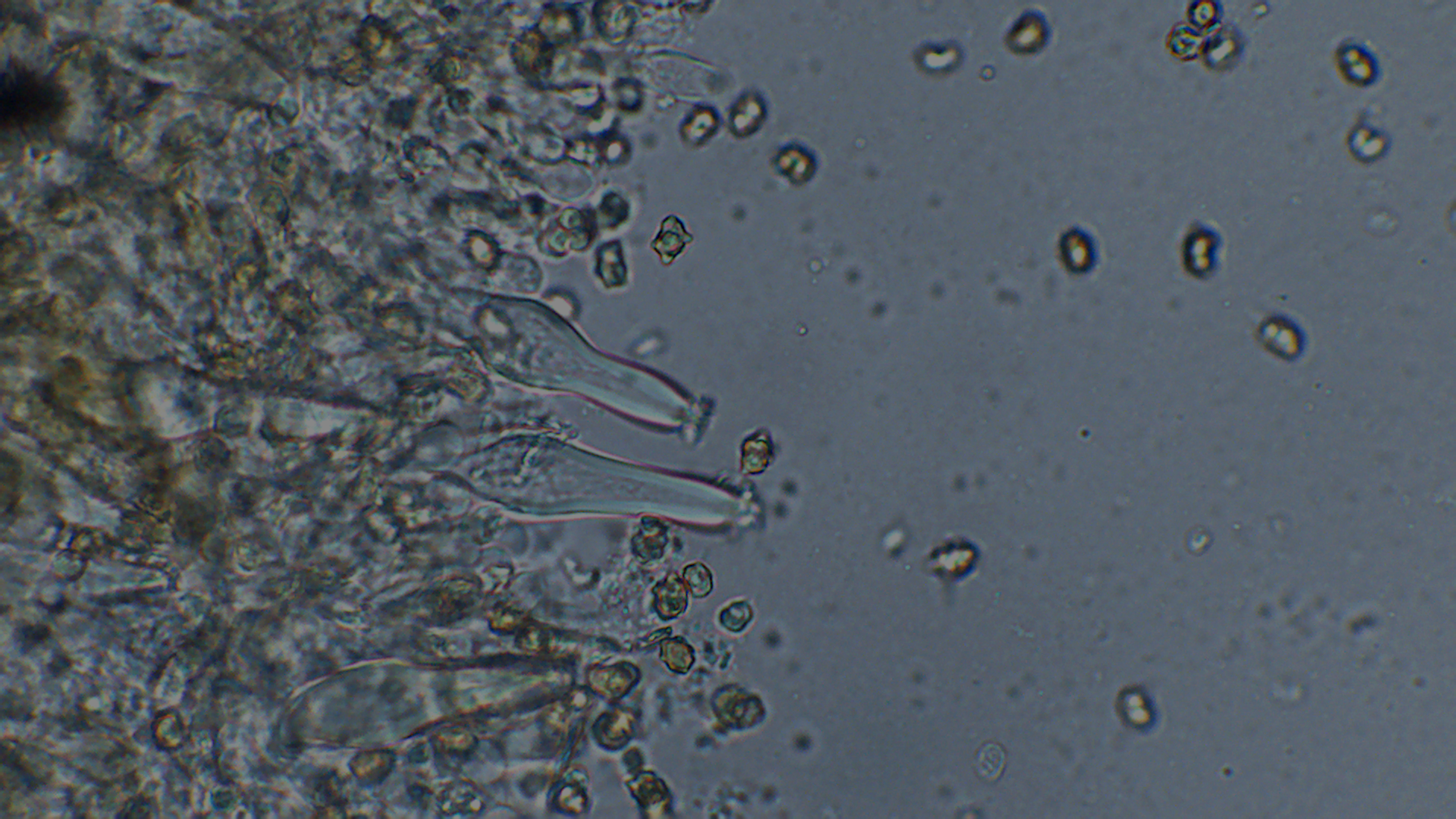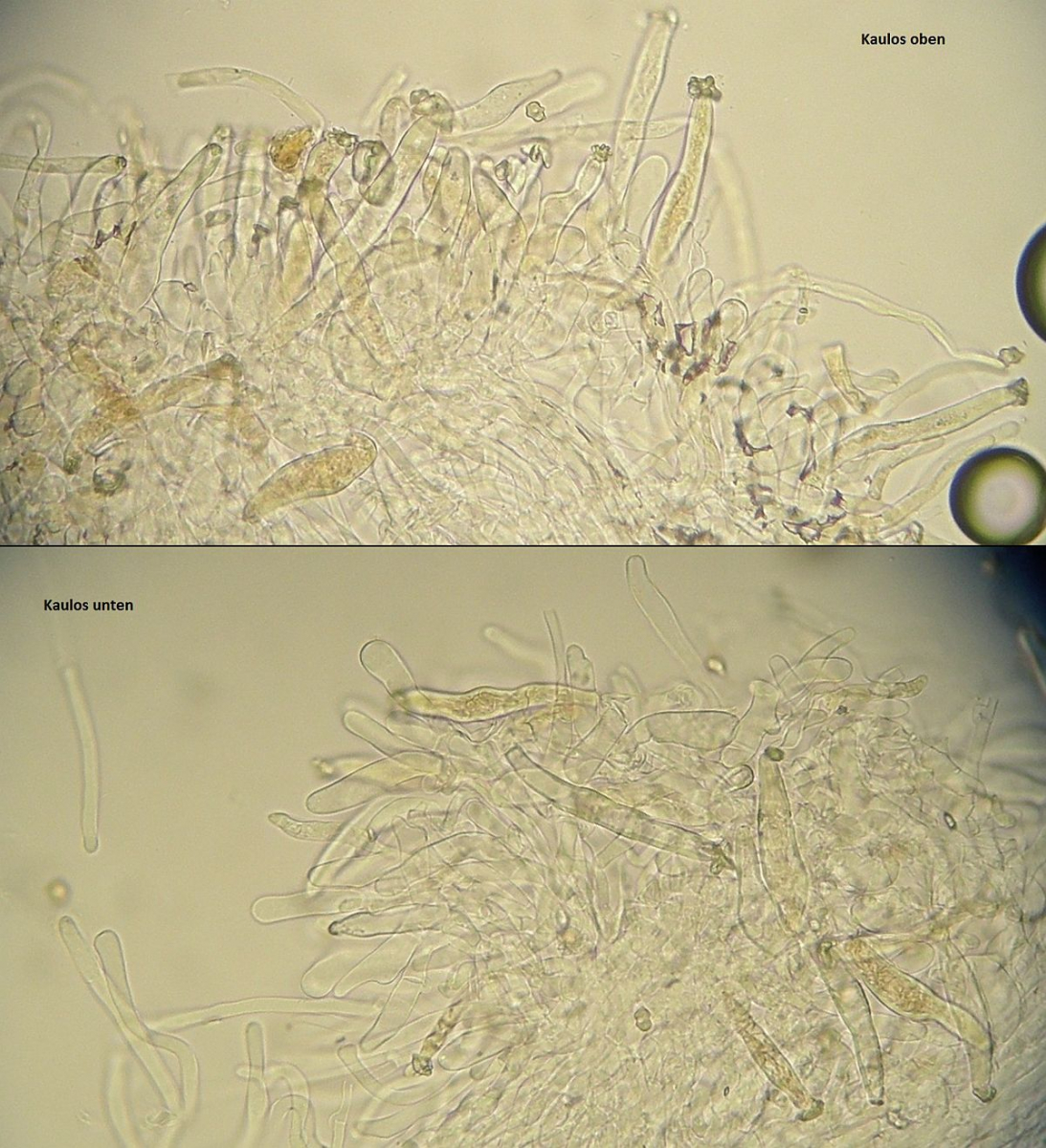Der Stiel war ganz bereift, auch wenn im unteren Bereich nur noch vereinzelt Kaulozystiden zu finden waren.