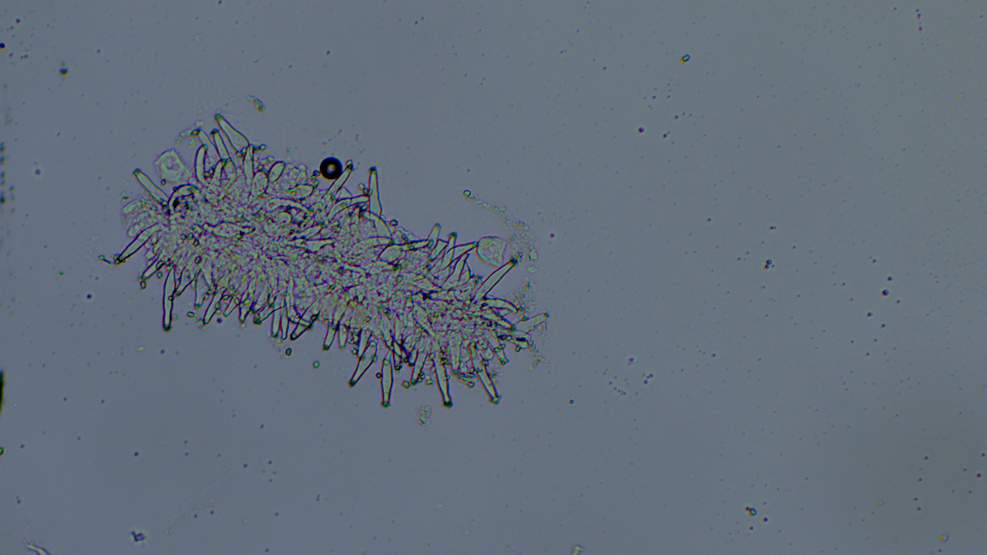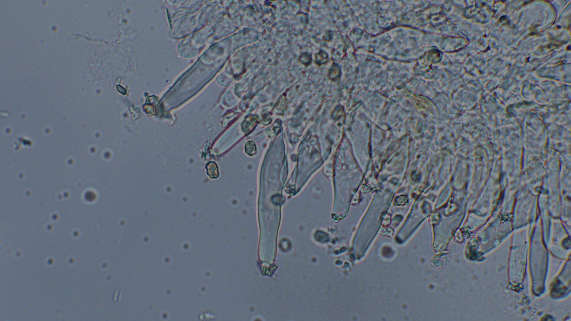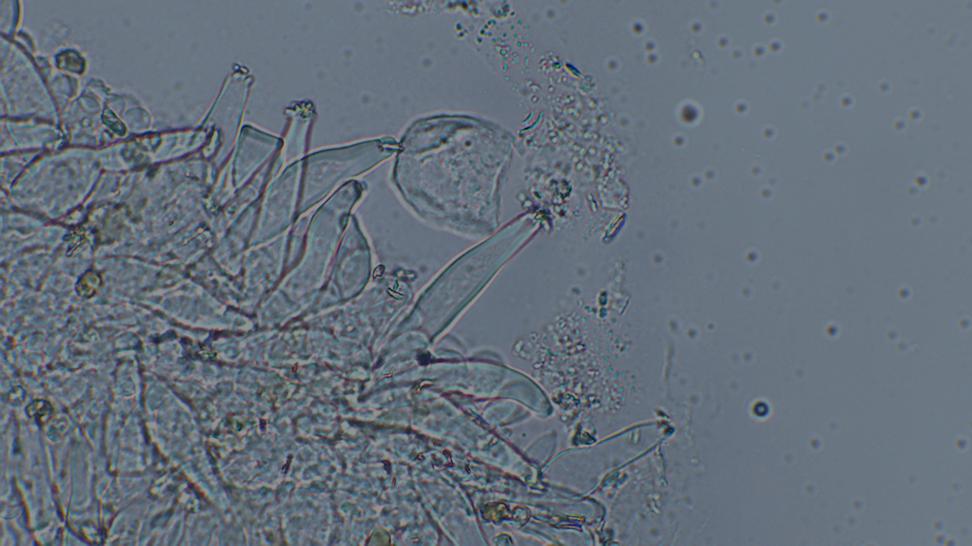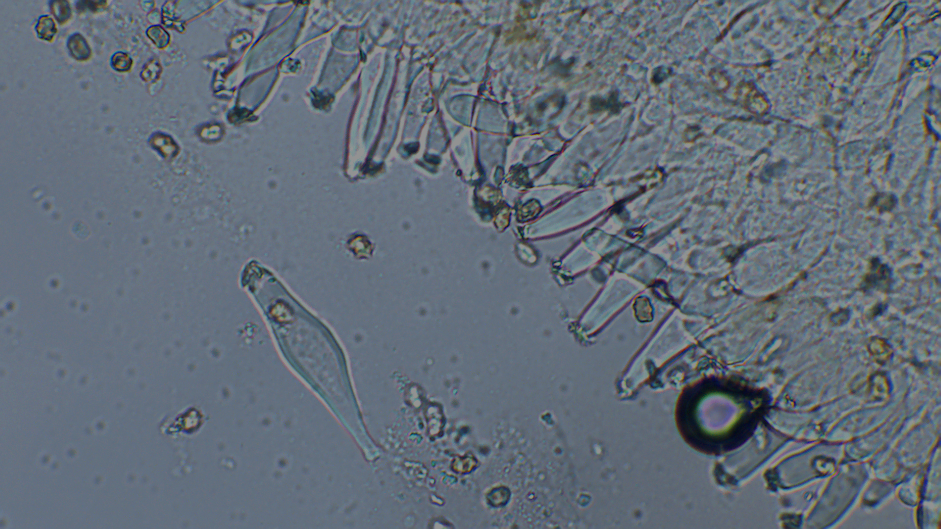 Der Stiel war ganz bereift, auch wenn im unteren Bereich nur noch vereinzelt Kaulozystiden zu finden waren.