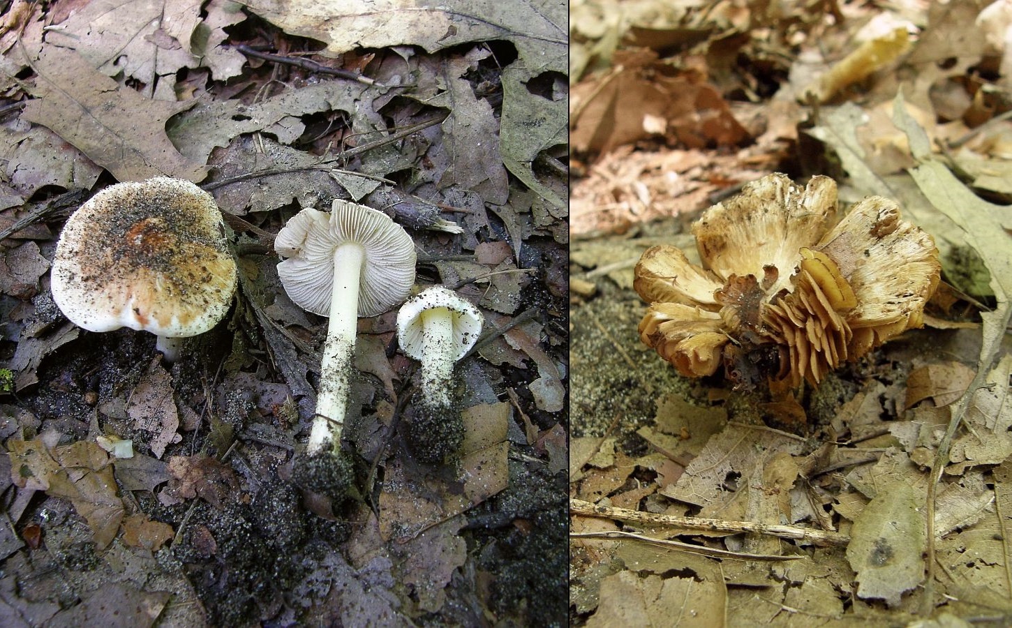 gestern fand ich die folgenden Risspilze unter Eichen am Rande eines Feldweges in recht lockerer Erde. Die Fruchtkörper wirkten recht stämmig und als erstes fiel mir die recht starke orange Färbung des Hutes auf.