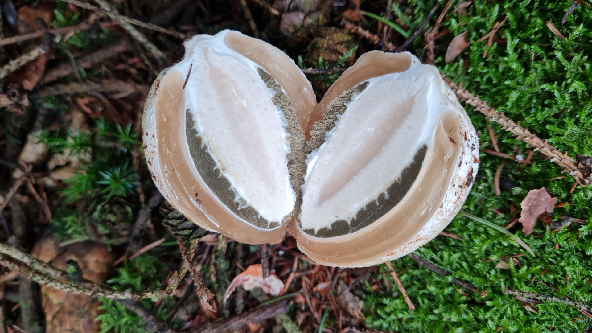 Der erste Pilz vor dem Waldeingang begrüßte uns: Ein Erdstern!: