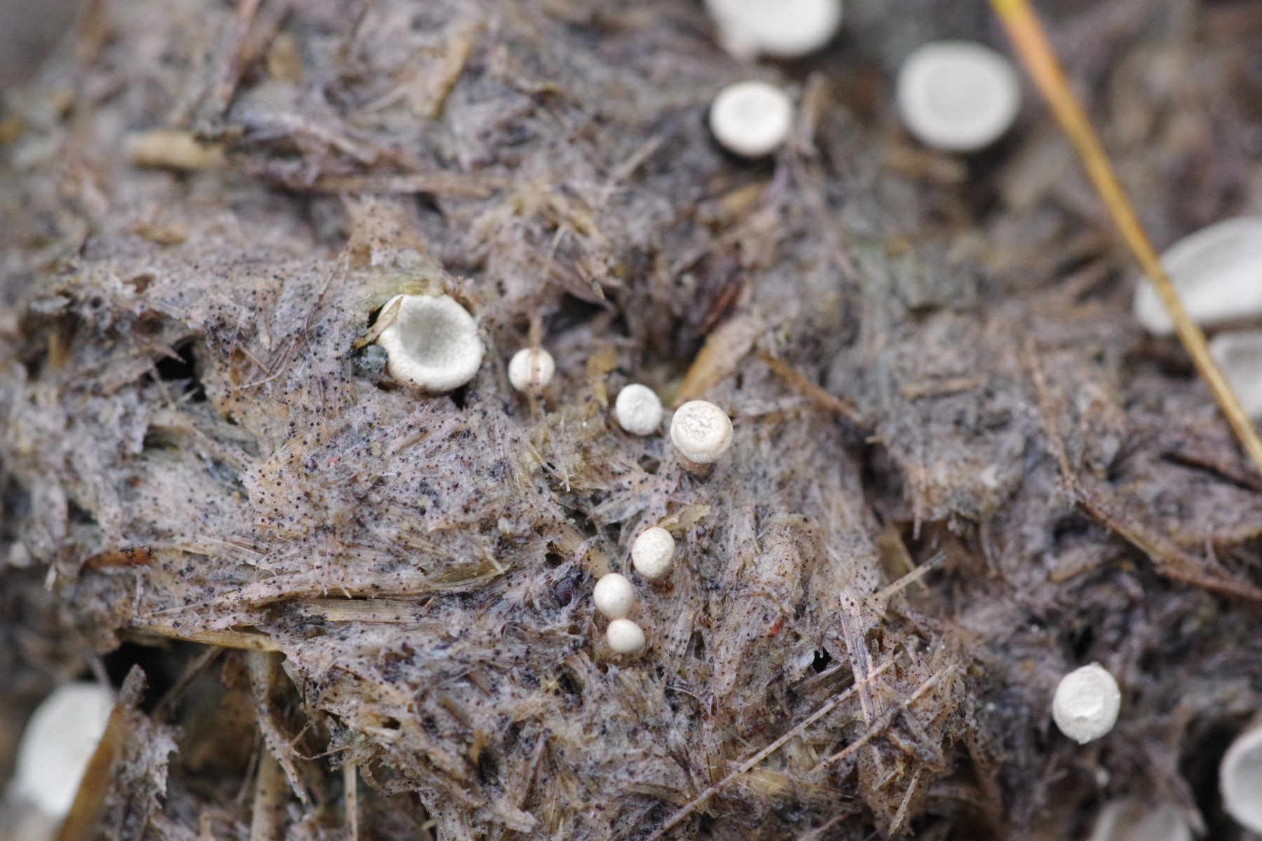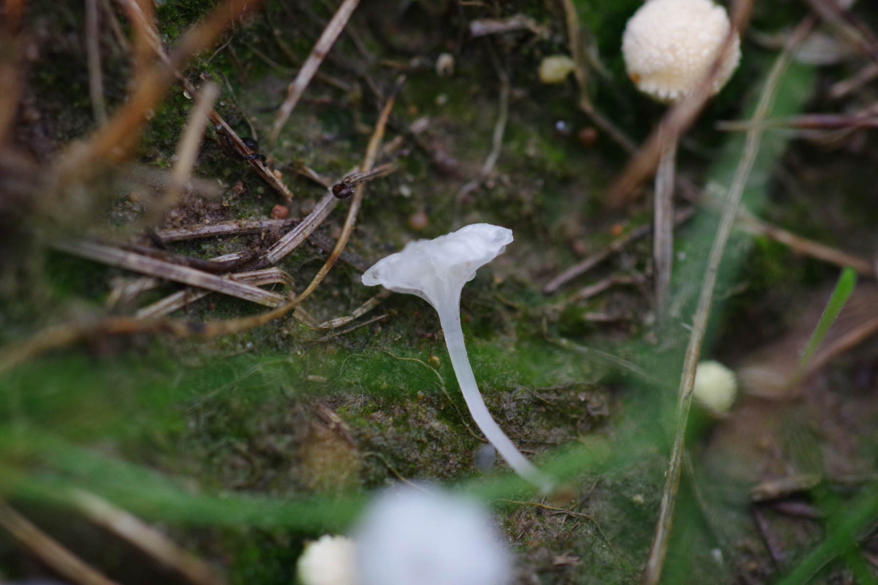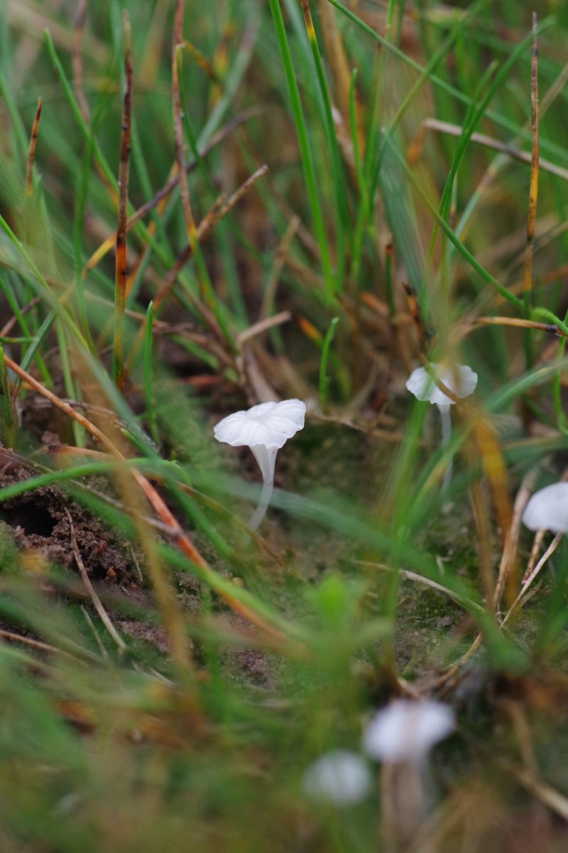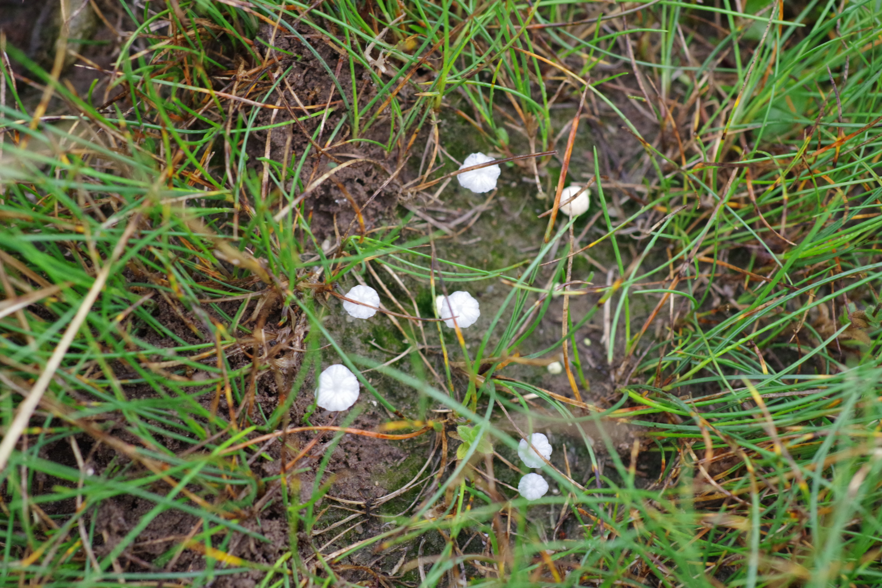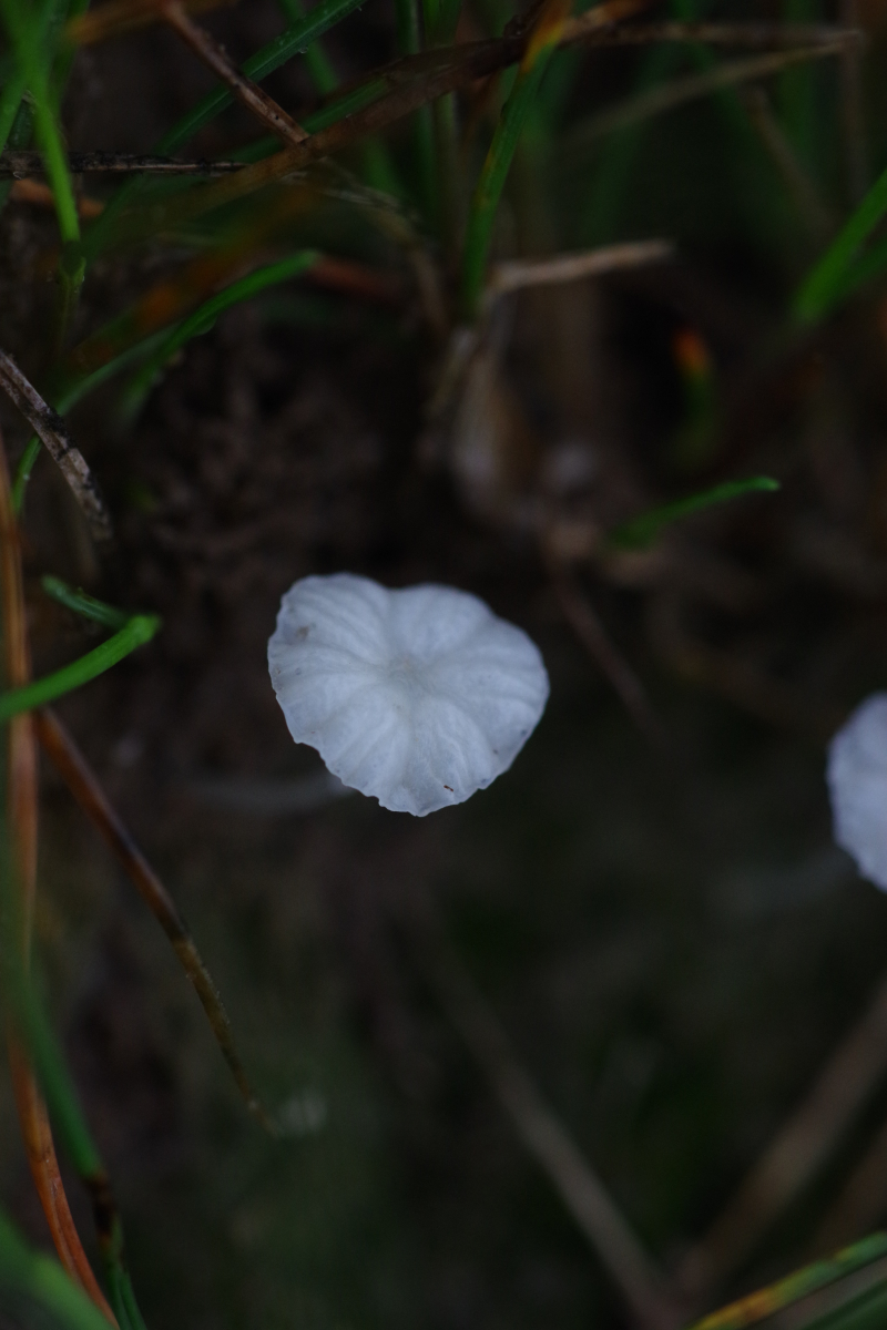 5)Standortwechsel, ein aus Sand aufgeschütteter Ameisenhaufen; bei dem komme ich zu Hemimycena mairei, was wohl ziemlich selten ist bei 159 Eintragungen in pilze-in-deutschland - die Verwchslungsarten scheinen alle andere Substrate zu benötigen